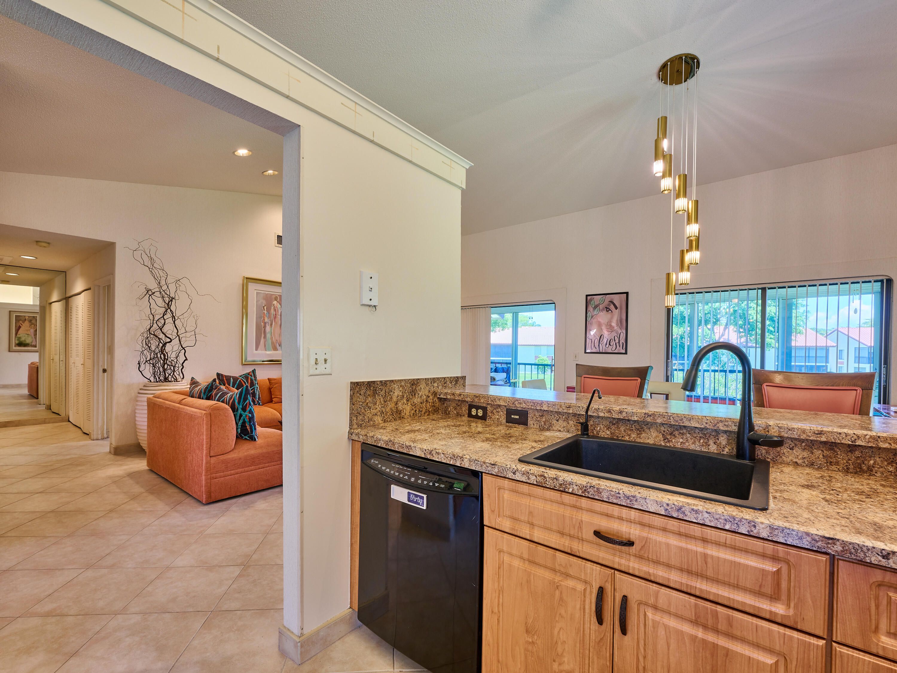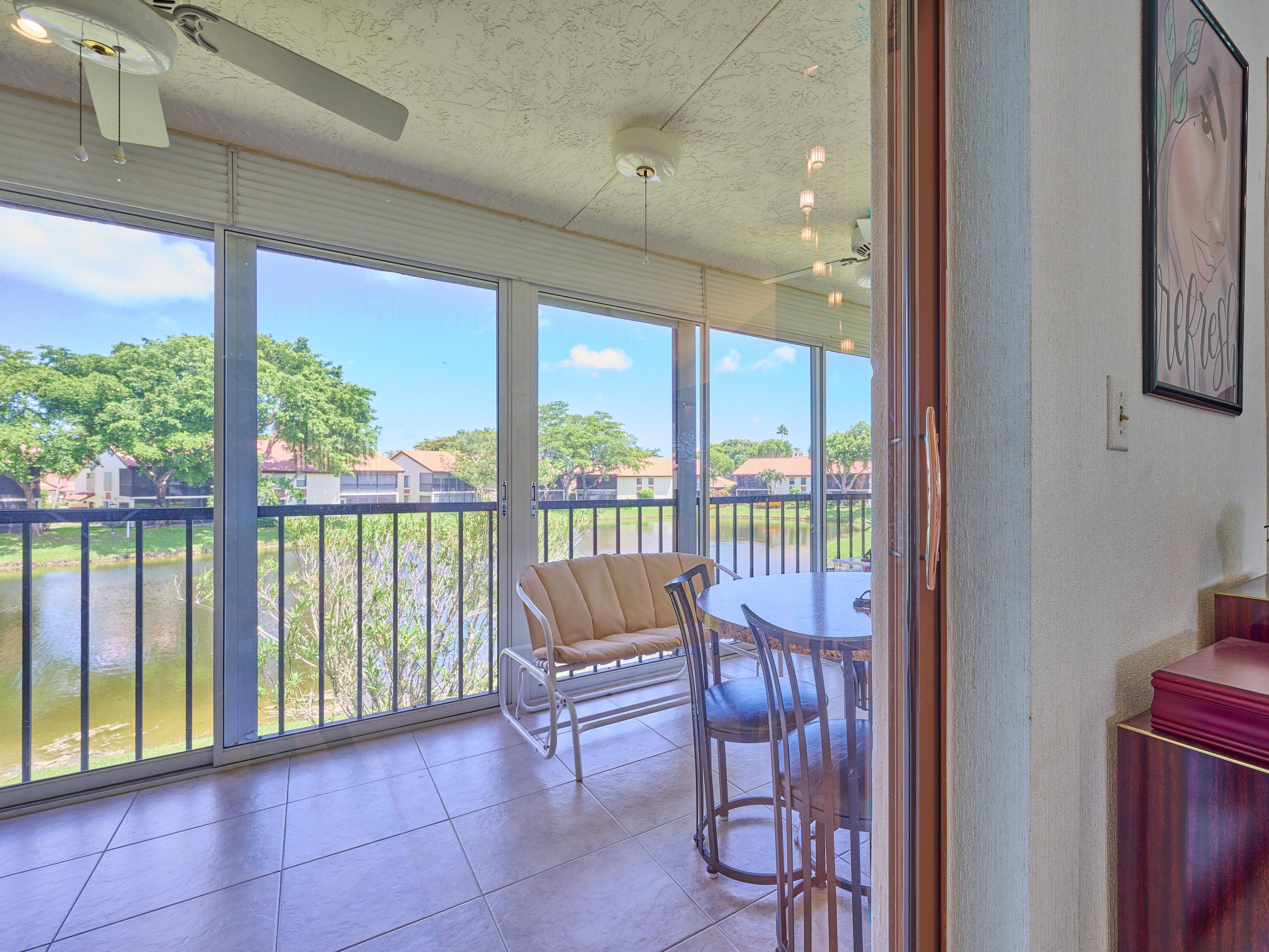 Welcome to your serene lakeside retreat in the vibrant 55+ community of Palm Chase! All windows have accordian shutters! This spacious 2-bedroom, 2-bath condo with a versatile den (easily convertible to a 3rd bedroom) offers the perfect blend of comfort and function. Situated on the second floor, you'll enjoy panoramic lake views from your expansive glass-enclosed and screened-in lanai--an ideal spot for morning coffee or evening relaxation. The open-concept living and dining area is filled with natural light and flows seamlessly into a well-equipped kitchen with granite-look countertops and ample cabinet space. The split-bedroom layout ensures privacy, while the den offers the flexibility to serve as an office, guest room, or hobby space.