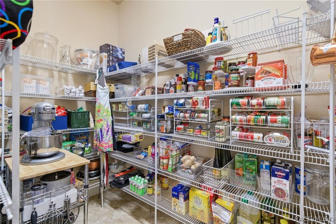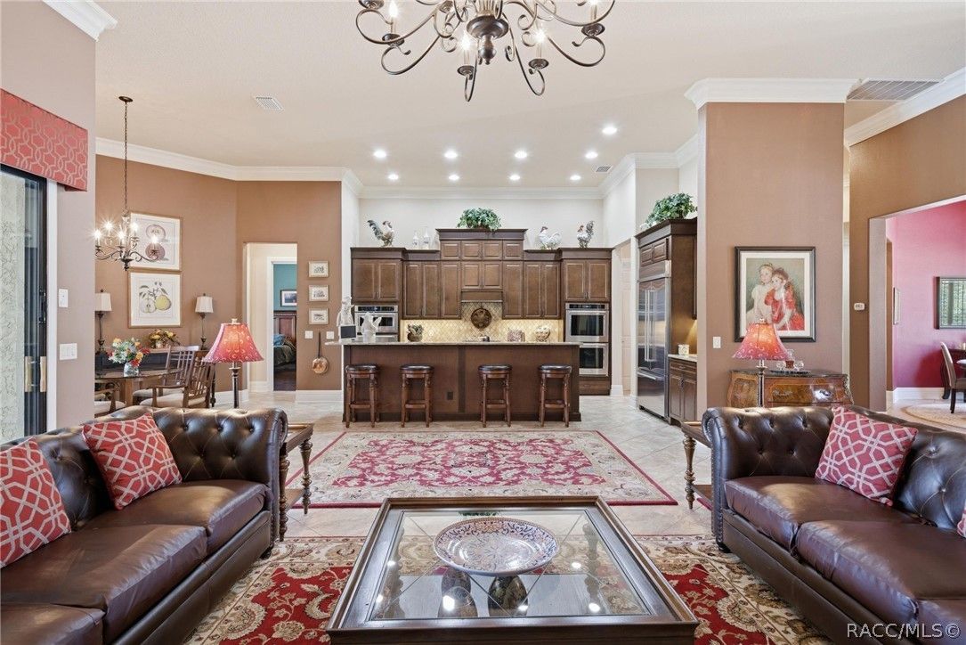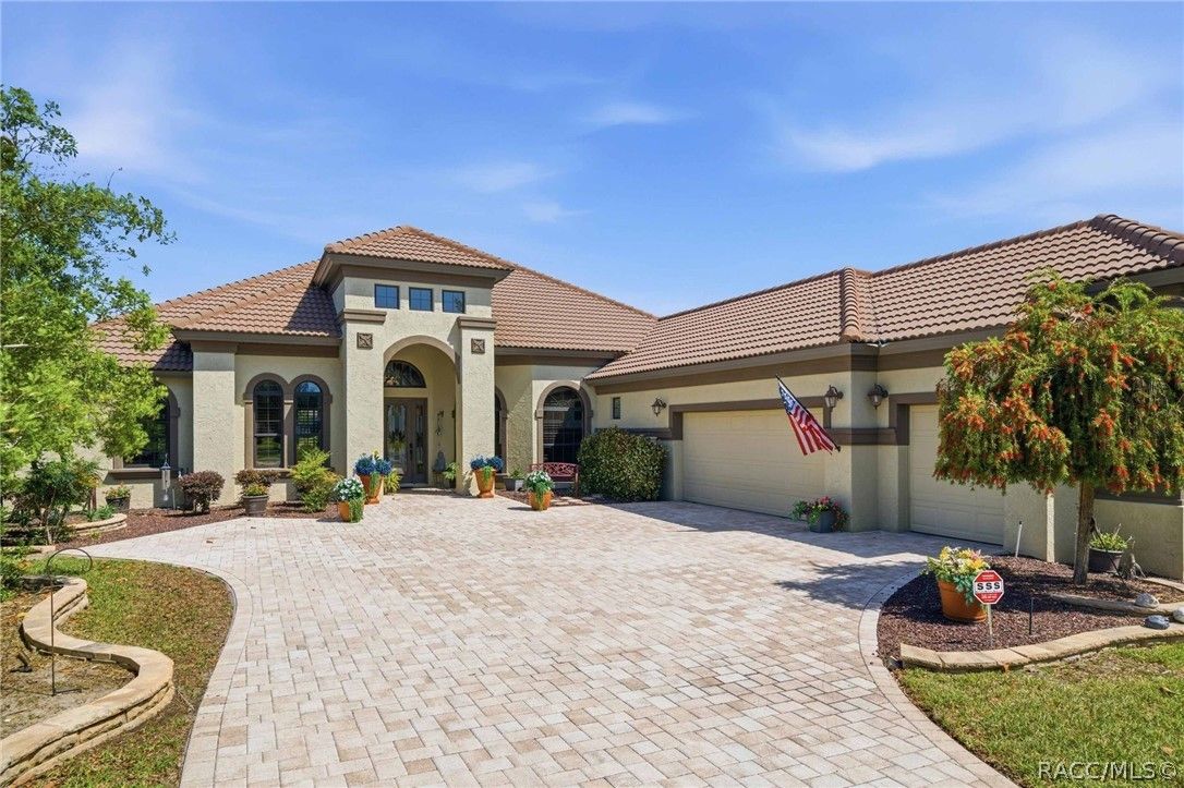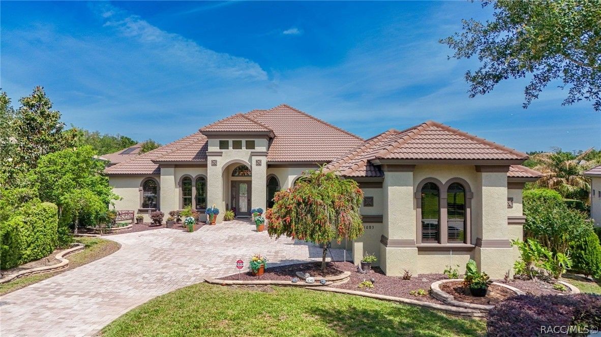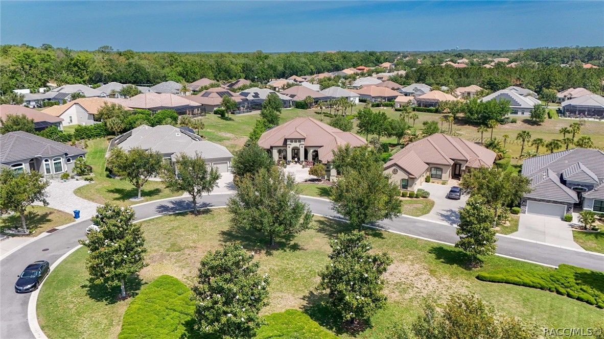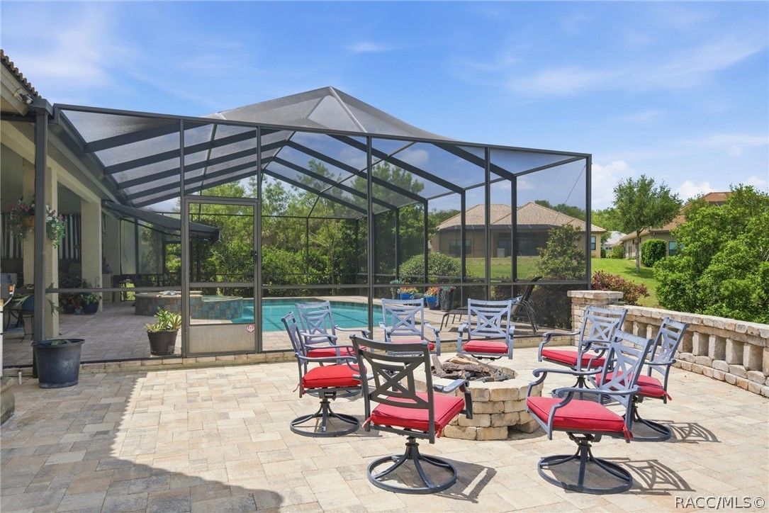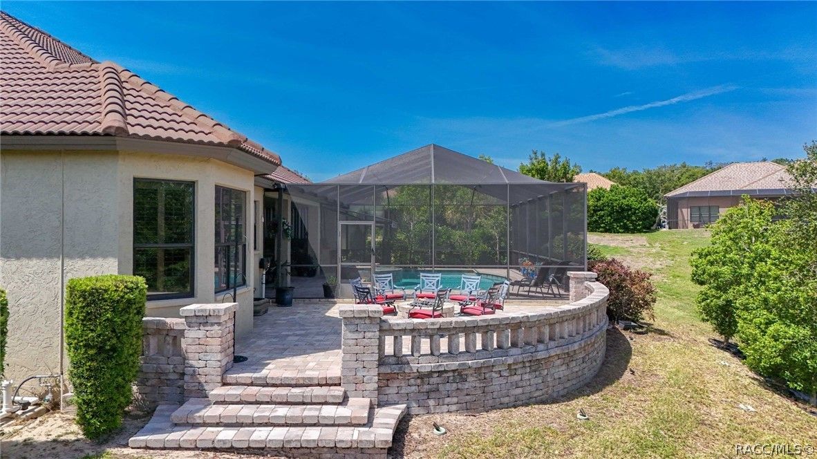 Imagine living in a masterfully crafted luxury home, where grand architectural details and resort-style living converge on an exceptional 0.36 acre lot. A wide paver driveway and lush tropical landscaping set the stage before you step through custom glass-and-leaded-transom entry doors into a welcoming foyer adorned with decorative columns, a tray ceiling, and a sparkling chandelier. This sophisticated entry features a wet bar- the perfect station for welcoming guests and serving beverages as they arrive, creating an effortless entertaining experience from the moment they enter. The expansive open floor plan seamlessly connects formal and casual living spaces into the chef's kitchen, which is nothing short of spectacular — featuring tall custom dark wood cabinetry, granite countertops, a gas cooktop with custom hood, KitchenAid double wall ovens, large stainless refrigerator, an island with seating for four, travertine diamond backsplash, and an enormous butler's pantry. The spacious great room with soaring ceilings opens to the entire living and kitchen area, making it the true heart of the home. This three-bedroom, four-and-a-half-bath home features two generous primary suites positioned on opposite sides of the residence; ideal for guests, multi-generational living, or personal preference. Each primary suite includes hardwood flooring, sitting areas, bay windows with plantation shutters, walk-in closets, and luxurious en-suite bathrooms with dual vanities and beautifully tiled walk-in showers. The third bedroom suite accommodates guests with grace. Additional highlights include a private home office with high ceilings, and an impressive craft room with full custom cabinetry, utility sink, built-in desk and dedicated laundry area; an amazing workspace for hobbies and projects. Crown molding, custom windows, recessed lighting, and tile floors throughout, complete the interior of this exceptional home. An oversized 3-car garage offers dedicated golf cart parking and tons of overhead storage. Outside, the resort-style backyard is an entertainer's paradise. A stunning screened-in lanai with sparkling pool and spa, also features an outdoor kitchen with built-in Coyote grill, granite counters and backsplash, perfect for al fresco dining. A curved stone balustrade terrace with a large gas fire pit overlooks serene, manicured green space. Located in Terra Vista at Citrus Hills, this home offers access to world-class resort-style amenities including championship golf courses, a state-of-the-art fitness center and spa, resort-style pools, tennis and pickleball courts, fine dining, and an active lifestyle in this highly sought after gated community. This exceptional property represents outstanding value; offering unparalleled quality at a price that truly reflects the remarkable opportunity before you.