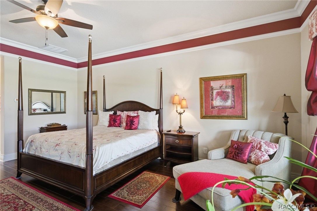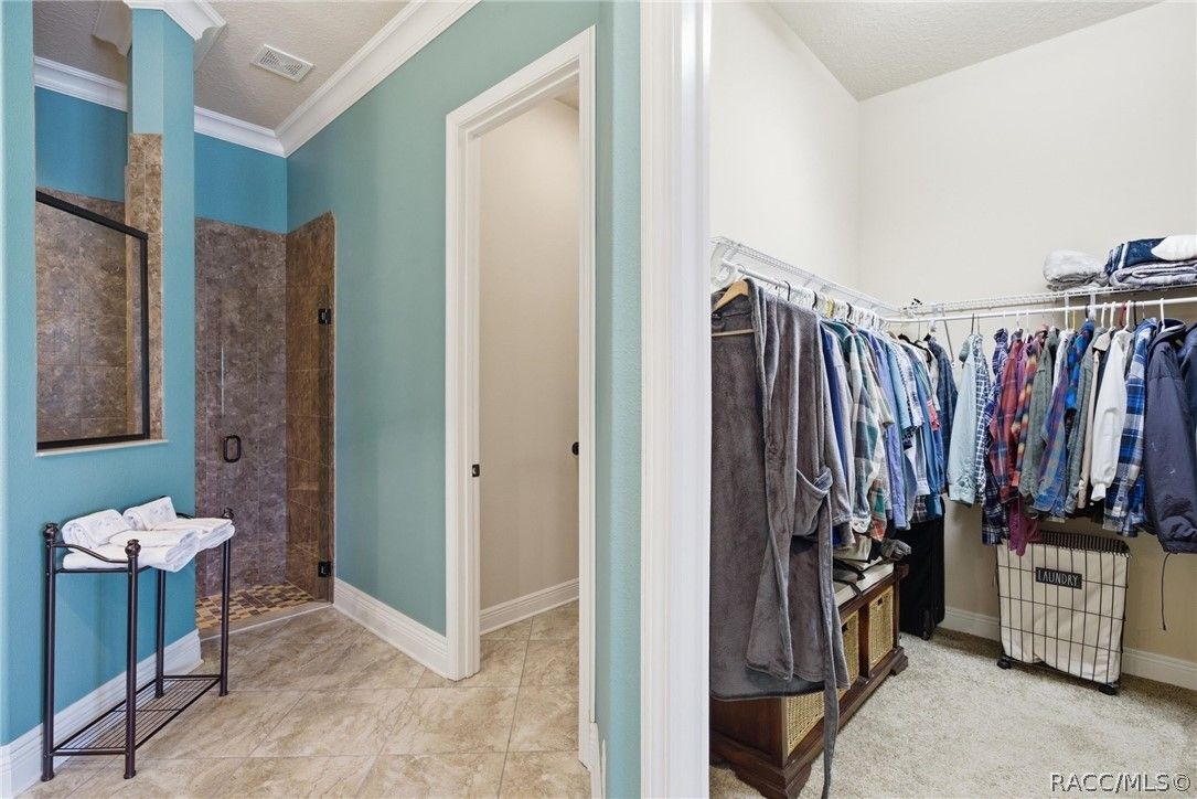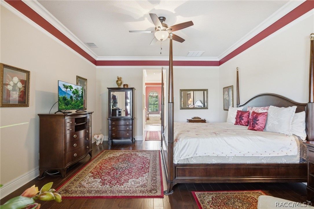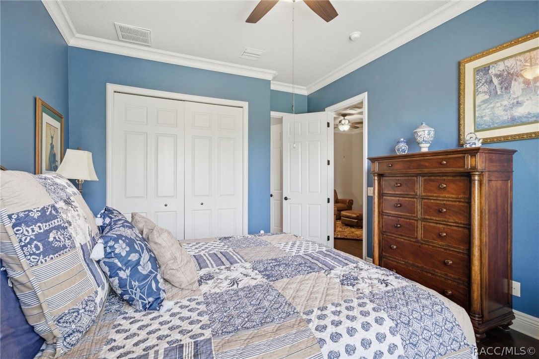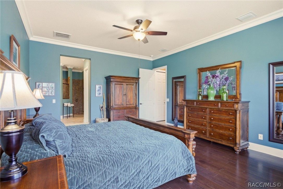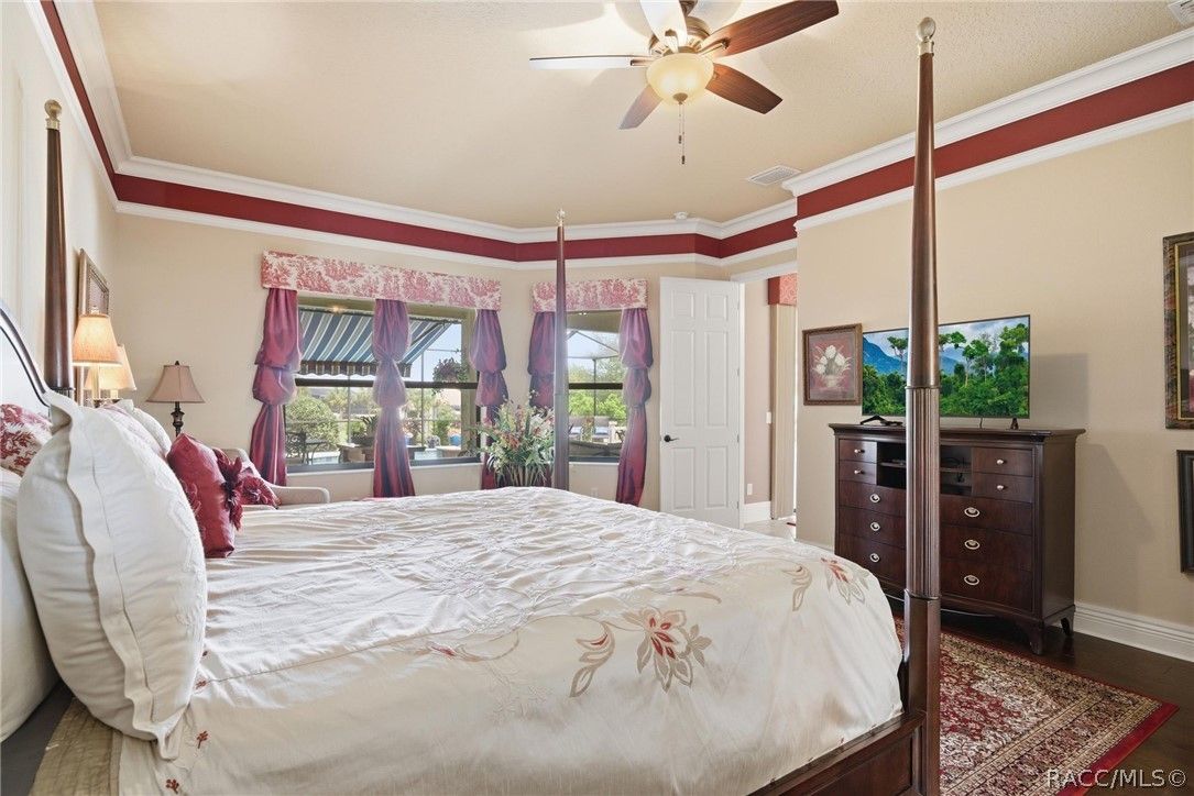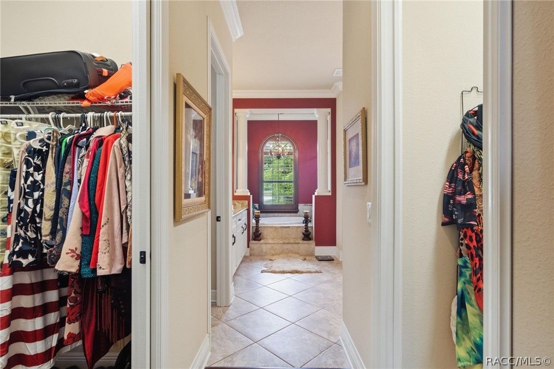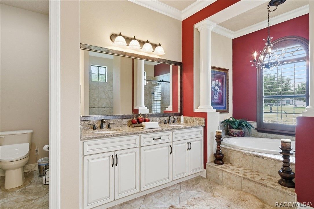 Imagine living in a masterfully crafted luxury home, where grand architectural details and resort-style living converge on an exceptional 0.36 acre lot. A wide paver driveway and lush tropical landscaping set the stage before you step through custom glass-and-leaded-transom entry doors into a welcoming foyer adorned with decorative columns, a tray ceiling, and a sparkling chandelier. This sophisticated entry features a wet bar- the perfect station for welcoming guests and serving beverages as they arrive, creating an effortless entertaining experience from the moment they enter. The expansive open floor plan seamlessly connects formal and casual living spaces into the chef's kitchen, which is nothing short of spectacular — featuring tall custom dark wood cabinetry, granite countertops, a gas cooktop with custom hood, KitchenAid double wall ovens, large stainless refrigerator, an island with seating for four, travertine diamond backsplash, and an enormous butler's pantry. The spacious great room with soaring ceilings opens to the entire living and kitchen area, making it the true heart of the home. This three-bedroom, four-and-a-half-bath home features two generous primary suites positioned on opposite sides of the residence; ideal for guests, multi-generational living, or personal preference. Each primary suite includes hardwood flooring, sitting areas, bay windows with plantation shutters, walk-in closets, and luxurious en-suite bathrooms with dual vanities and beautifully tiled walk-in showers. The third bedroom suite accommodates guests with grace. Additional highlights include a private home office with high ceilings, and an impressive craft room with full custom cabinetry, utility sink, built-in desk and dedicated laundry area; an amazing workspace for hobbies and projects. Crown molding, custom windows, recessed lighting, and tile floors throughout, complete the interior of this exceptional home. An oversized 3-car garage offers dedicated golf cart parking and tons of overhead storage. Outside, the resort-style backyard is an entertainer's paradise. A stunning screened-in lanai with sparkling pool and spa, also features an outdoor kitchen with built-in Coyote grill, granite counters and backsplash, perfect for al fresco dining. A curved stone balustrade terrace with a large gas fire pit overlooks serene, manicured green space. Located in Terra Vista at Citrus Hills, this home offers access to world-class resort-style amenities including championship golf courses, a state-of-the-art fitness center and spa, resort-style pools, tennis and pickleball courts, fine dining, and an active lifestyle in this highly sought after gated community. This exceptional property represents outstanding value; offering unparalleled quality at a price that truly reflects the remarkable opportunity before you.