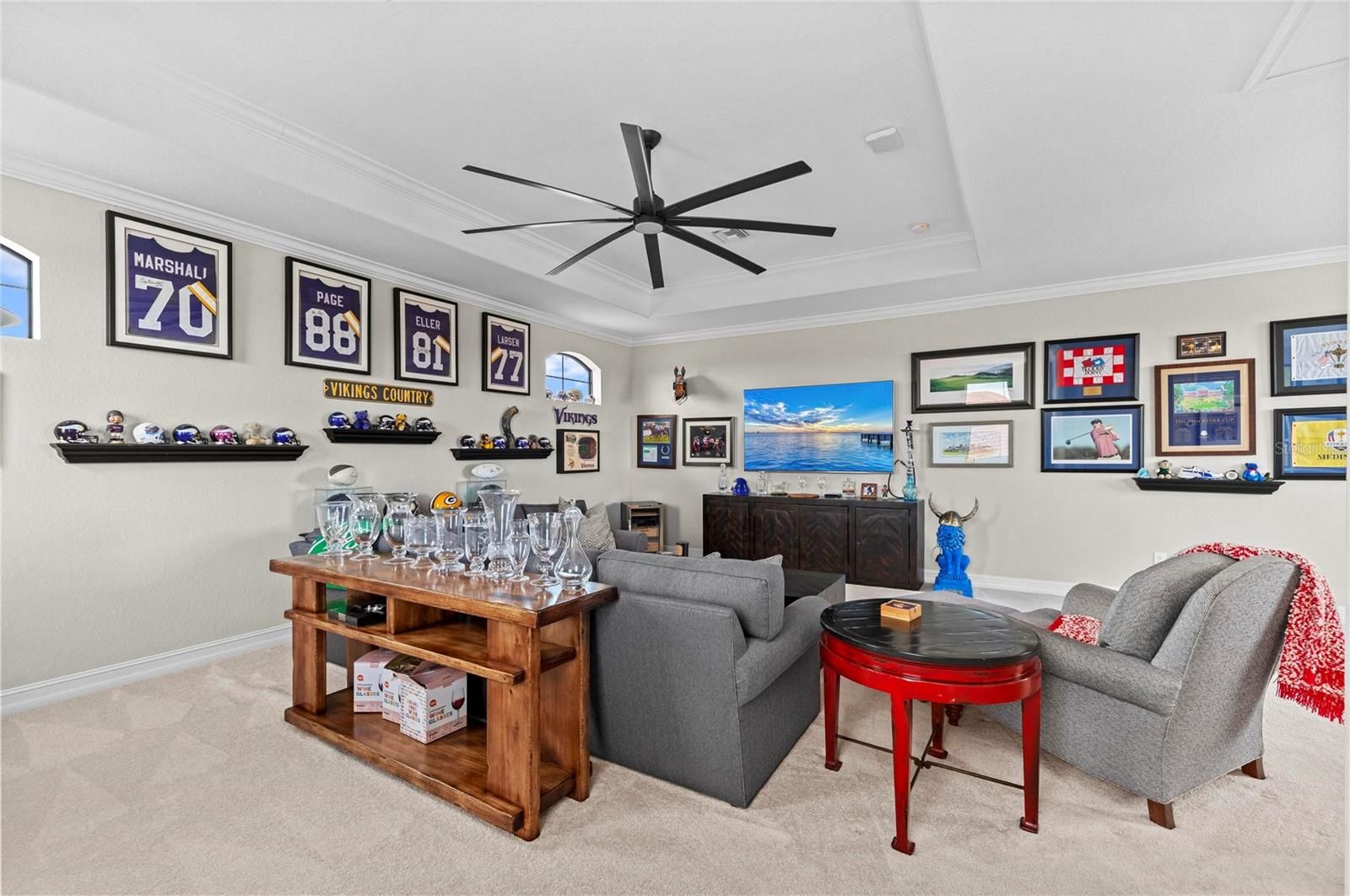 Welcome to one of the most desirable homes in Sarasota National’s estate section—where refined design, breathtaking golf course views, and effortless indoor-outdoor living come together in perfect harmony. Ideally positioned mid-street on a quiet cul-de-sac, this Napoli Grande residence with pool and spa captures sweeping long fairway views of the 2nd hole, paired with coveted southwestern exposure. The result is a home filled with warm, natural light by day and unforgettable sunset evenings that unfold over your private pool and spa—an ever-changing backdrop of color and calm. Inside, every detail has been thoughtfully elevated. Custom trim work and coffered ceilings bring architectural richness and warmth to the main living spaces, while the open-concept design creates a natural flow that feels both inviting and expansive. The kitchen and great room transition seamlessly to the lanai, blurring the lines between indoors and out—perfect for entertaining or simply enjoying the rhythm of everyday living. Designed to truly embrace Florida’s indoor-outdoor lifestyle, disappearing sliding glass doors—along with additional access from the breakfast nook and primary suite—open to a spectacular screened lanai. Here, a sparkling pool and spa are surrounded by a serene tropical setting, all enhanced by those sought-after southwestern sunset views that elevate every moment. The outdoor space has been beautifully reimagined with a light, modern stone pool deck, offering a clean, sophisticated aesthetic that complements the natural surroundings. A covered lanai with wood ceiling detail creates the ideal setting for morning coffee, relaxed afternoons, or evenings spent gathering with friends as the sun dips below the fairway. Upstairs, a spacious bonus suite with a full bath, bar area, sink, and wine refrigerator offers incredible flexibility—whether as a private guest retreat, media room, or an elevated entertaining space. Additional features include hurricane-rated windows and doors, Storm Smart protection for the lanai, and a 3-car garage—blending peace of mind with everyday convenience. This home also includes a coveted golf membership, offering immediate access to Sarasota National’s championship course—an exceptional value and lifestyle advantage. As a resident, you’ll enjoy resort-style amenities including golf, dining, fitness, and a vibrant, connected social atmosphere. The golf course is currently undergoing a renovation to bring you a new and improved golfing experience. Perfectly located near multiple golf courses and just minutes from Wellen Park, with easy access to Englewood Beach, Venice Beach, Siesta Key, and the natural beauty of Myakka River State Park. This is more than a home—it’s a lifestyle defined by comfort, elegance, optional activities and connection. Come see, come sigh… and make this extraordinary residence your own.