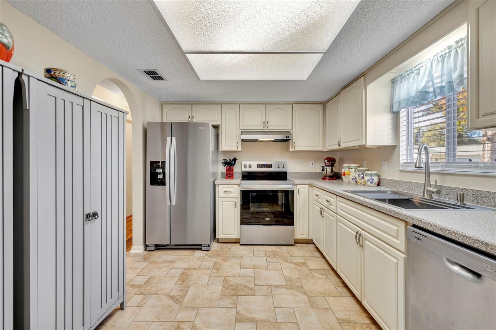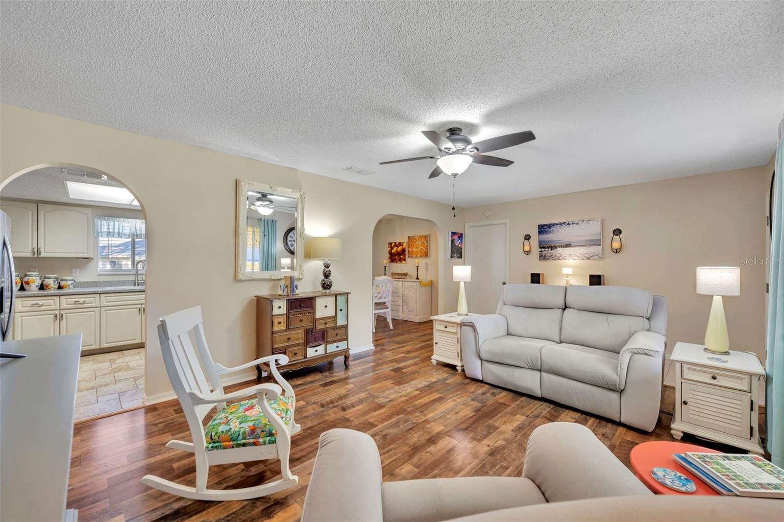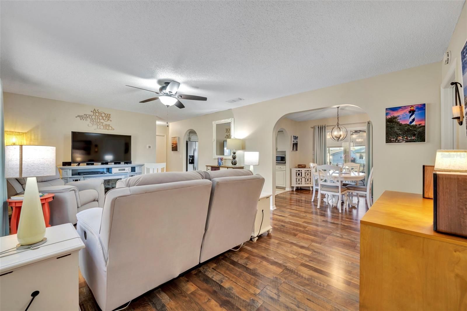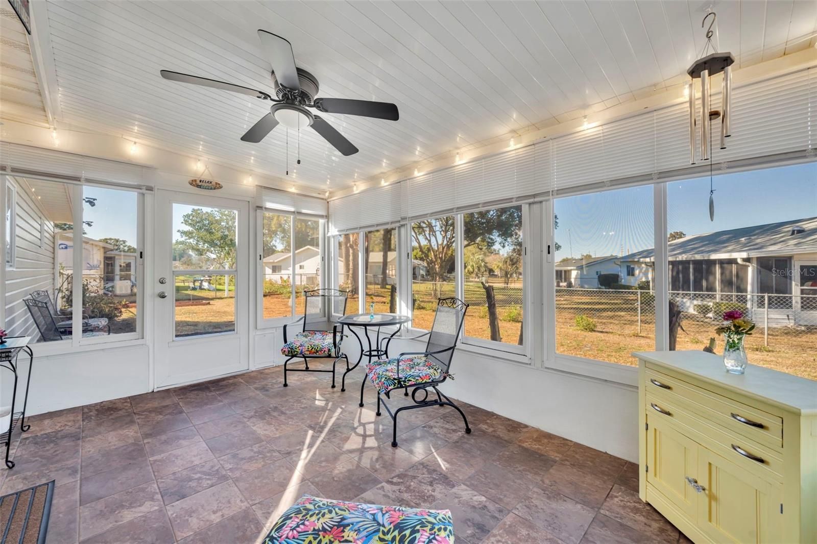 Welcome to this beautifully upgraded Chestnut model located in the gated 55+ community of Spruce Creek South. This well-maintained home offers peace of mind and modern updates, including a 2022 ROOF, 2021 HVAC, and 2025 stainless steel APPLIANCES including a range hood and updated sink. Inside, you’ll find a freshly painted interior, updated kitchen countertops, and laminate flooring throughout the main living areas, creating a clean and inviting space. The primary bathroom features an expanded walk-in shower, while the inside laundry room includes a Kenmore washer and dryer, adding everyday convenience. You also have a 2 car garage with an abundance of storage cabinets!! Enjoy Florida living year-round in the tiled lanai with acrylic windows and screens (approximately 10x15), perfect for relaxing or entertaining. The fenced backyard offers a private retreat for pets and features seating within a charming butterfly garden, complemented by gorgeous upgraded landscaping and a 10 x 10 patio!! Located just a 5-minute golf cart ride to the community center and golf course, this home is also minutes from Spanish Springs and The Villages, offering endless dining, shopping, and entertainment options. Additional highlights include a gated, secured front entrance and some furntiure being negotiable. This move-in-ready home combines comfort, upgrades, and an unbeatable location—schedule your private showing today.