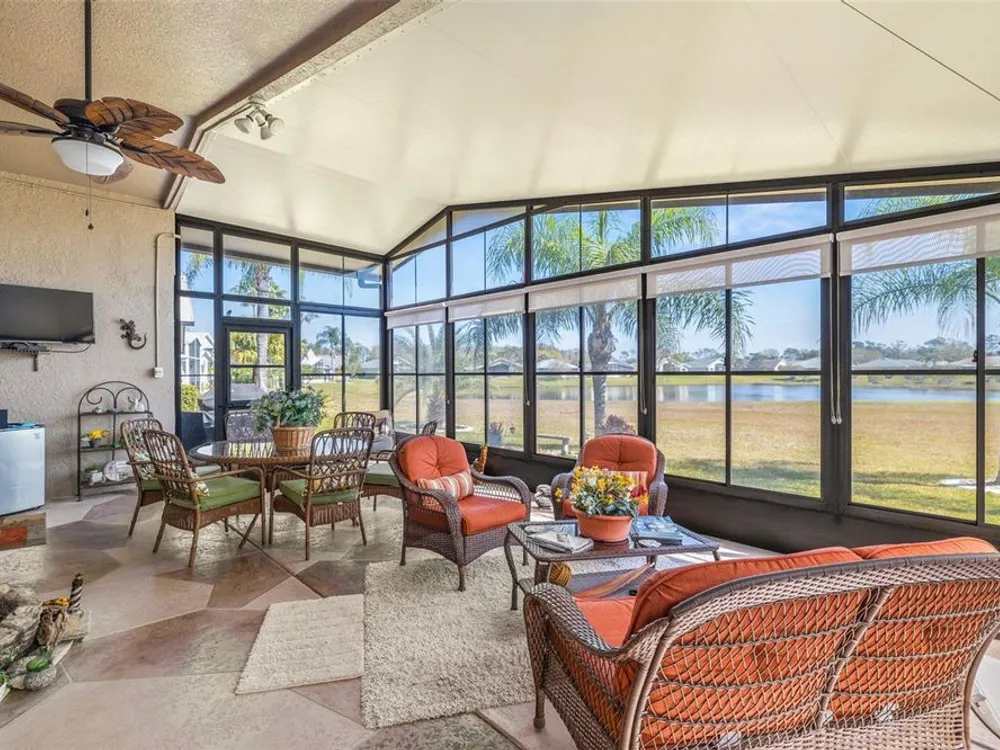 A LOVELY FULLY FURNISHED, 1600 SQFT, 2 BEDROOMS, 2 BATHROOMS, PLUS A DEN/OFFICE, SPLIT FLOOR PLAN LOCATED ON A TRANQUIL POND & CONSERVATION PARK-LIKE SETTING! VERY ATTRACTIVE CURB APPEAL, 2 CAR GARAGE, GUTTERS, SPRINKLER SYSTEM, EPOXY COATED DRIVE & WALK-WAY, ROCK PLANTERS, TREES, AND MATURE LANDSCAPE! THE HOME ITSELF IS FULL OF NATURAL LIGHT, VAULTED CEILINGS, FANS, TILE & LAMINATE FLOORING (NO CARPET), A COMBINATION FORMAL DINING & LIVING ROOM WITH SLIDING DOORS LEADING OUT TO THE HUGE FLORIDA ROOM, AND BACKYARD PARADISE! THERE'S ALSO A GREAT OUTDOOR SPACE TO BBQ, HAVE A BONFIRE, OR JUST RELAX FOR THE EVENING LOOKING AT NATURE'S STUNNING VIEW! THE KITCHEN OFFERS LIGHT CABINETS & APPLIANCES, CORIAN COUNTERS, BEAUTIFUL TILE BACKSPLASH, AND A BREAKFAST NOOK! THE SPACIOUS MAIN BEDROOM OFFERS A WALK-IN CLOSET, DUAL SINKS, A PRIVATE RESTROOM, & A TILED SHOWER! YOU HAVE AN INSIDE LAUNDRY ROOM, WASHER & DRYER INCLUDED, AND STORAGE CABINETS! THE ROOF AND WATER HEATER WERE REPLACED IN 2020. TAMPA BAY GOLF AND COUNTRY CLUB IS A 55+ RESORT-STYLE GATED COMMUNITY. THE HOA INCLUDES LAWN CARE, CABLE/INTERNET, CLUBHOUSE AMENITIES, POOLS, FITNESS CENTER, PICKLEBALL, TENNIS, CLUBS, RESTAURANT/BAR & GRILL WITH OUTSIDE PATIO, 2 GOLF COURSES, & MORE! SCHEDULE YOUR SHOWING TODAY!