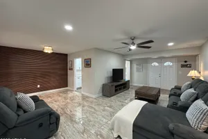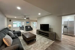 Beautifully updated home in the 55+ community of Sun City! Centrally located off Thunderbird, near Lakeview Rec Center and the dog park. Enjoy low-maintenance living with a lush backyard featuring recently overseeded grass, curbing, irrigation, block wall, and double gate. Inside, find shutters throughout, custom laundry cabinetry, a hard-wired A/V speaker system, upgraded electrical panel, outlets, motion lighting, and a garage door opener. Includes ADT security system with cameras and smart home devices. Sewer line clear; home warranty transferable. Move-in ready with modern comfort and peace of mind!