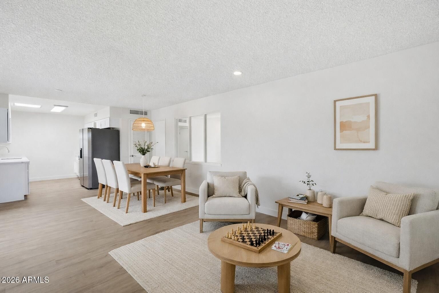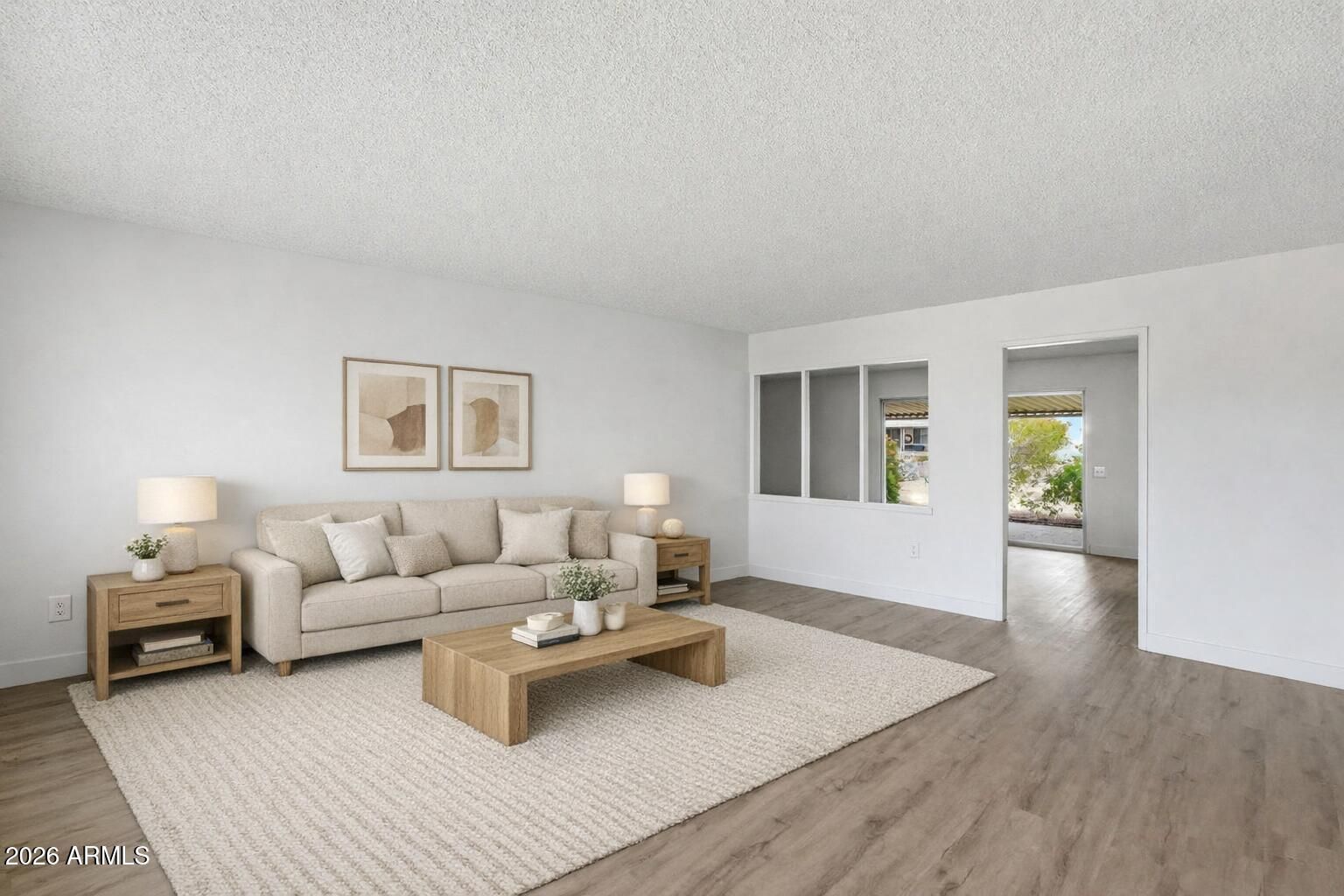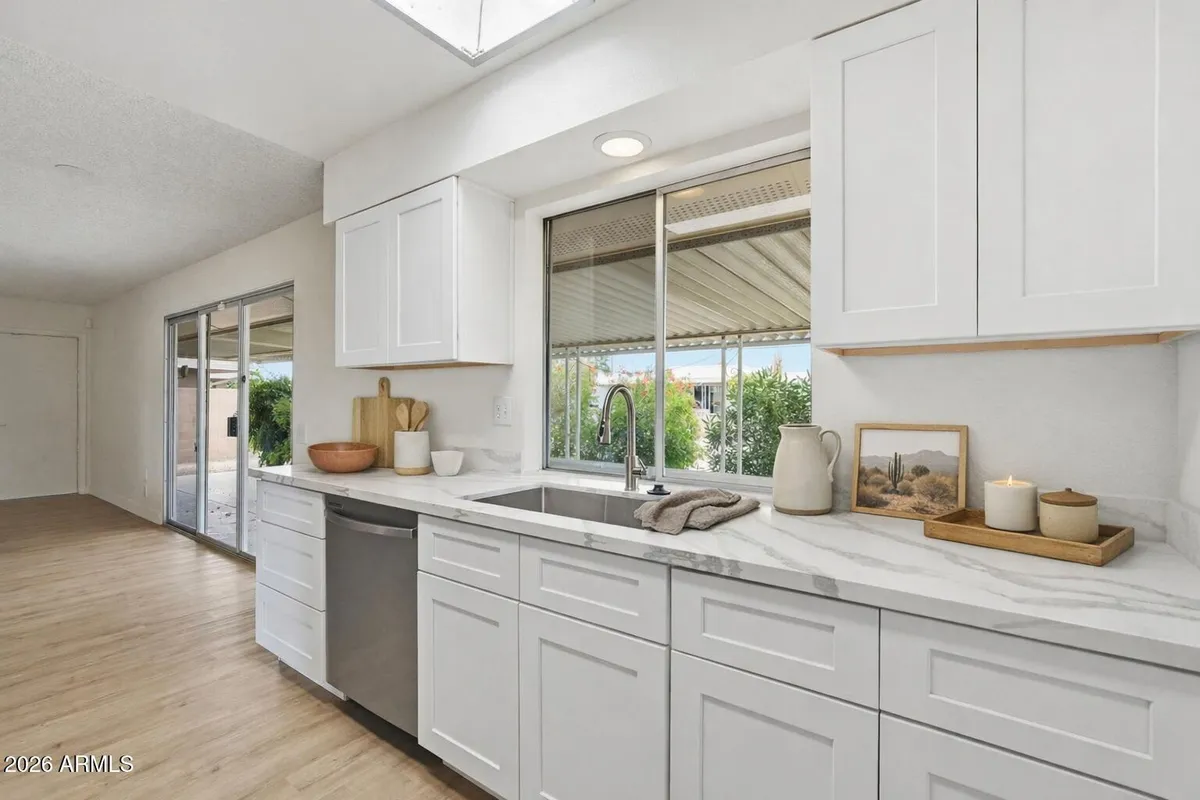 Beautifully updated home in the desirable adult community of Sun City, where the HOA is *voluntary* Enjoy peace of mind with a NEW HVAC, SOFT WATER SYSTEM, NEWER ROOF. Inside, stunning new vinyl flooring flows throughout. The kitchen shines with new white shaker cabinets, sleek quartz countertops, and new stainless steel appliances. This home offers spacious bedrooms and tastefully updated bathrooms. The backyard offers low maintenance living and a large covered patio that's perfect for early morning coffee and gatherings with friends & family. Even MORE UPGRADES await; see the Features List. Conveniently located near golf courses, rec center, shopping, and restaurants!