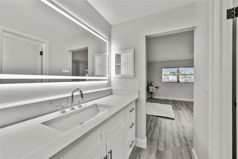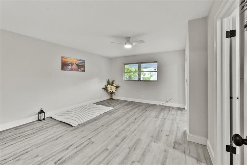 Stunning “TURN KEY" villa at the desirable active 55+ Lauderdale West community. Located on a quiet lane, with waterfront just off the back patio and a mango tree adorning the bordering yard. This is an ideal second home! Meticulously & detailed upgraded with modern touches, enjoy smooth ceilings, fresh paint, Luxury Vinyl flooring throughout, new 5” wood baseboards, new kitchen & bathroom custom, white wood, shaker cabinets, white quartz countertops & backsplash, recessed dimmable lighting throughout, LG premium suite stainless steel appliances, nice size storage pantry and much more high end build custom accessories to exceed expectations! Close to shopping, restaurants and freeways, you can enjoy two clubhouses, billiard room, tennis/pickleball, a fitness center, 2 pools & a shuttle bus