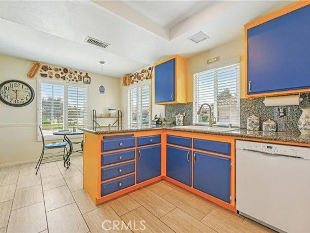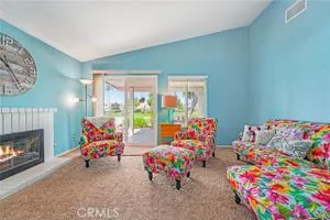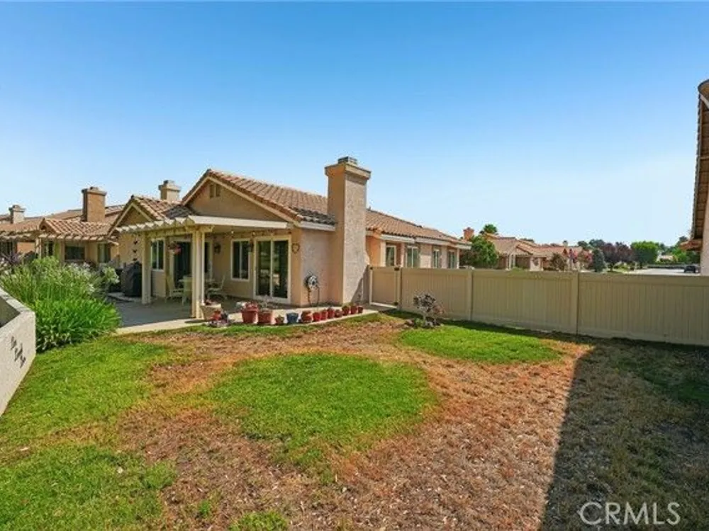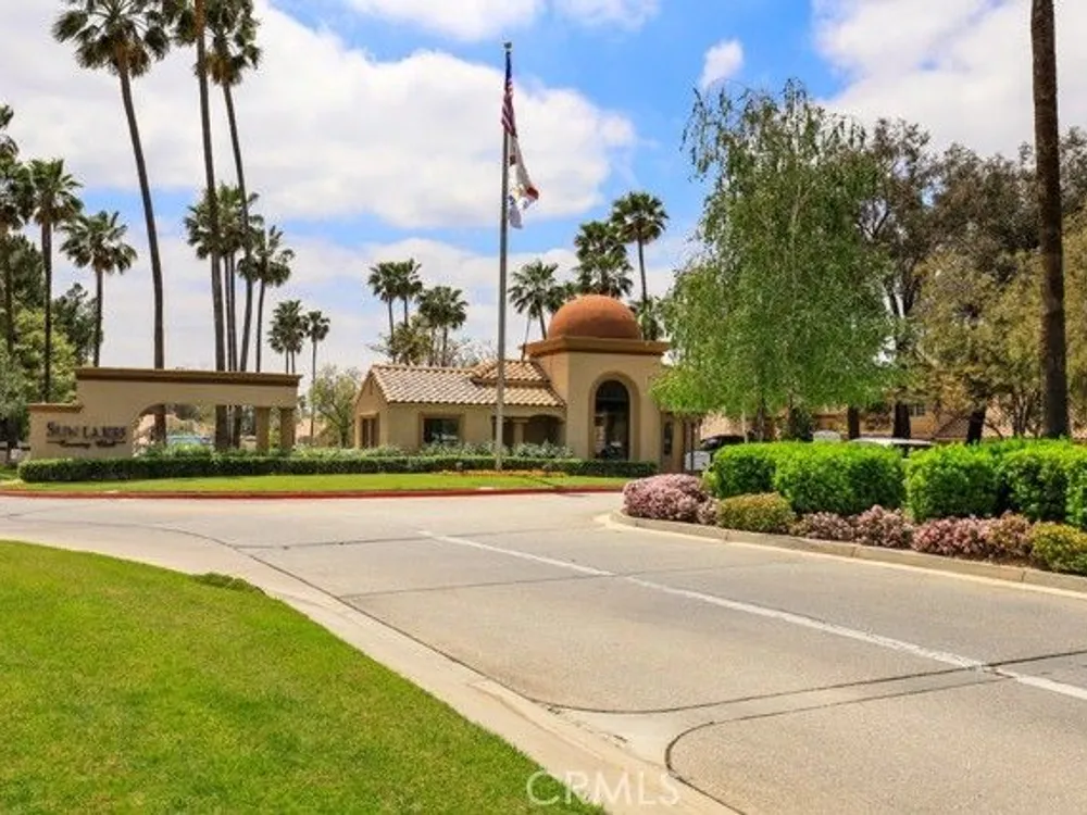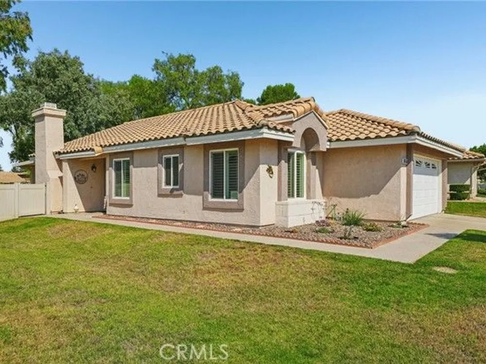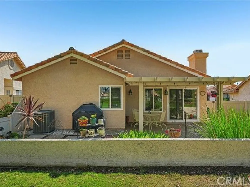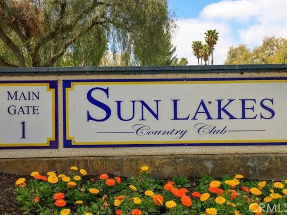Immaculately maintained 2 bd/2 ba, 1096 SF home located on the 15th Hole in the desirable gated Sun Lakes Country Club 55+ Senior Community in Banning! This turn-key home overlooks the golf course, has great curb appeal with custom vaulted ceilings, and many upgrades including plantation shutters, deco paint throughout, and newer windows and doors. There's an epoxy sidewalk for the entryway and to the backyard and patio. The living room has lots of natural light, a fireplace, a slider to the backyard, and flows into the formal dining area. The kitchen features oak cabinetry, granite countertops with matching backsplash, breakfast bar seating, white appliances, and opens to a breakfast nook. Bedroom 1 has high ceilings, a ceiling fan, mirrored closet, and accesses a private ensuite with tile flooring, a granite countertop, and custom fixtures. The primary suite also has a ceiling fan, mirrored closet, a remodeled private ensuite, and a slider to the backyard. This home also has an attached 2-car garage with access from the kitchen, newer HVAC (7 yrs old), and a newer water heater (9 yrs old). Enjoy the relaxing backyard which features an Alumawood patio cover, lush green grass, and beautiful views of the golf course. Residents get to enjoy resort-like amenities including multiple swimming pools (one indoor), spa,3 gyms, 3 clubhouses, and golfing!
