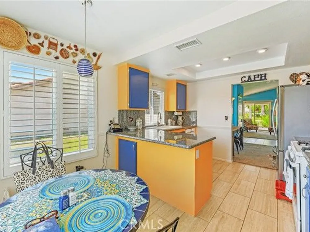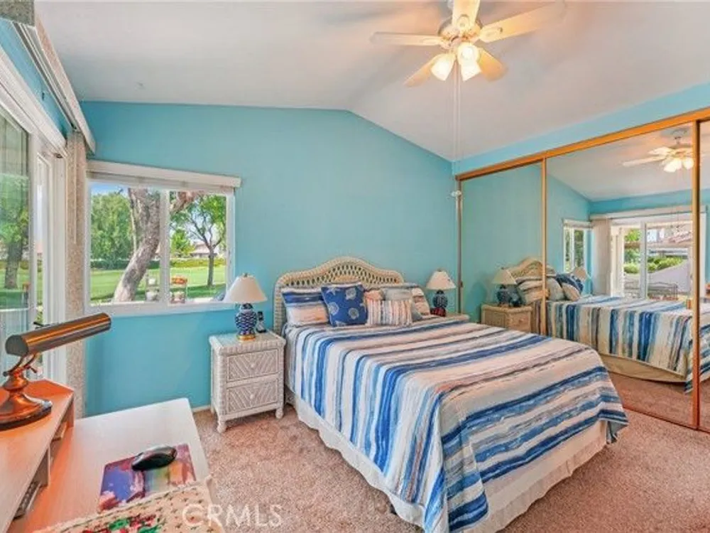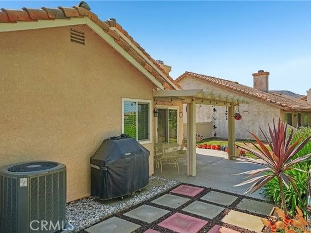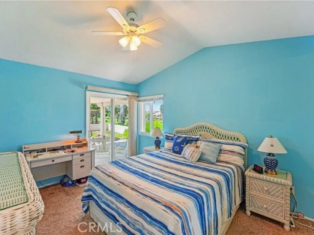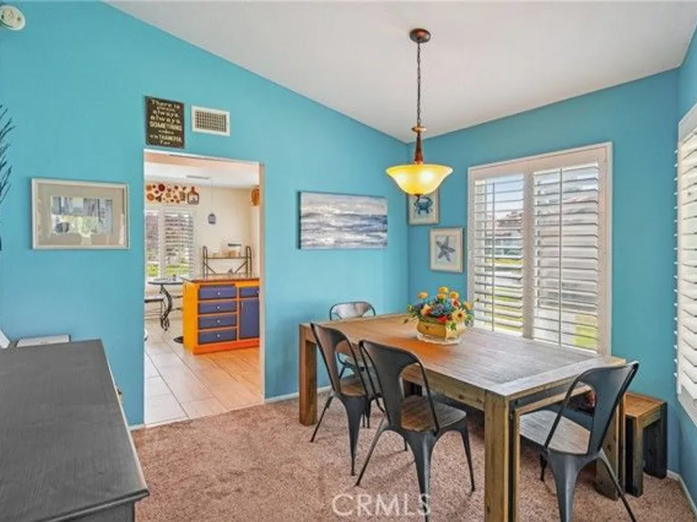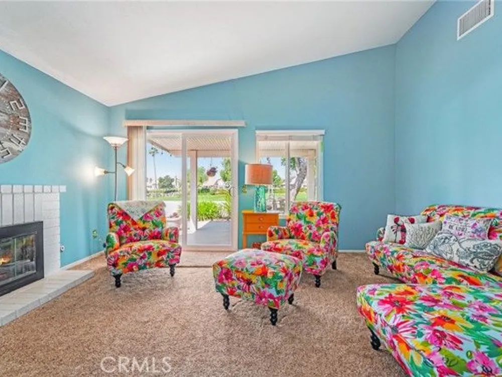 Immaculately maintained 2 bd/2 ba, 1096 SF home located on the 15th Hole in the desirable gated Sun Lakes Country Club 55+ Senior Community in Banning! This turn-key home overlooks the golf course, has great curb appeal with custom vaulted ceilings, and many upgrades including plantation shutters, deco paint throughout, and newer windows and doors. There's an epoxy sidewalk for the entryway and to the backyard and patio. The living room has lots of natural light, a fireplace, a slider to the backyard, and flows into the formal dining area. The kitchen features oak cabinetry, granite countertops with matching backsplash, breakfast bar seating, white appliances, and opens to a breakfast nook. Bedroom 1 has high ceilings, a ceiling fan, mirrored closet, and accesses a private ensuite with tile flooring, a granite countertop, and custom fixtures. The primary suite also has a ceiling fan, mirrored closet, a remodeled private ensuite, and a slider to the backyard. This home also has an attached 2-car garage with access from the kitchen, newer HVAC (7 yrs old), and a newer water heater (9 yrs old). Enjoy the relaxing backyard which features an Alumawood patio cover, lush green grass, and beautiful views of the golf course. Residents get to enjoy resort-like amenities including multiple swimming pools (one indoor), spa,3 gyms, 3 clubhouses, and golfing!