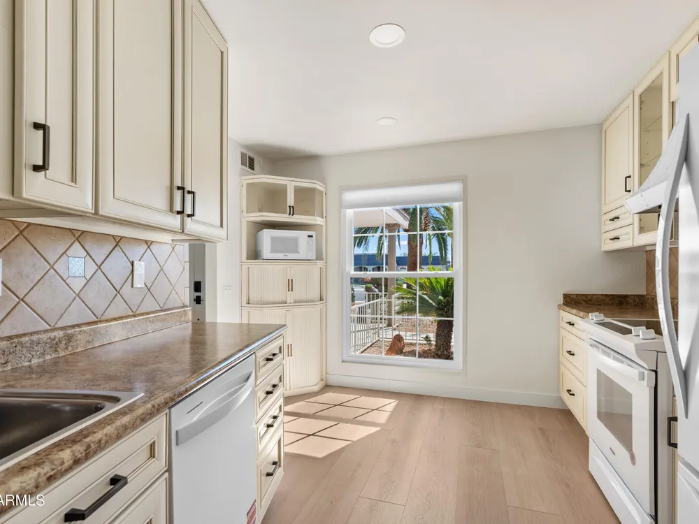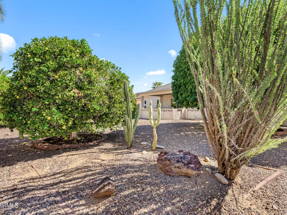 COMPLETELY RENOVATED - MOVE-IN READY GEM! Step into modern comfort and timeless style with this fully renovated 2-bedroom, 2-bathroom home in the highly desirable Sun City active-adult community. Every inch of this home has been transformed — with all-new flooring, paint, lighting, doors, baseboards, appliances, and beautifully updated bathrooms — blending quality craftsmanship with contemporary design. Enjoy a functional floor plan featuring a formal dining room, spacious living room, and a bright kitchen with a breakfast sitting area, plus a flex room that can serve perfectly as a guest bedroom, home office, or hobby space. Step outside to your private backyard retreat with mature citrus trees, offering shade, serenity, and a touch of Arizona living at its best. Located less than a mile from Willowcreek Golf Course, this stunning home showcases luxury updates paired with the unmatched amenities of Sun City living. Enjoy world-class golf courses, recreation centers, and a vibrant 55+ community with endless activities and social opportunities. Don't miss your chance to experience luxury, comfort, and convenience in one of Arizona's most sought-after retirement destinations!