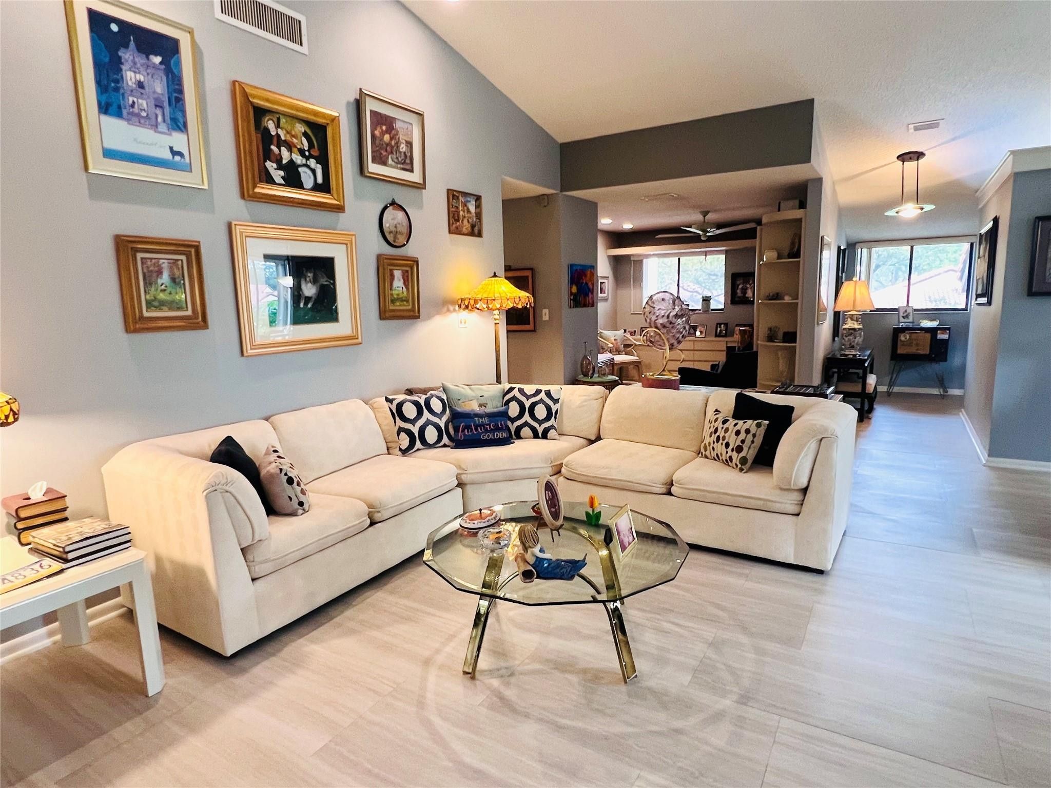 Bright and Open 2nd Floor 2-Bedroom, 2-Bathroom Condo with an added Den/Office/potential 3rd Bedroom and Large, Enclosed Air-Conditioned Lanai. GORGEOUS and PEACEFUL Water Views! Updated Luxury Vinyl Plank Flooring throughout. Warm & Welcoming Unit with Over 1700 sf of Living Area Under Air. New Microwave & 2-Year Old Dryer. Updated Electrical Panel. Accordion Shutters Throughout for Easy Hurricane Prep. Built-ins Create Extra Storage and a Convenient Murphy Bed with New Mattress is in the 2nd Bedroom for Guests. Most Furniture is Included! Quick Closing if Desired. Palm Chase is a Desirable Community Nestled Behind a Church/Seminary 1/4 Mile from the Street to a Gated entrance. Amenities include a Temperature Controlled Pool, Tennis, Pickleball, Hot tub, Sauna, Fitness Rooms & More!