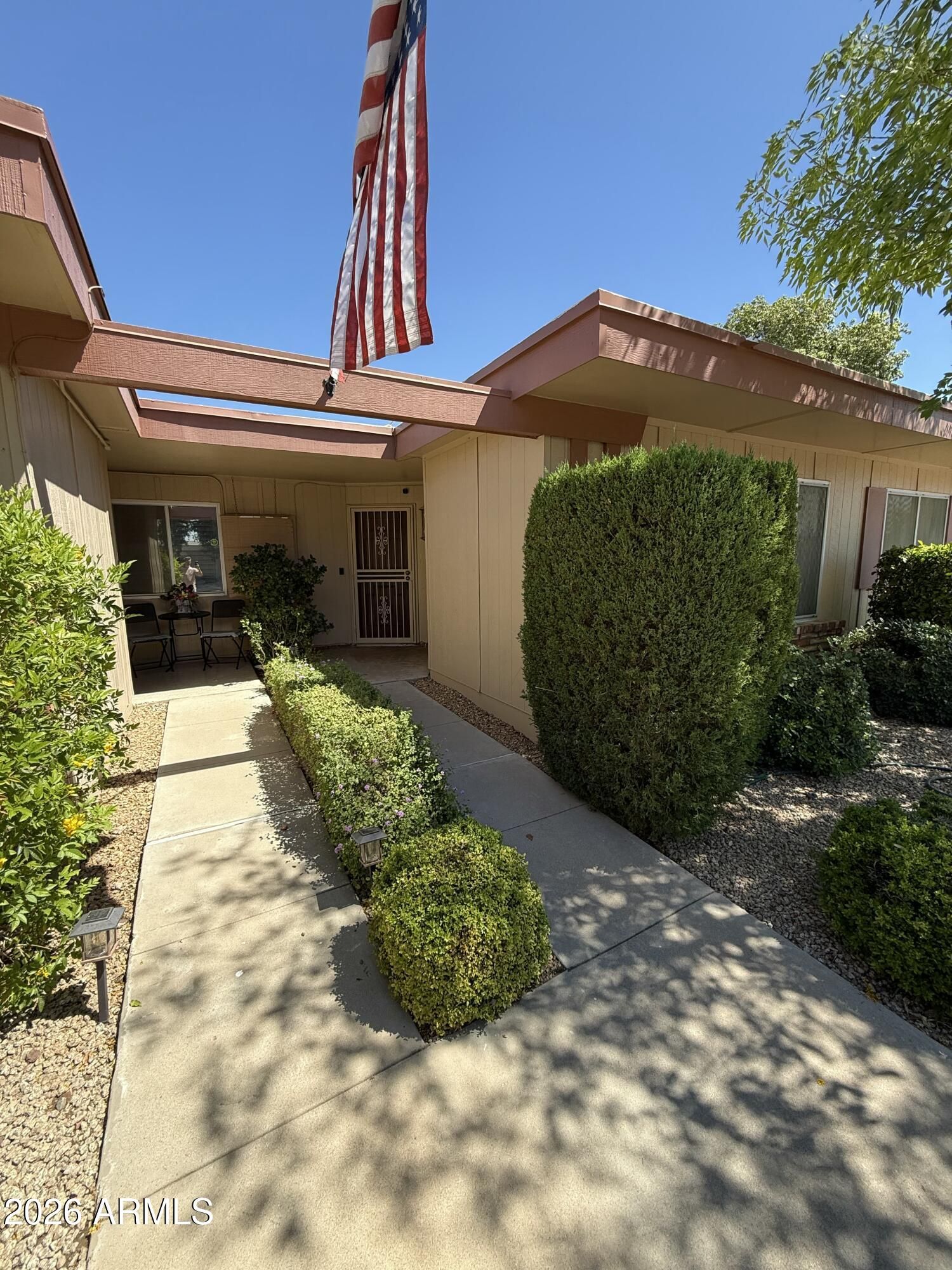 Fantastic end-unit townhouse nestled in a desirable 55+ community in Sun City ready for some TLC to make it yours! Discover inviting living spaces filled with natural light for endless entertainment. The kitchen provides plenty of cabinetry and ample counter space. Generously sized bedrooms offer comfort and flexibility, complemented by full bathrooms designed for convenience. Your private backyard retreat has a covered patio + extended paver seating area perfect for relaxing mornings or sunsets. Do not miss the 2-car rear-entry garage with a dedicated laundry area! Enjoy the community pool, heated spa, golf, gym, and more. Ideally located within walking distance to Banner Boswell Hospital, as well as nearby restaurants and shopping. This is the active adult lifestyle you've longed for!