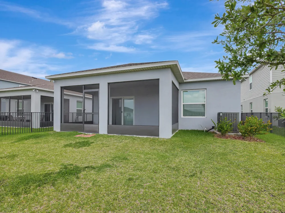 Don't miss the chance to call Crosstown Commons home! This 2022-built contemporary gem features 4 beds, 2 baths, step outside to enjoy a screened-in patio and fenced backyard with serene lake views. With minimal HOA fees, you'll have access to amenities like a pool, clubhouse, and playground. Seize this incredible opportunity now!