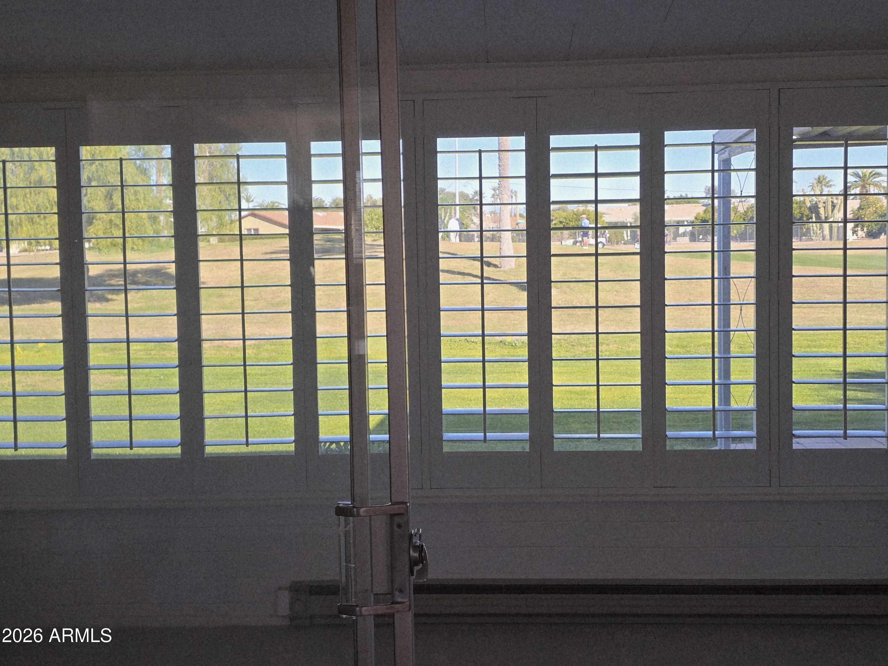 Panoramic golf course views in this desirable end-unit, 4-plex style home, perfectly situated on Sun City's South Golf Course. This home has been well cared for. The updated kitchen offers abundant cabinetry and generous counter space, with soft-closing drawers, ideal for everyday living and entertaining. Both bedrooms are spacious and comfortable. Enjoy the expansive, glass-enclosed AZ Room, perfect for relaxing while taking in the beautiful views. This is located within walking distance of the Fairway Rec Center, which has heated lap and walking pools and state of the art exercise equipment! This is a must-see home. Priced very low for a home on a golf-course!