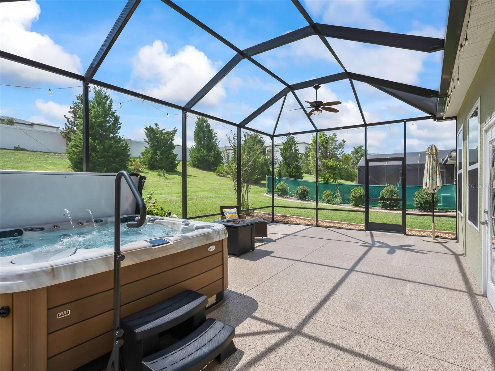 One or more photo(s) has been virtually staged. Priced to sell! Welcome home!!! Stonecrest is a private, 55+gated golf community w/ Envera System access which provides many benefits to the residents and the community overall. This is a golf community for active adults offering over 26 clubs, 67 activities, 4 pools (including an indoor pool), and a newly remodeled clubhouse with dining, and entertainment. Conveniently located, you can reach shopping, medical, BJ's, and more all by golf cart! The HOA fee is just $148 per month, providing you with a new affordable, fun and active lifestyle! The seller's have provided an upgrade/update list for this home, which is quite extensive, that include a 27'X17' birdcage with UV protection screening, concrete floor coating and electrical for a ceiling fan. Also, a sunroom with new LVP flooring, plantation shutters and fresh paint. A whole house concrete landscape border with fresh landscape rock and mature landscaping, whole house gutters and downspouts added with freshly painted exterior and trim. The tile and grout has been cleaned and sealed and all air ducts cleaned and UV bulbs replaced, just a few highlights there are more. This highly desirable 2017 Hickory model in North Valley II features 3 bedrooms all with closets, tall ceilings, 2 full baths, an oversized garage and other features which makes this a perfect Florida home in a highly desirable area in the commmunity. The open floor plan offers a great open kitchen, granite counters, plantation shutters, tall cabinetry, tile floors, and newer LVP flooring in the bedrooms. The kitchen is designed with stainless steel appliances, soft-close cabinetry with a lazy Susan, tile backsplash, breakfast bar, island, oversized pantry, and a vented microwave. The spacious primary ensuite offers a tray ceiling, while the formal dining room also highlights a tray ceiling for additional architectural detail. This is one of the most desirable floor plans in Stonecrest! Additional extra features that you should note includes an enclosed Florida room with triple sliding glass doors to the great room, aluminum pull-down stairs in the garage for more storage, exterior flood lights with light sensitivity detection, stone landscaping with mature plantings, and a metered irrigation system. This home is move-in ready, beautifully maintained, and priced to sell! Call today for your private tour. The spa is negotiable and is surely an added asset for this like new home.