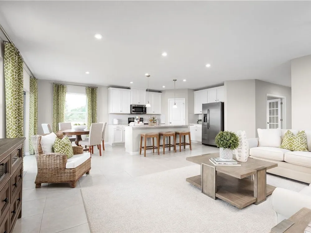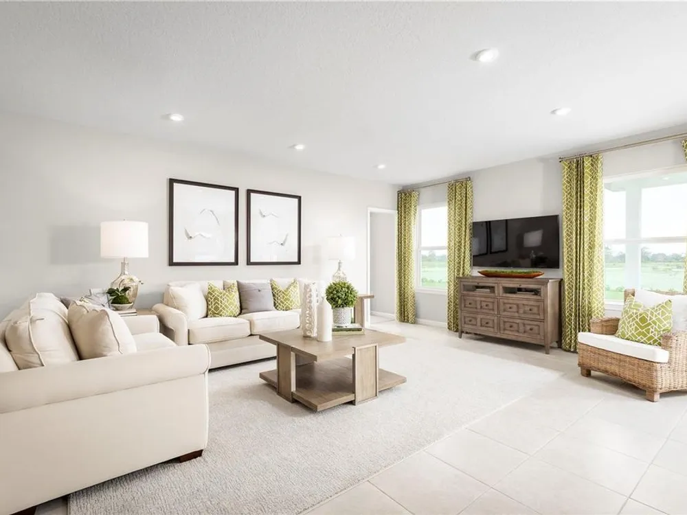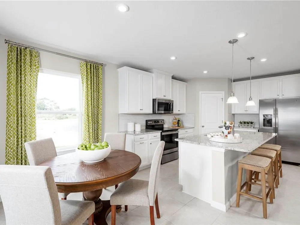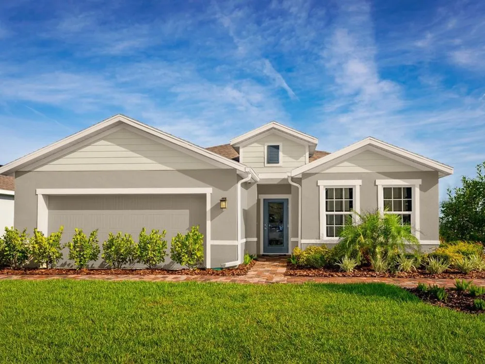 Pre-Construction. To be built. Copperleaf, located in one of Ocala's most beautifully established areas, featuring wide homesites with space between you & your neighbors and options for a 3-car garage. Discover the city on horseback and take a guided tour through the Ocala National Forest under the canopy of centuries-old trees. Get your adrenaline going with a trip to Canyons Zip Line and Adventure Park – you can even sign up for a Nighttime Zip Tour during the full moon. Spend a hot day cooling off in one of the 600 lakes, rivers, and springs in the county. Spend the day floating, kayaking, or scuba diving in the crystal blue waters. The Baymont 2-car garage single-family home has it all, all on one level. A welcoming foyer invites you inside and leads you past 2 spacious bedrooms to a unique flex space, which can be used as a study or an additional bedroom. From there, a large great room is where you’ll make memories with family and friends, and it flows directly into the gourmet kitchen. Set up games or enjoy homemade meals around the large center island. At the end of the day, escape to your main-level owner’s suite with its tray ceiling, walk-in closet and double-vanity bath. This is the next level of great living. All Ryan Homes now include WIFI-enabled garage opener and Ecobee thermostat. **Closing cost assistance is available with use of Builder’s affiliated lender**. DISCLAIMER: Prices, financing, promotion, and offers subject to change without notice. Offer valid on new sales only. See Community Sales and Marketing Representative for details. Promotions cannot be combined with any other offer. All uploaded photos are stock photos of this floor plan. Actual home may differ from photos.