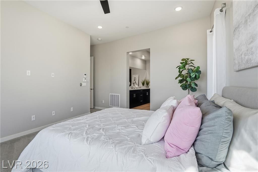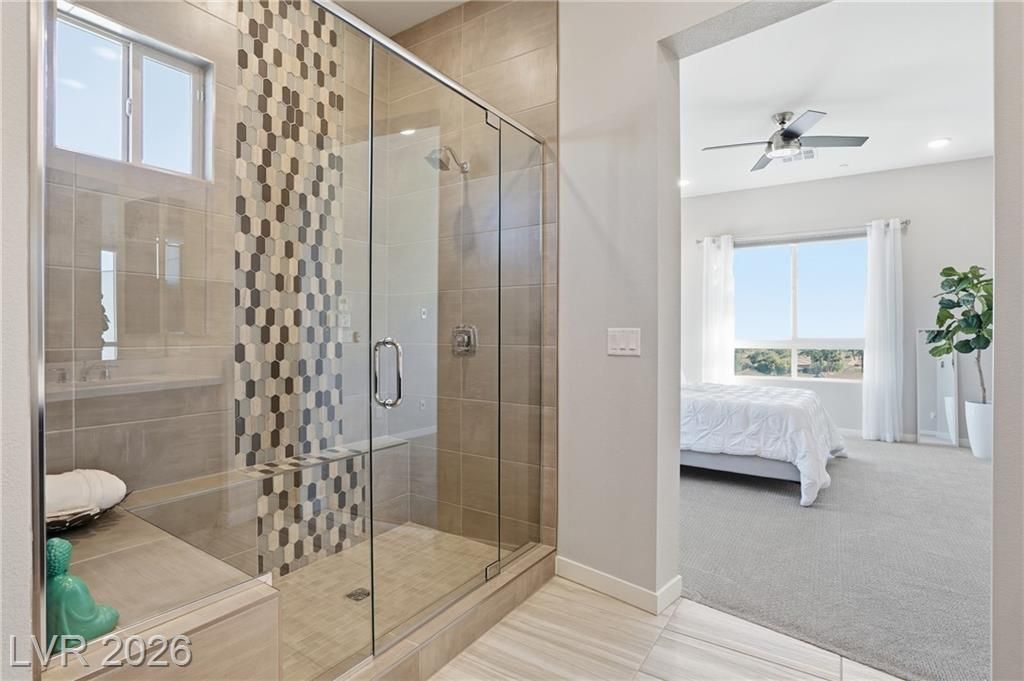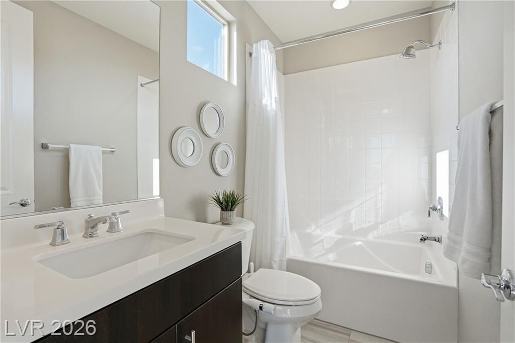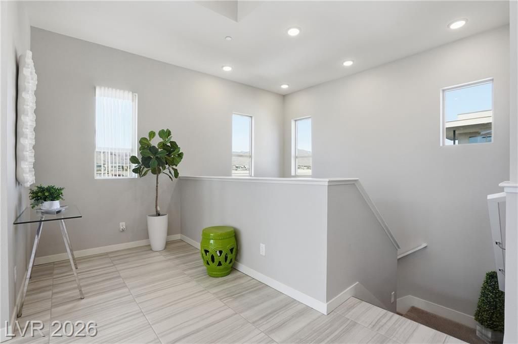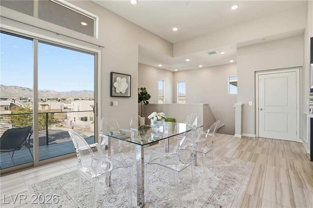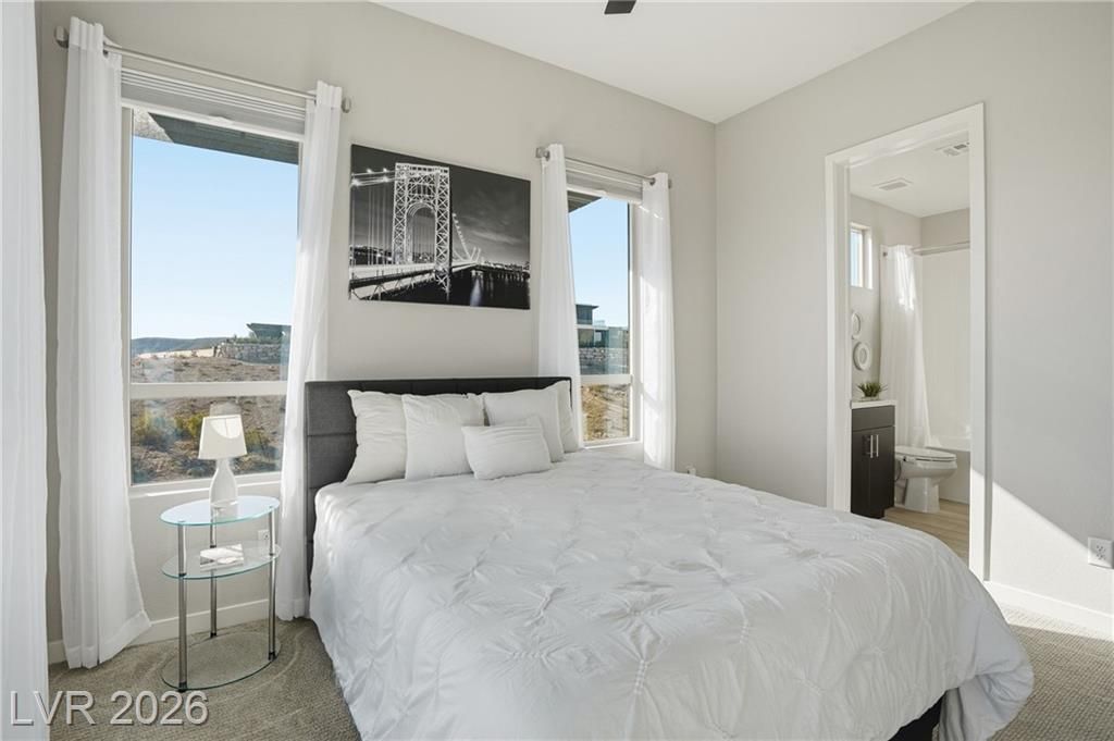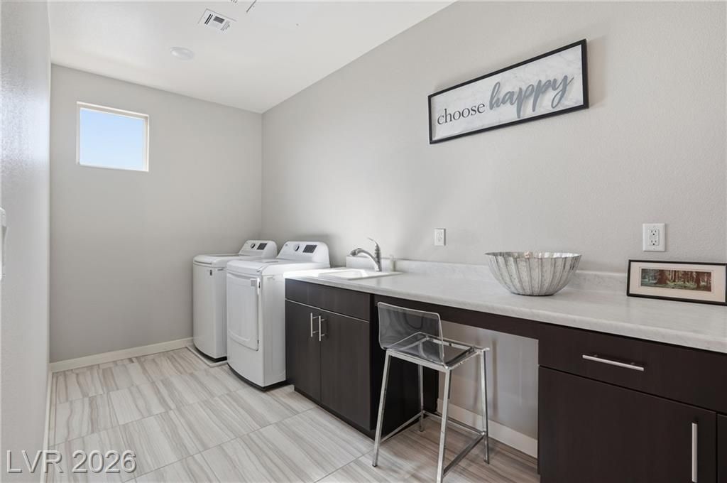 Stunning residence in guard-gated Trilogy in Summerlin featuring single-level luxury living on an upper floor with elevator access, 2 bedrm plus den, 2.5 baths, & an open, modern great room design ideal for entertaining. An expansive chef’s kitchen with a large island, sleek cabinetry, & quartz-style counters flows seamlessly into the dining, living areas & out to a generous covered deck for true indoor–outdoor living. The elegant primary suite offers a spa-inspired bath with an oversized shower & walk-in closet, while the private ensuite guest room & separate den provide flexible space for an office or visiting family. Home also includes an oversized laundry/SmartSpace with extra storage, an attached 2-car garage. Trilogy’s resort amenities include a clubhouse, fitness center, pool, & a vibrant 55+ lifestyle. This is where neighbors become friends, & events bring people together. The lifestyle is centered around the Outlook club, making it one of the most sought-after 55+ communities.