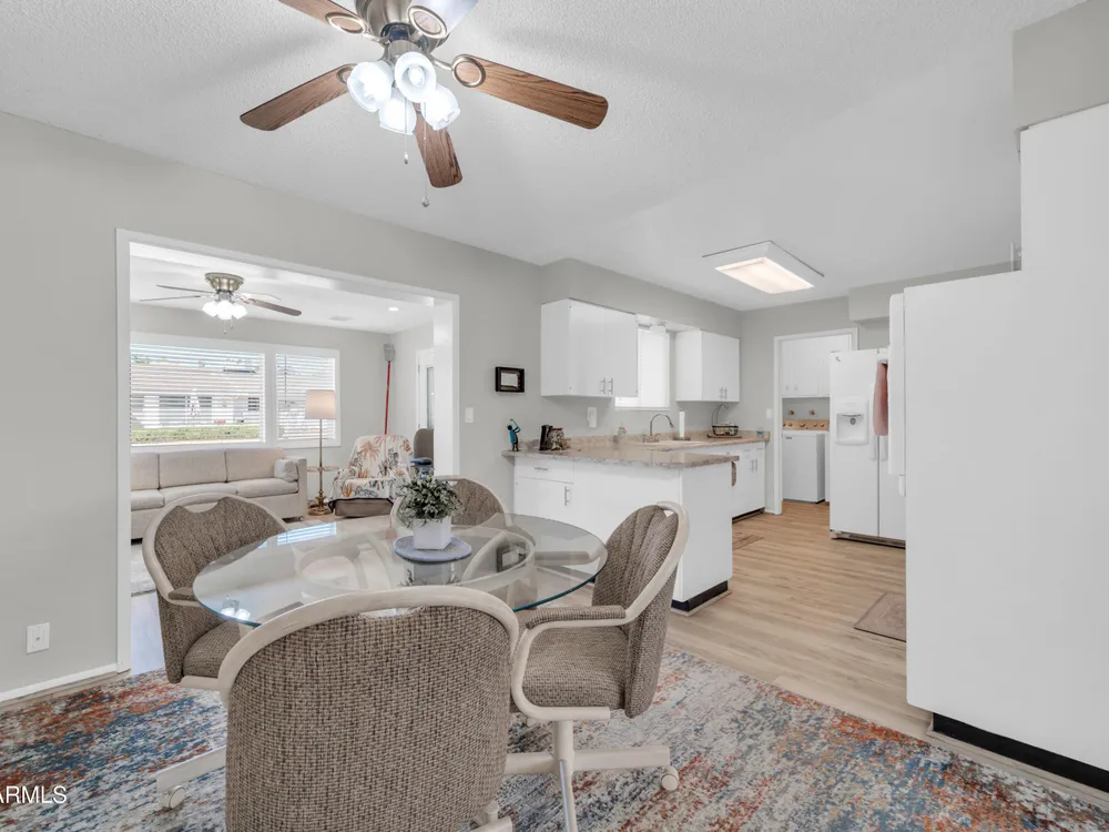 Turn-Key Gem in the Heart of Sun City! Discover the perfect blend of comfort, convenience, and lifestyle in this beautifully maintained single-level 2-bedroom, 2-bathroom home located in one of Sun City's most desirable active adult communities. Freshly painted inside with updated laminate wood flooring, this move-in-ready retreat offers a bright and inviting floor plan ideal for relaxed living. Enjoy your morning coffee or evening book in the spacious sun room, perfect for year-round enjoyment. Most furnishings are included, making this a truly turn-key opportunity — just bring your suitcase! Nestled in a quiet, well-kept neighborhood, you're just minutes from world-class golf courses, popular recreation centers, shopping, dining, and all the amenities that make Sun City such a vibrant 55+ community. Whether you're seeking a seasonal getaway or full-time residence, this home is priced right and ready for you. Don't miss your chance to live the Sun City lifestyle!