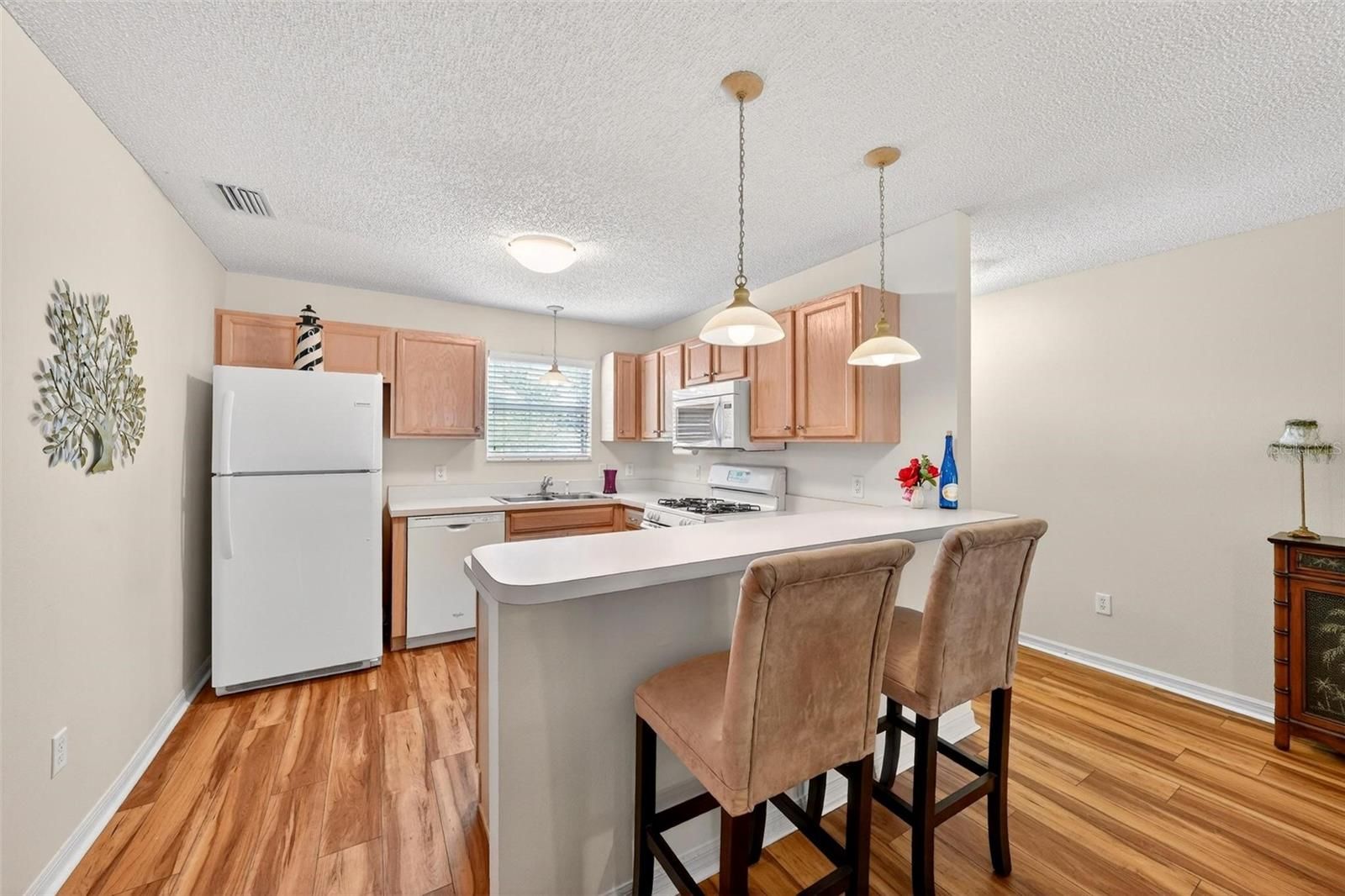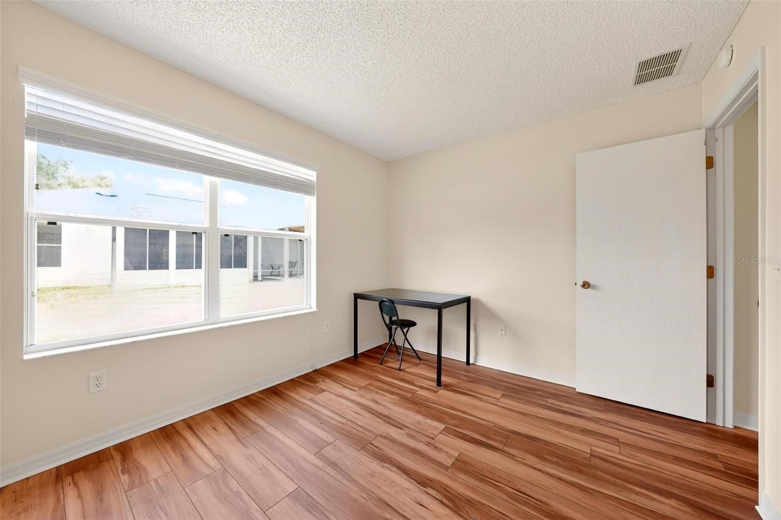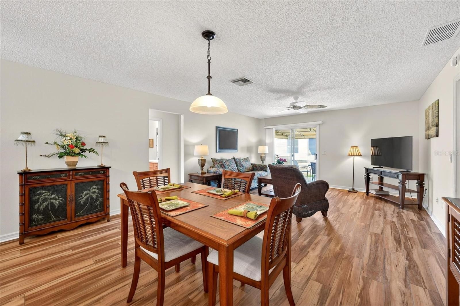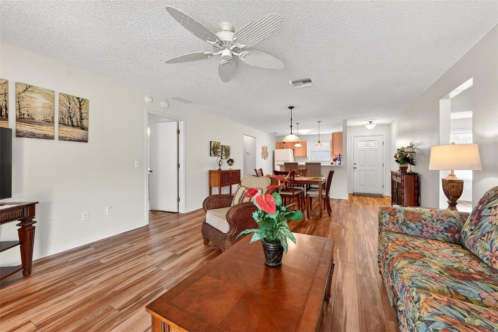 This beautifully maintained turnkey 2-bedroom, 2-bath home with a versatile den is perfectly situated in the highly desirable Village of Sumter, offering both comfort and peace of mind with a new roof installed in 2023 and the bond fully paid off. With 1,240 square feet of inviting living space, the home features an open, light-filled layout enhanced by laminate flooring throughout. The spacious den provides an ideal flex space for an office, hobby room, or additional guest accommodations. The kitchen offers generous counter space, ample cabinetry, and a full suite of appliances, flowing seamlessly into the dining and living areas for easy everyday living and entertaining. The primary suite includes a walk-in closet and a private bath, while the guest bedroom and second bath are thoughtfully positioned to provide privacy for visitors. Step outside to a covered rear patio where you can enjoy the Florida sunshine in a quiet, low-maintenance setting. The home sits on a manageable 0.12-acre lot and includes an attached one-car garage with room for a golf cart convenient parking and storage. Located just minutes from Lake Sumter Landing, this turnkey home provides quick access to golf courses, recreation centers, pools, shopping, dining, and the vibrant lifestyle that defines The Villages. 1088 Gennesse Lane offers exceptional value for anyone seeking a full-time residence or seasonal retreat in one of Florida’s most sought-after 55+ communities.