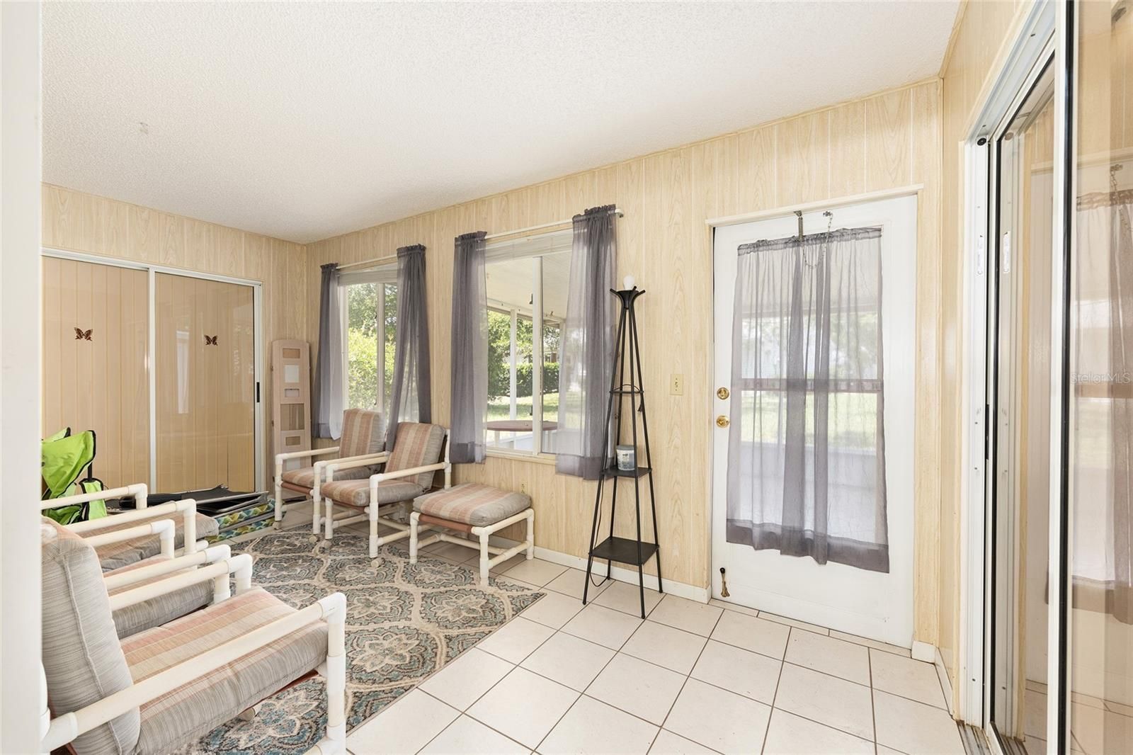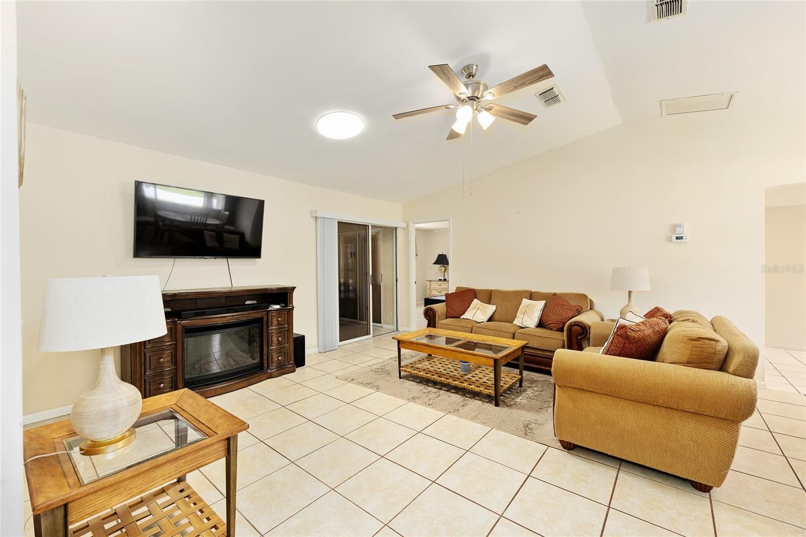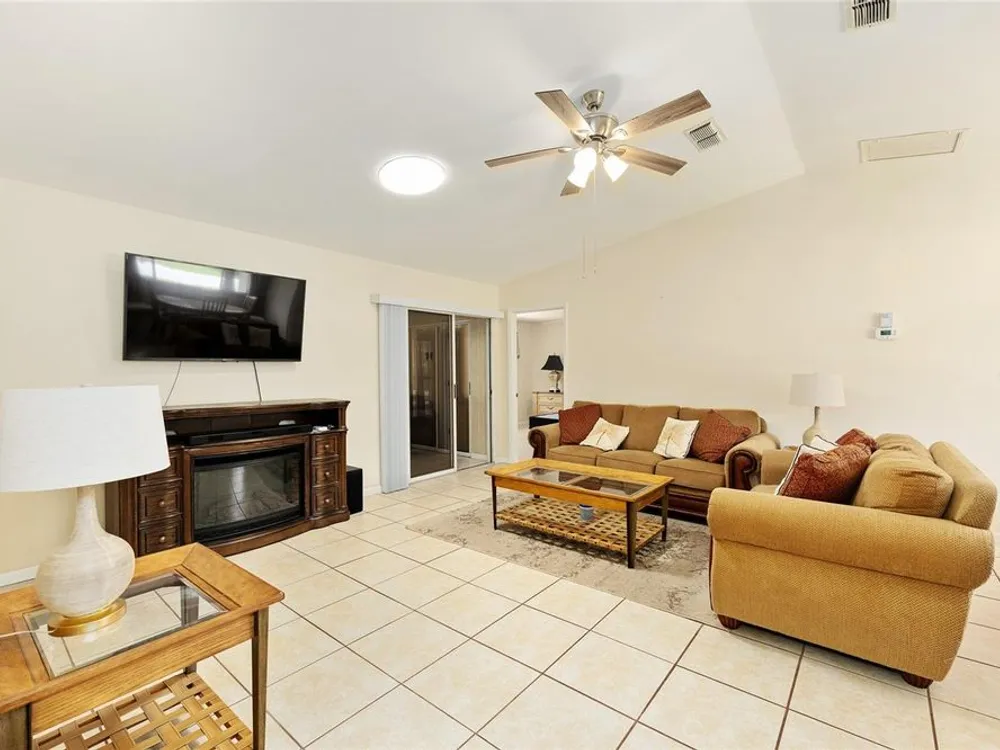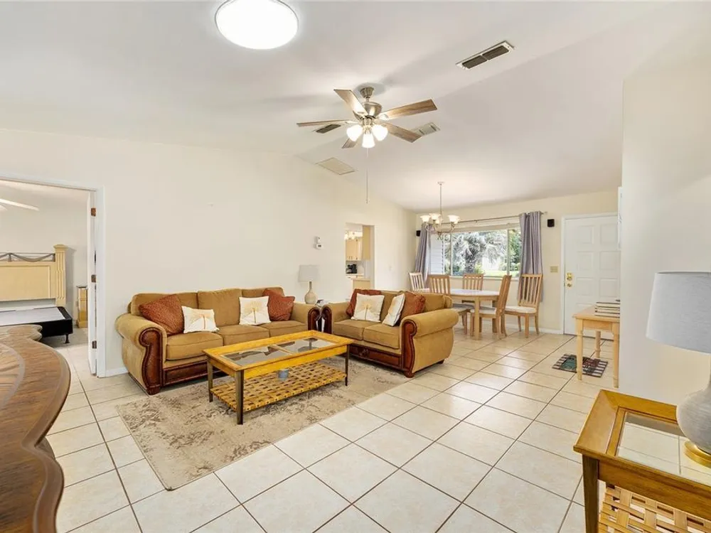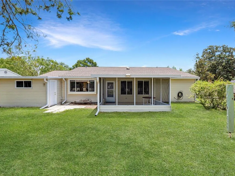 Experience easy and affordable Florida living in this turn-key 3-bedroom, 2-bath home located in the gated, 55+ Oak Run golf course community. Designed for both comfort and style, the home features a flexible open floor plan and a fresh roof installed in 2020 for added peace of mind. Located near one of several community pools, it also offers the perfect blend of privacy and convenience. A welcoming front porch welcomes you into the light and bright living area, highlighted by high ceilings, a neutral color palette, and tile floors throughout for ease of maintenance. Sliding glass doors open onto a screened Florida room—ideal for morning coffee or hosting outdoor gatherings with a tranquil view of the tree-lined backyard. The spacious kitchen offers generous cabinetry, a tiled backsplash, white appliances, and a cozy breakfast nook for casual meals. Retreat to the owners’ suite with its spacious layout, including an ensuite bath featuring a vanity area and separate shower room/water closet, and expansive sliders providing direct access to the Florida room. Two nicely-sized guest rooms offer the perfect opportunity to host friends and family or create dedicated spaces for hobbies, reading, or a home office. The attached garage includes a laundry area and a spacious utility room, ideal for added storage and seasonal organization. The Oak Run community offers a vibrant lifestyle and a wealth of amenities, including an 18-hole golf course, fitness center, tennis courts, multiple pools, and a vast selection of clubs and social activities. Whether you enjoy casual outings or fine dining, you’ll find plenty of options in and around the community. Its prime location also provides easy access to shopping, medical facilities, parks, and more. Come see this home today—it’s ready to welcome you to your new, relaxed Florida lifestyle. This isn’t just a house—it’s the lifestyle you deserve.