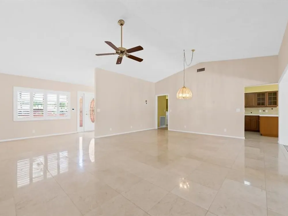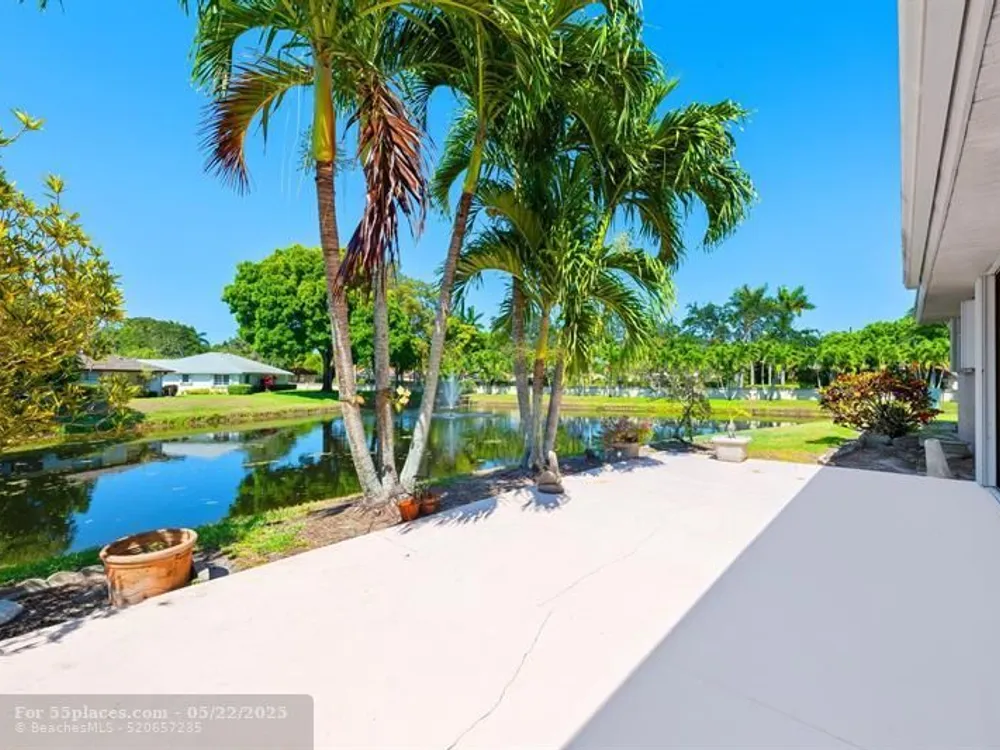 Discover your dream home at 10893 Ventura Cir in a serene cul-de-sac with beautiful lake views in Boynton Beach's vibrant 55+ community of Pine Tree Village, known for its low HOA fees. This charming single-family home offers 2,210 sq ft of living space with 3 bedrooms and 2 bathrooms. A gracious foyer welcomes you into a home featuring a spacious living room. The galley kitchen, equipped with electric appliances and granite countertops, is ideal for culinary enthusiasts. Enjoy natural light from southern exposure, hurricane accordion shutters for security, and efficient climate control. Outdoor spaces include front and back yards and a cozy patio for relaxation. Additional features are a laundry room and an attached 2-car garage. Community has a Pool, Clubhouse, and Pickleball courts!