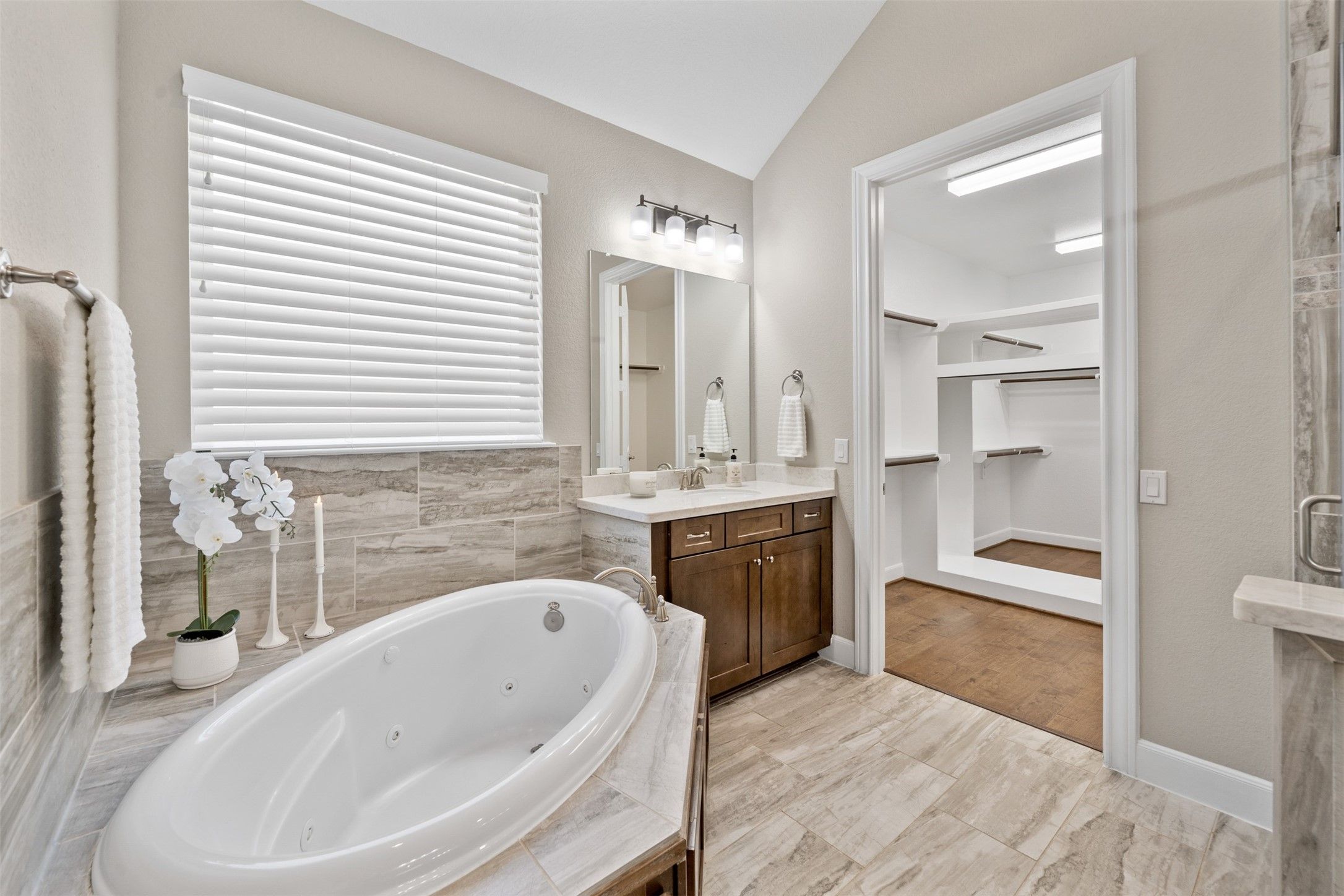 - Crown Molding, Double Vanity, Entrance Foyer, Handicap Access, High Ceilings, Kitchen Island, Kitchen/Family Room Combo, Pantry, Self-closing Cabinet Doors, Self-closing Drawers, Soaking Tub, Separate Shower, Walk-In Pantry, Window Treatments, Ceiling Fan(s), Kitchen/Dining Combo, Living/Dining Room, Programmable Thermostat