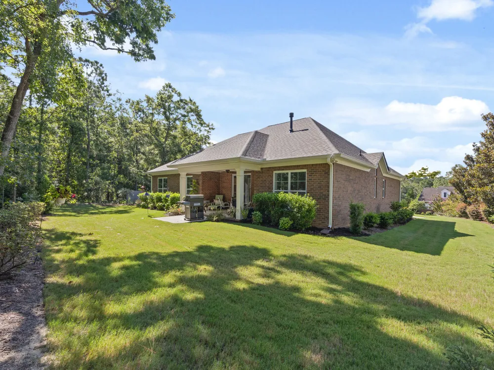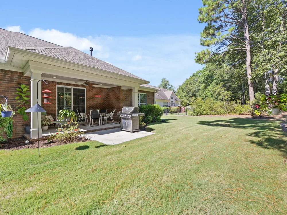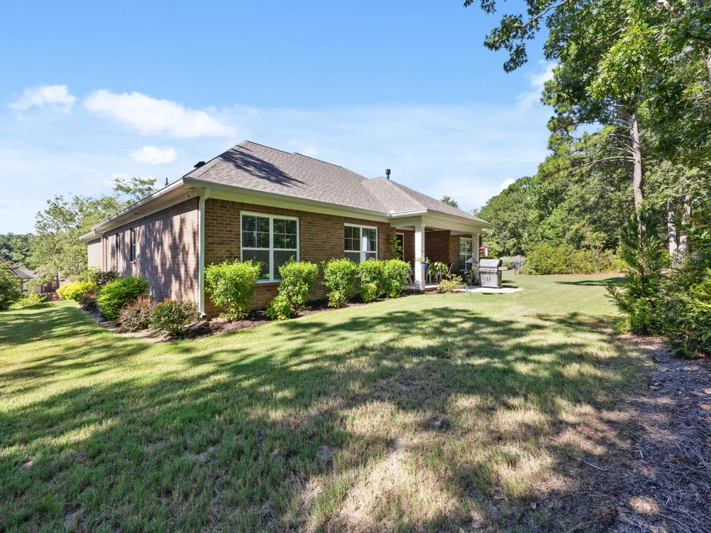 Rare opportunity to own a thoughtfully designed, 2-year-old custom brick home in a highly convenient location within Woodside Plantation.This meticulously maintained, one-level home sits on a hard-to-find .42-acre lot with wooded privacy in an established section of the community. The flexible split-bedroom layout includes 3 bedrooms, 2 full baths, and a dedicated office--ideal for a home office, hobby space, or quiet retreat.Enjoy elevated features throughout, including 9.5' ceilings, exposed beams, and a gas fireplace in the spacious great room. The chef's kitchen is equipped with Bosch stainless steel appliances, quartz countertops, a pot filler, vent hood, and a generous walk-in pantry. A formal dining room with a trey ceiling adds elegance and functionality.The private primary suite invites you to reboot and relax, offering a large walk-in closet, custom tile shower, and dual granite-top vanities. Beautiful flooring flows throughout the main living areas and primary suite. A well-appointed laundry room with cabinetry, countertops, and a sink adds everyday convenience.Outdoor living is seamless with a covered back porch, extended patio, and rocking-chair front porch--perfect for enjoying Aiken's seasons. This is a home designed for ease and enjoyment, giving you time to focus on what matters most.Enjoy quick access to the East, Main, and Rear gates. Woodside Plantation is a gated community offering miles of walking trails, lush green spaces, and close proximity to Aiken Town Park, shopping (without needing to access a main highway), and a short drive to Historic Downtown Aiken with its gardens, shops, restaurants, and cultural attractions.Optional membership available at The Woodside or The Reserve Clubs, offering golf, tennis, pickleball, swimming, and dining--you choose your level of activity.Located in a 55+ age-restricted neighborhood. This is a rare chance to skip the build and start living beautifully in a move-in-ready home that truly has it all.Buyer to verify all information deemed important, including but not limited to measurements, square footage, zoning, and schools.