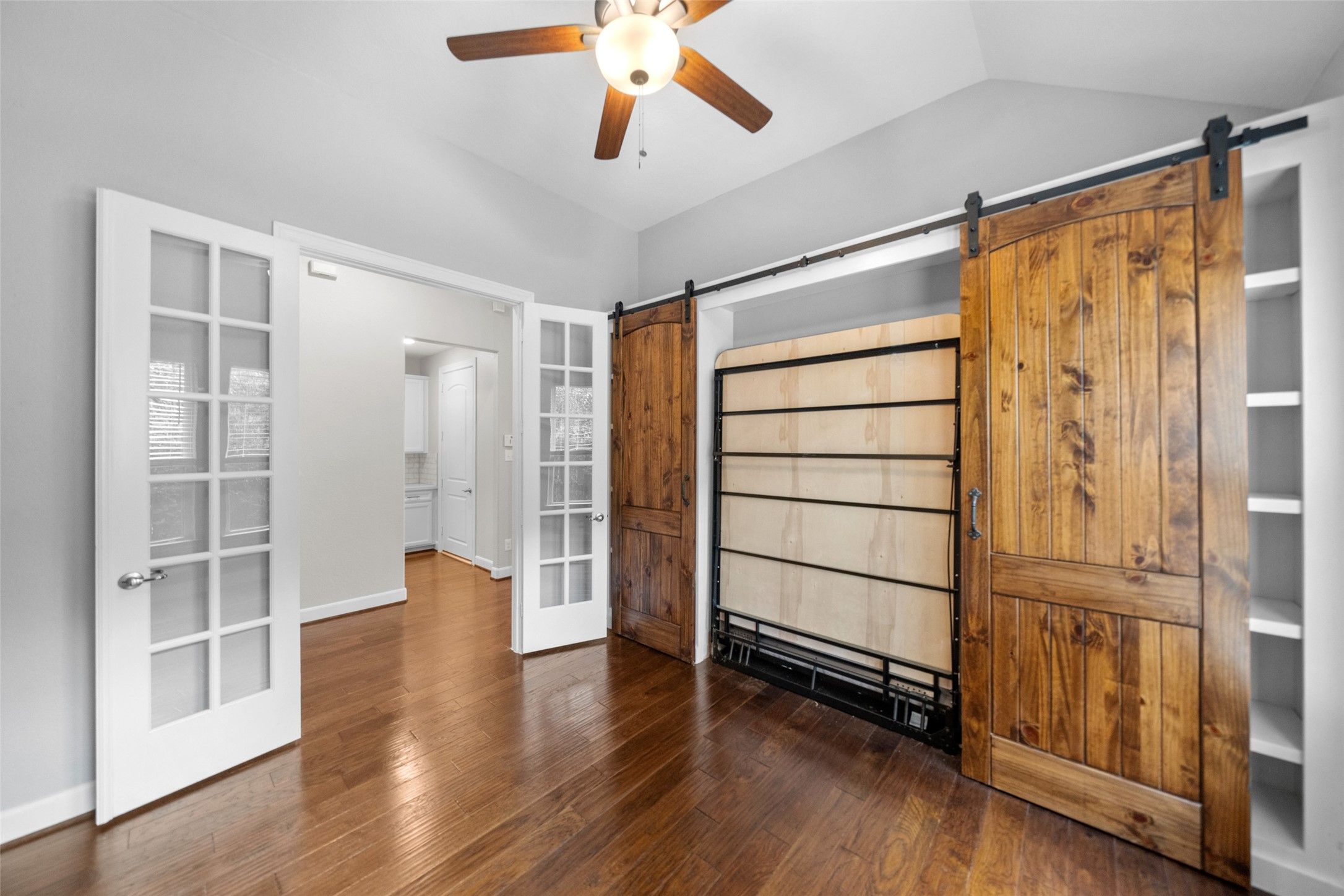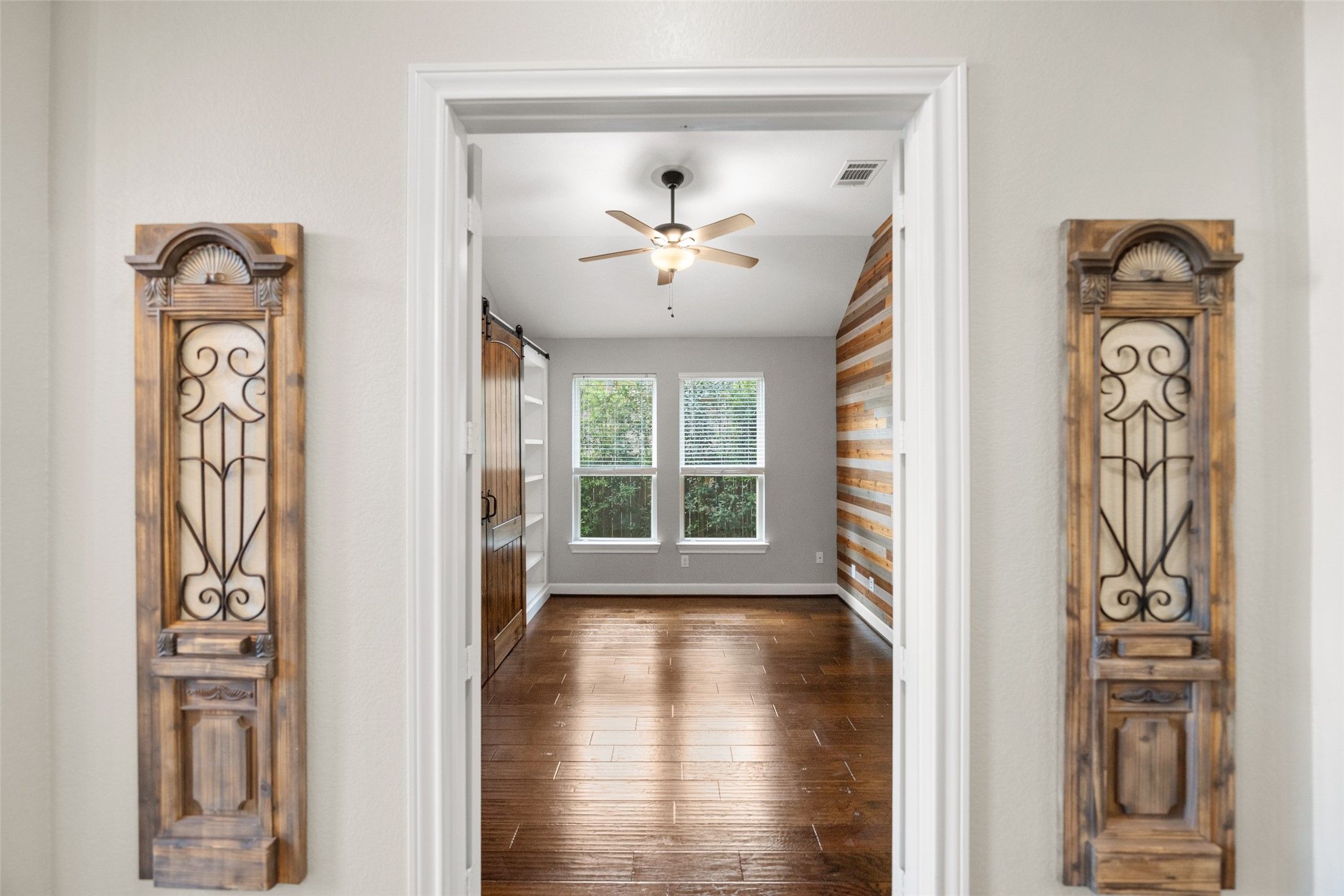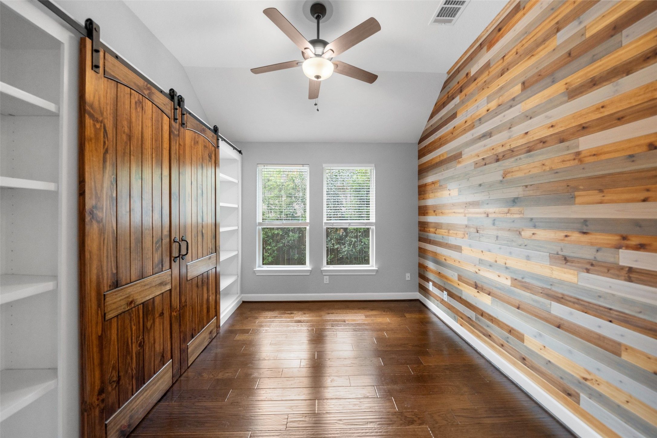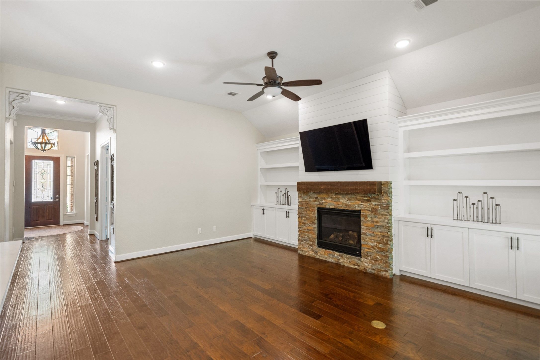 Welcome to 109 Gray Vervain Ct in the highly desirable 55+ Bonterra section of Woodforest. This beautifully designed home features 2 bedrooms, 2 baths, and engineered wood flooring throughout. Ceramic tile flooring in bathrooms and closets. The spacious primary suite offers a spa-like retreat with large walk-in shower, dual sinks, vanity, and spacious walk-in closet. Stylish custom accent lighting enhances the home’s charm, while the covered patio is perfect for year-round relaxation or entertaining. Built by Taylor Morrison, this home also includes a versatile flex room or office with a custom Murphy bed, barn doors, and abundant storage. Enjoy the open-concept kitchen, dining, and living space ideal for modern living. Serene backyard with no rear neighbors, offering added privacy. Located on a quiet cul-de-sac street with no through traffic. Conveniently located near Bonterra amenities and nearby shopping and dining, this home has it all! Can close fast.