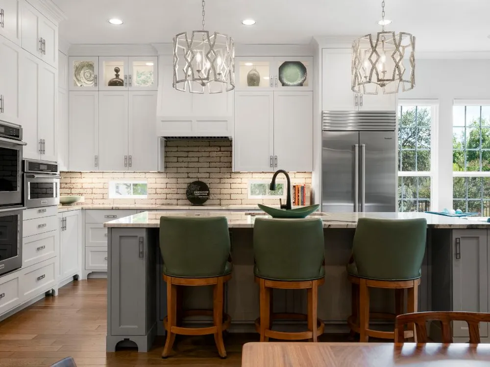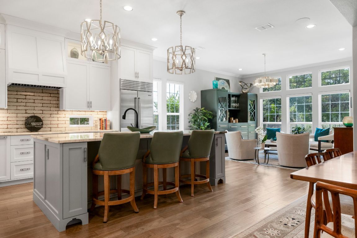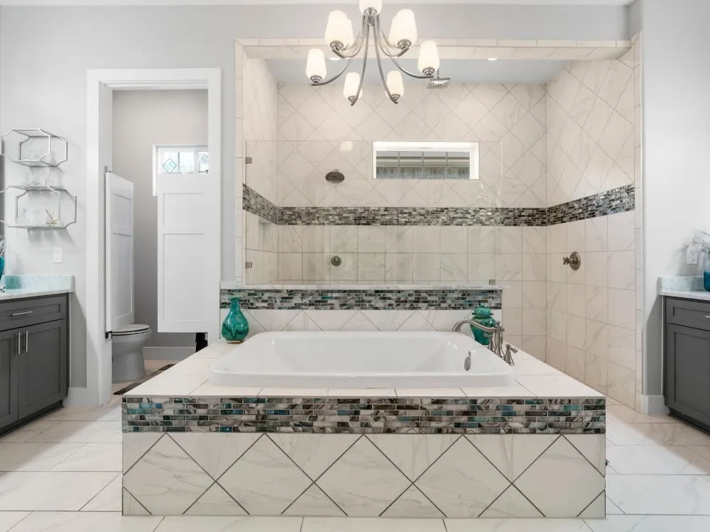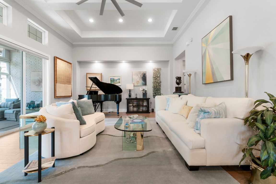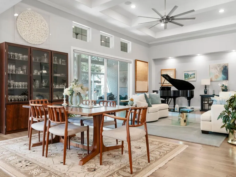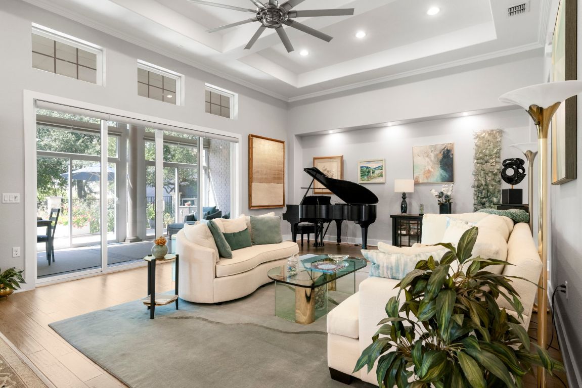 - Built-in Features, Tray Ceiling(s), Ceiling Fan(s), Chandelier, Crown Molding, Dry Bar, Coffered Ceiling(s), Double Vanity, Entrance Foyer, Granite Counters, High Ceilings, In-Law Floorplan, Kitchen Island, Multiple Living Areas, Main Level Primary, Multiple Primary Bathrooms, NoInteriorSteps, Open Floorplan, Storage, Soaking Tub, Walk-In Closet(s)