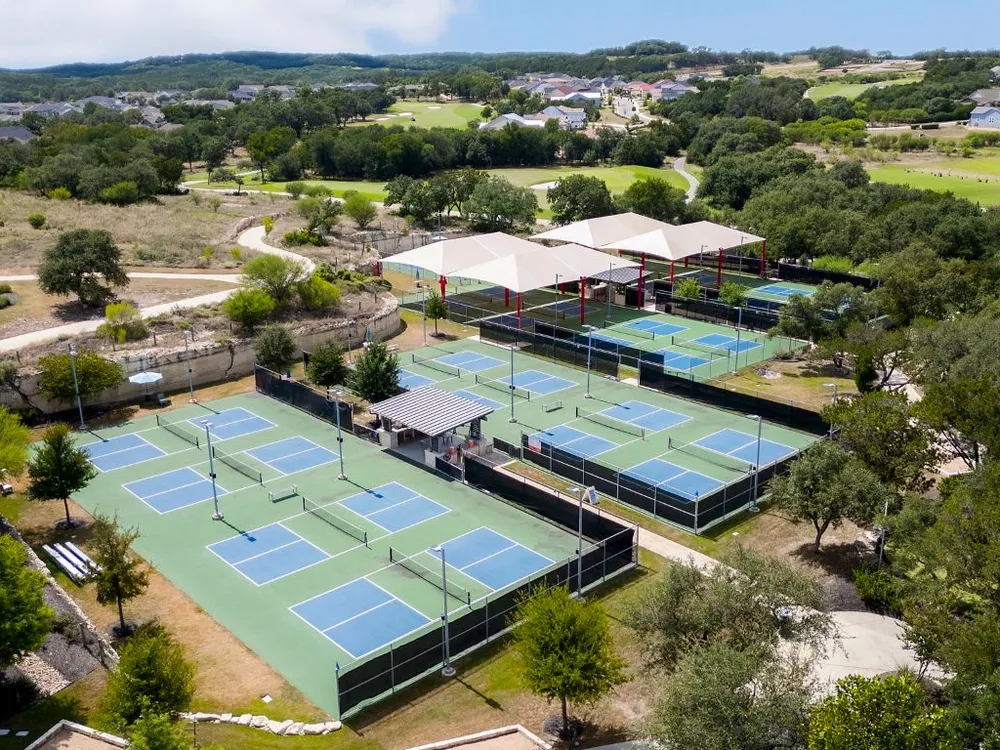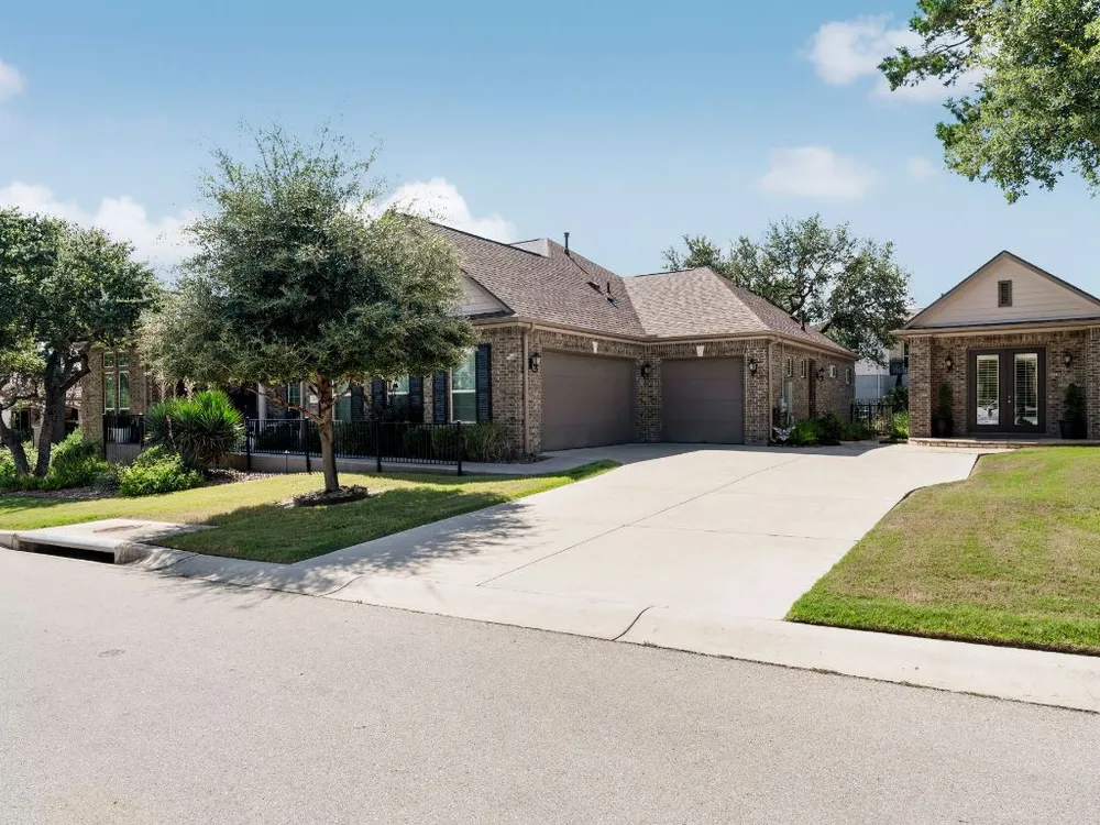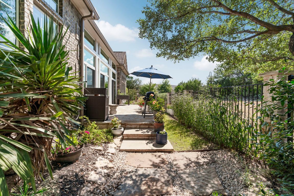 Welcome to Kissing Tree, the award-winning, gated 55+ community nestled in the scenic Texas Hill Country.- near Wimberley and the TX Wine country. The 3,135 sq. ft. main home & an additional 352 sq. ft. private casita with full bath & separate entrance offers generous space, privacy, and flexibility for hosting guests in style. Set on nearly 1/3 of an acre, the lot features mature trees, a wide 140' frontage, and backs to tranquil green space, perfect for enjoying nature in peace. Step inside and be captivated by the thoughtfully designed, fully remodeled kitchen, where efficiency meets luxury at every turn. Custom cabinetry offers smart storage solutions for maximum organization, while sleek, high-end finishes elevate the aesthetic. Culinary enthusiasts will appreciate the built-in Sub-Zero refrigerator, double ovens, and premium appliances—all seamlessly integrated for a functional and beautiful workspace.Adjacent to the kitchen, a flexible entertaining space features a custom built lighted bar, Signature wine tower, and refrigerated beverage drawers—ideal for gatherings and celebrations. The owner’s suite is a private retreat with generous sitting area and a spa-inspired bathroom with walk-in shower and soaking tub. Bedroom 2 includes its own en-suite bath, while Bedroom 3 functions perfectly as a home office or hobby space.The glass-enclosed three-season patio is the perfect place to relax & offers year-round enjoyment & views of deer grazing peacefully behind the home, Living here means more than just a beautiful home—it’s about embracing an active, social lifestyle. Residents enjoy daily activities, an 18-hole Troon-managed golf course, clubhouse with restaurant & pro shop, indoor/outdoor pools, 18 pickle ball courts, bocce ball, & a two-story fitness center. This is a rare opportunity for the discerning buyer seeking unmatched luxury, thoughtful design, and the vibrant lifestyle only Kissing Tree can offer.