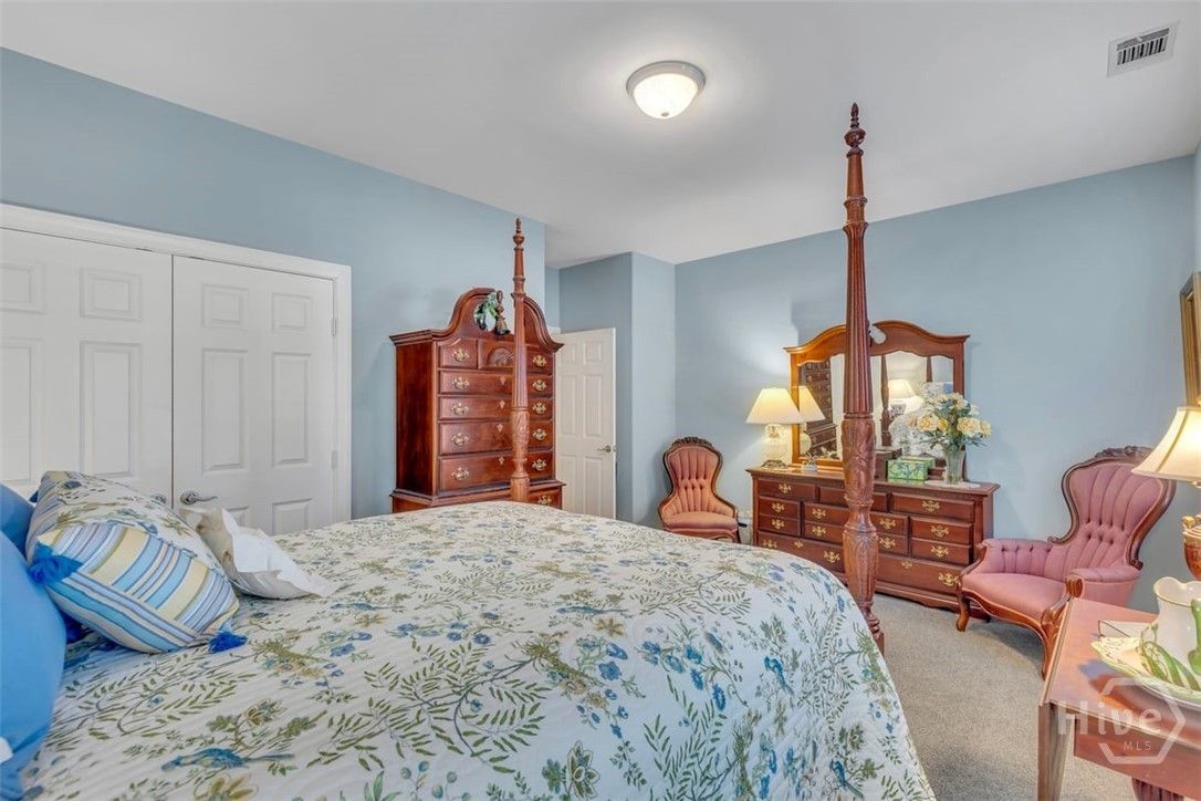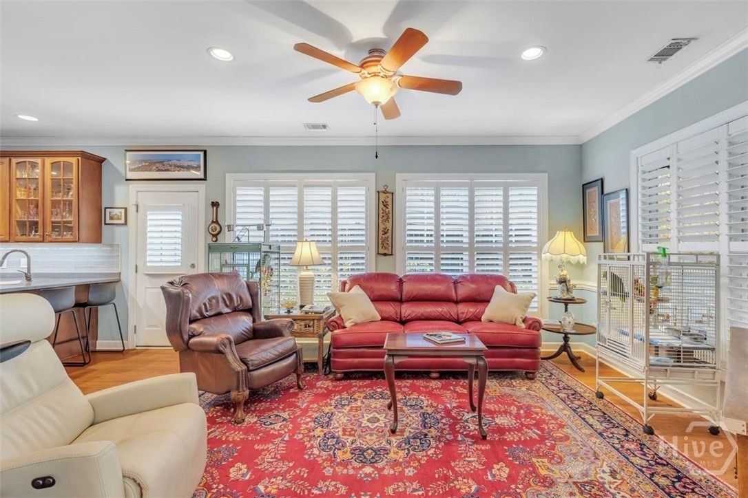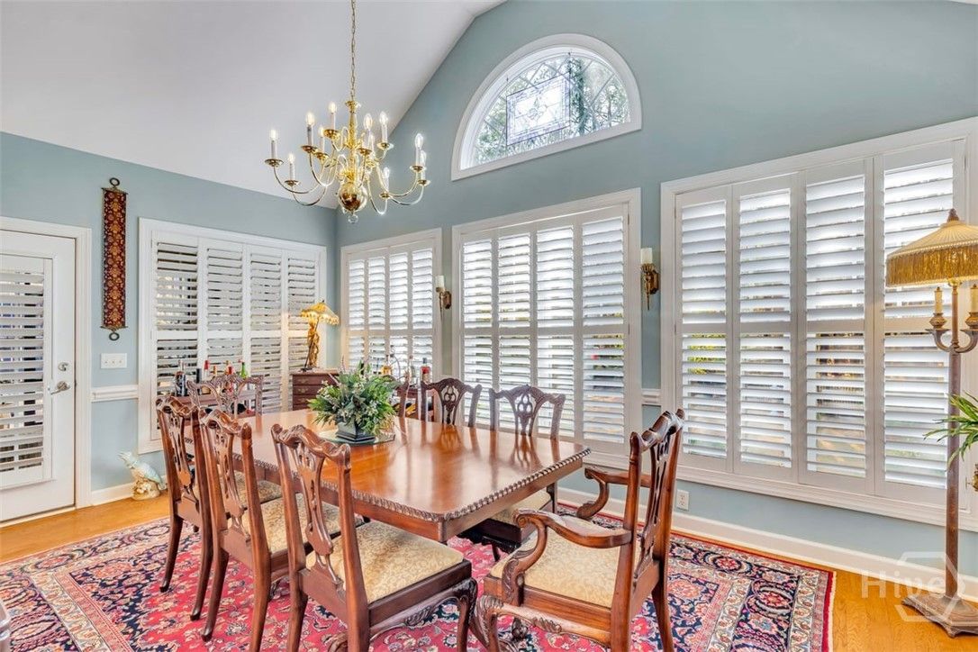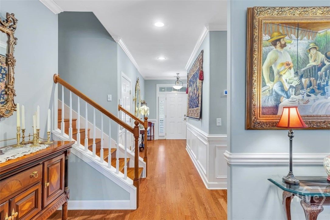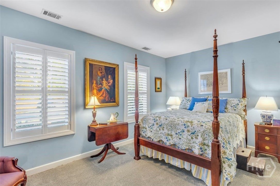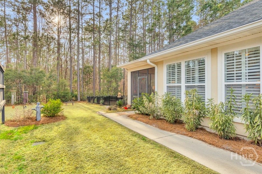 This 4BR/3BA townhome in Westbrook at Savannah Quarters offers 3,239 square feet of well-designed living space with two bedrooms on the main level and two upstairs. The kitchen features rich brown cabinetry, pantry storage, premium appliances, and a breakfast bar that opens to a gracious den. The generous living room boasts a cathedral ceiling, gas fireplace, mantle, and built-in bookshelves, complemented by a formal dining room. The main-level owner’s suite includes a spacious bath with double vanities and a custom walk-in closet. A second bedroom or office, full bath, and laundry are also conveniently located on the main floor. Upstairs, two large bedrooms share a Jack-and-Jill bath. A screened porch overlooks the fenced yard and wooded backdrop for added privacy. Upgrades include custom wood shutters, crown molding with bullnosed corners, chair rail, and a new roof.