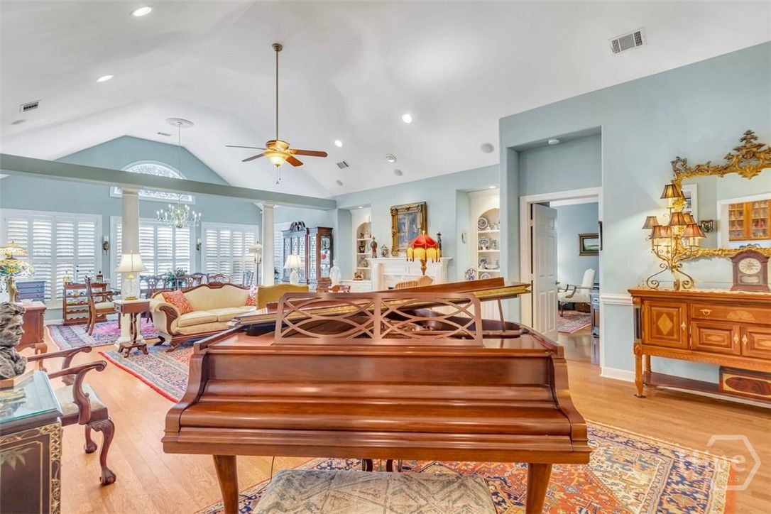 - Attic, Breakfast Bar, Built-in Features, Ceiling Fan(s), Cathedral Ceiling(s), Double Vanity, Entrance Foyer, Main Level Primary, Pantry, Recessed Lighting, Fireplace
