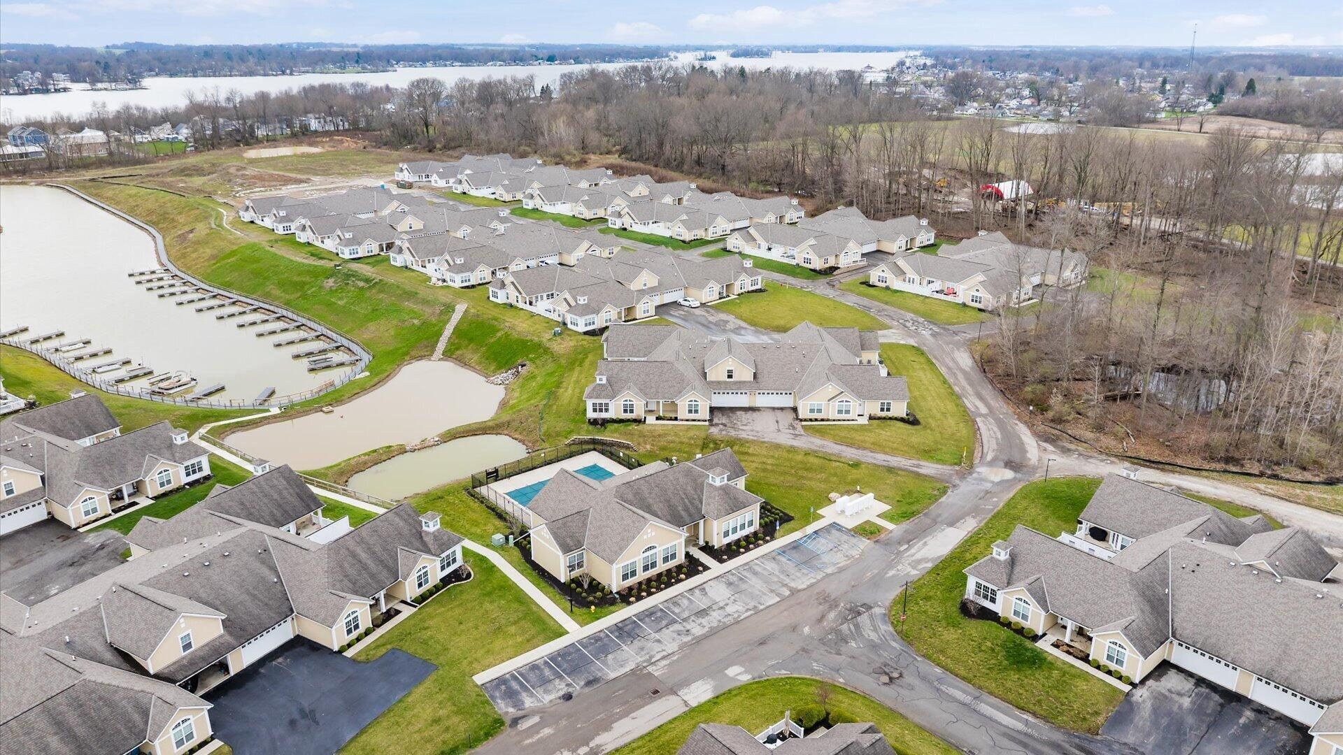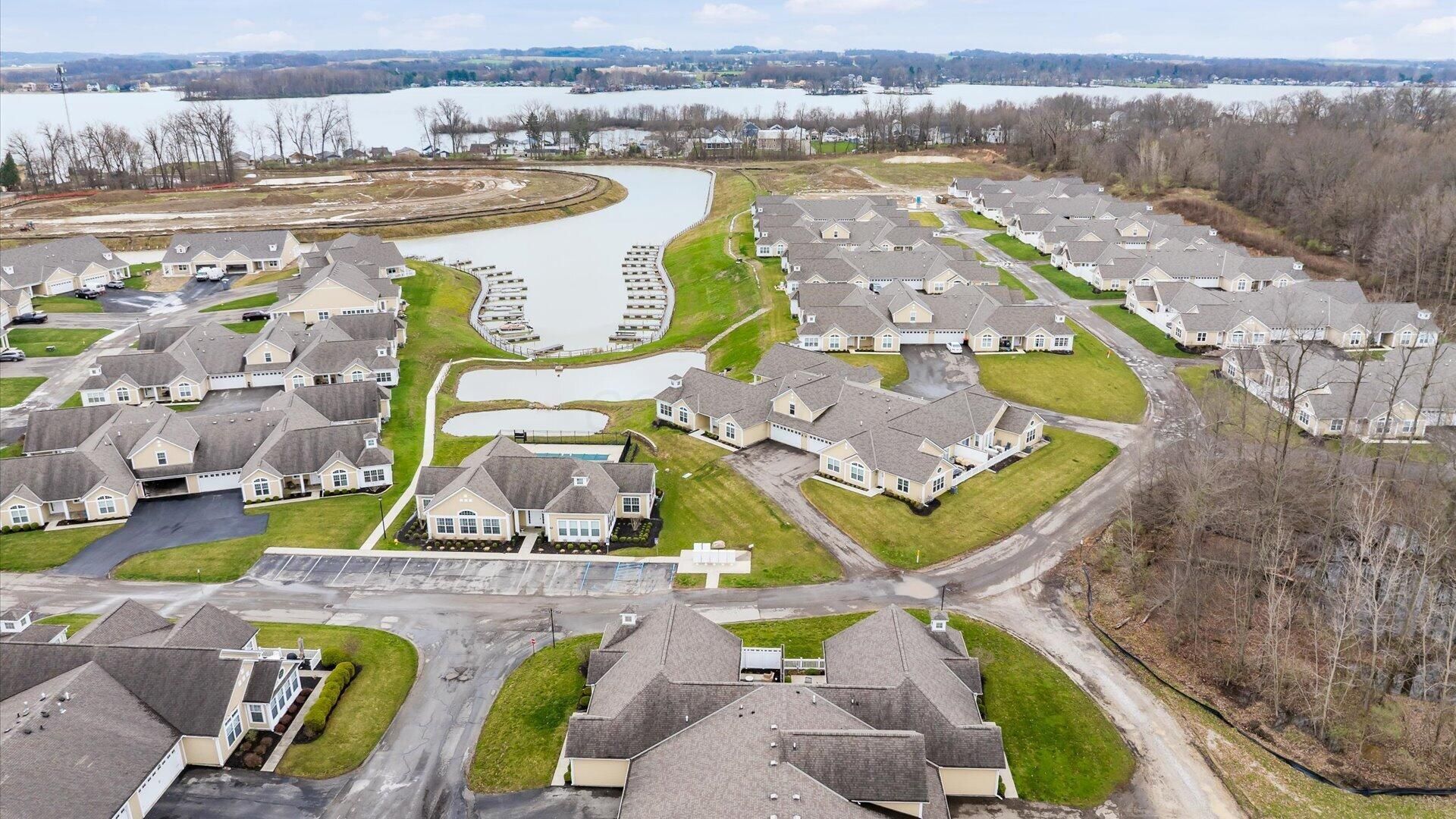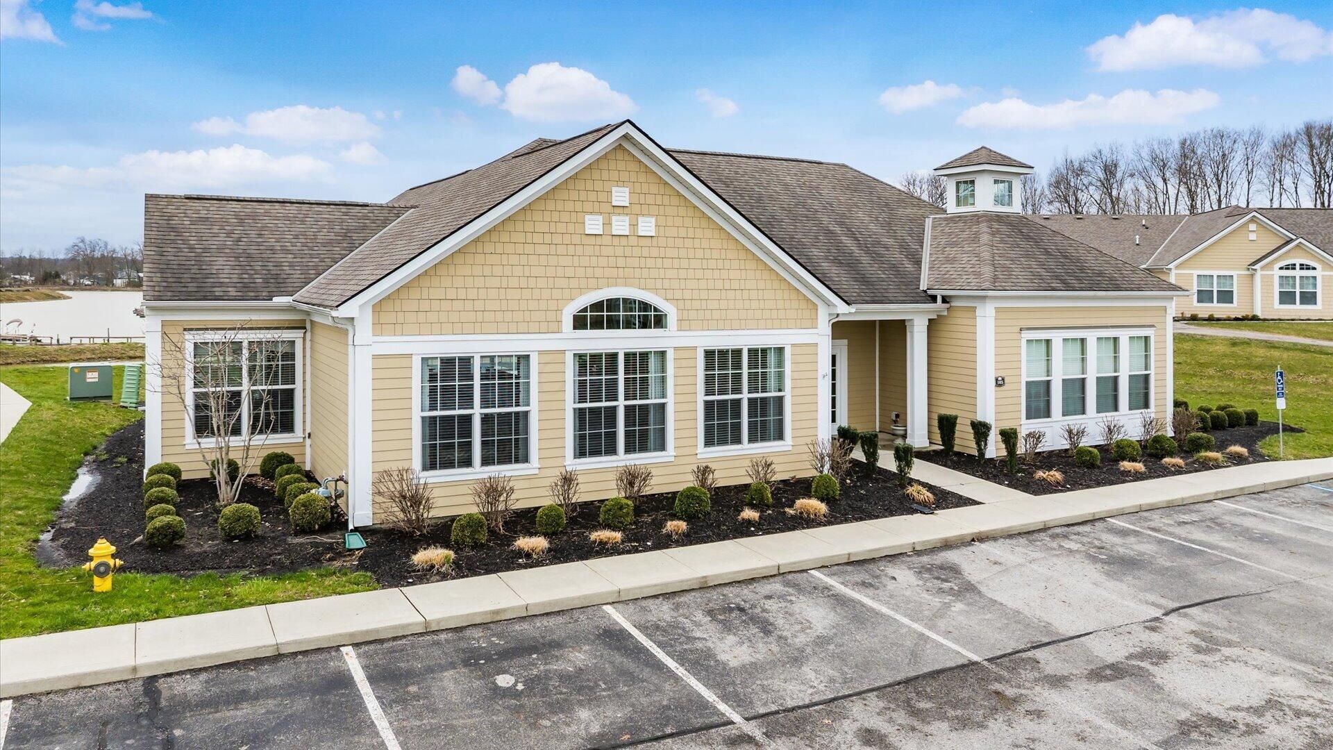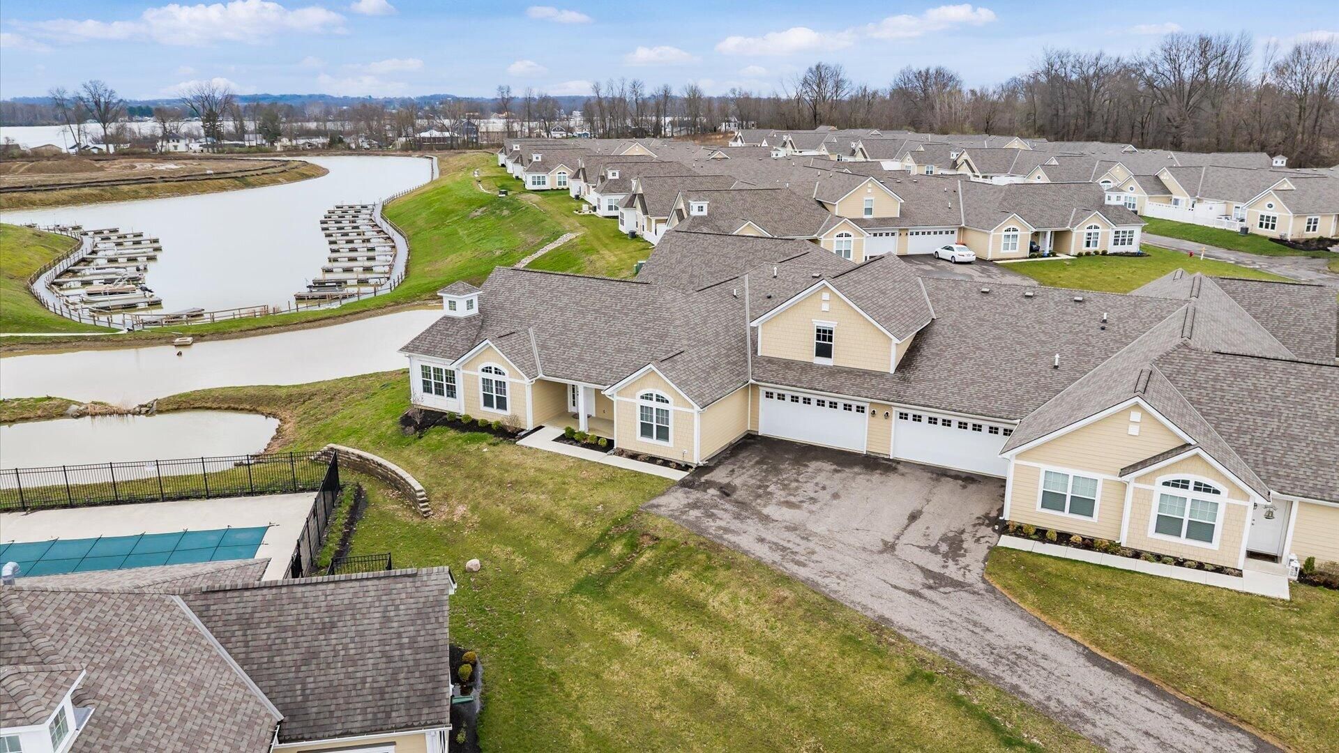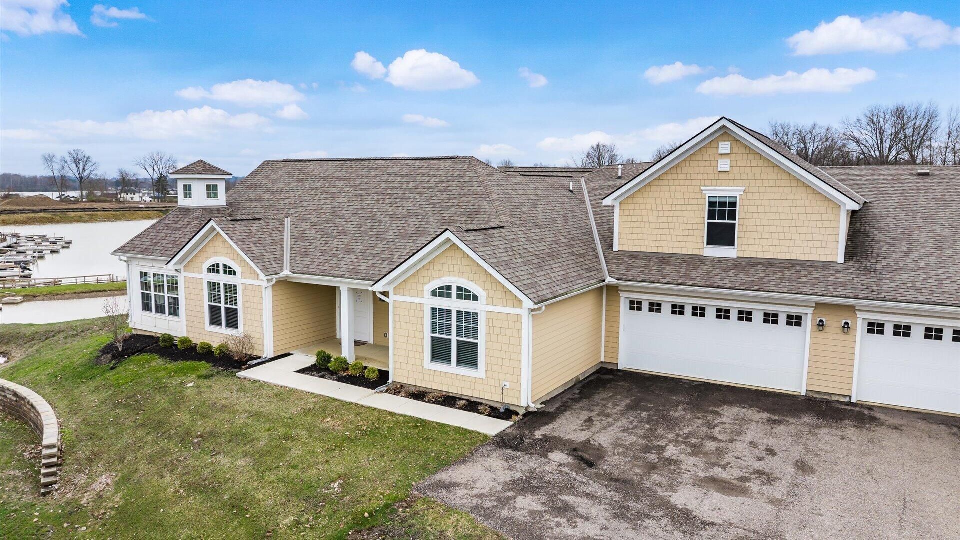 Live where every day feels like a getaway at Buckeye Lake This condo is ideal for full-time living or the perfect weekend retreat. Built in 2021 as a former model home, this thoughtfully designed residence offers 2,643 square feet, 3 bedrooms, and 3 full baths, with a flexible layout that fits a variety of lifestyles. The main level features two bedrooms and two full baths, including a spacious primary suite designed for comfort and ease. Upstairs, a private third bedroom with its own full bath and walk-in closet creates the perfect guest retreat or bonus living space. A main-floor den offers additional flexibility and could easily serve as a fourth bedroom, office, or cozy sitting room. Vaulted ceilings and an open-concept design fill the home with natural light, seamlessly connecting the living, dining, and kitchen areas. The kitchen is both stylish and functional, featuring stainless steel appliances, granite countertops, a tile backsplash, and an oversized island ideal for gathering and entertaining. A bright four-season sunroom extends your living space year-round. Relax by the gas fireplace or step outside to your private outdoor living area with peaceful water views. The oversized 2.5-car garage provides ample space for vehicles, golf carts, bikes, and all your lake-day essentials. Located just steps from the clubhouse and pool, this home also includes direct access to a dedicated boat slip, making lake days effortless. Enjoy low-maintenance living with no exterior upkeep, giving you more time to be on the water. Community amenities elevate the lifestyle even further, featuring a grand clubhouse, fully equipped fitness center, heated inground pool, and a beautiful 5 acre harbor setting. Set on the north side of the lake with convenient access to Routes 70 and 79, this friendly, welcoming community offers the ease of condo living with the feel of a single-family home, where every day feels like a vacation.