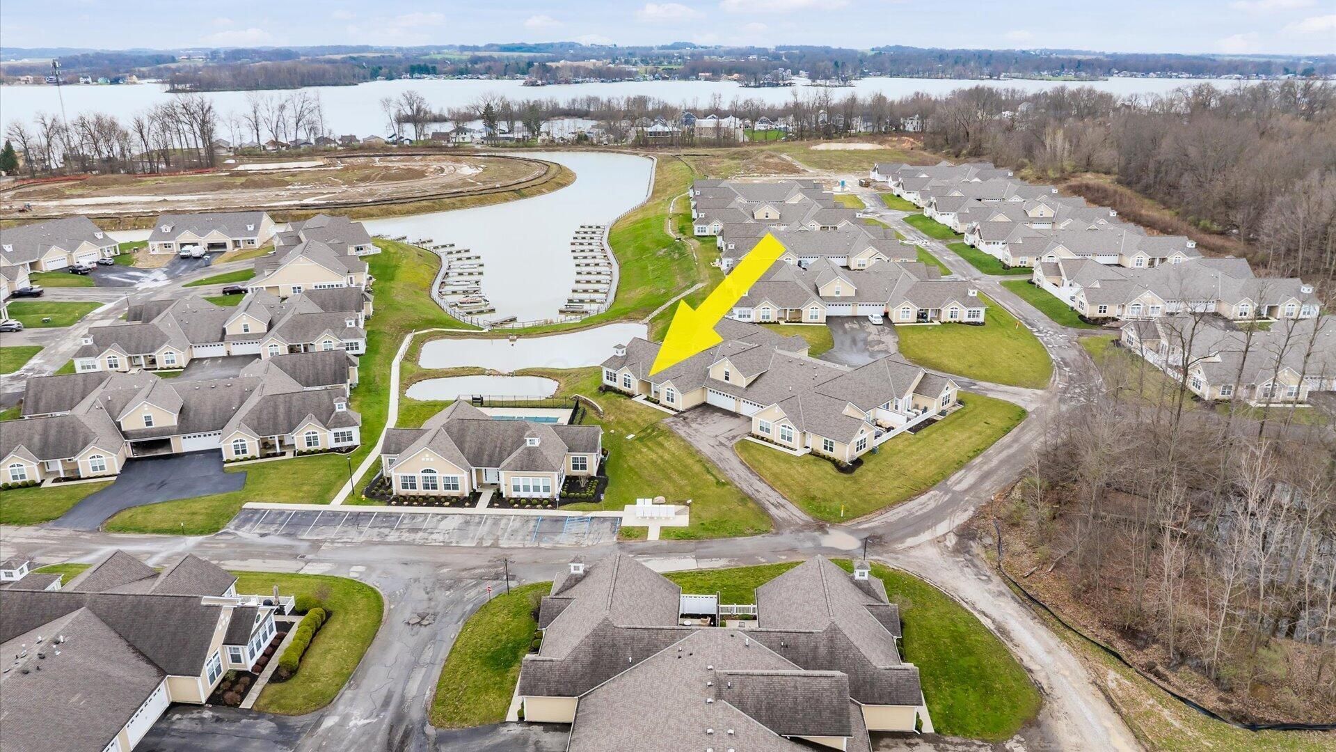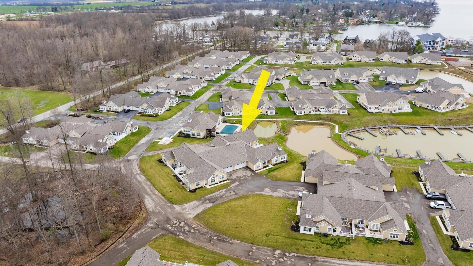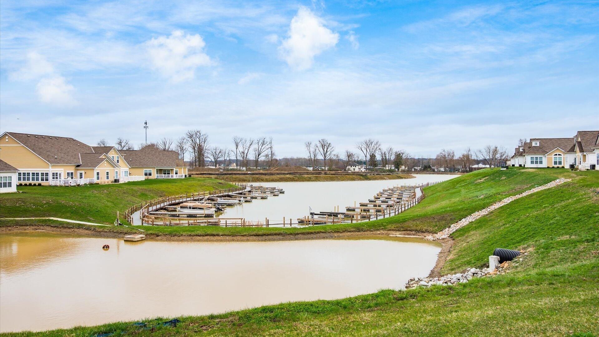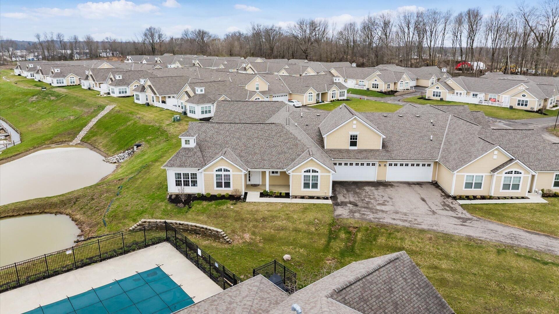 Live where every day feels like a getaway at Buckeye Lake This condo is ideal for full-time living or the perfect weekend retreat. Built in 2021 as a former model home, this thoughtfully designed residence offers 2,643 square feet, 3 bedrooms, and 3 full baths, with a flexible layout that fits a variety of lifestyles. The main level features two bedrooms and two full baths, including a spacious primary suite designed for comfort and ease. Upstairs, a private third bedroom with its own full bath and walk-in closet creates the perfect guest retreat or bonus living space. A main-floor den offers additional flexibility and could easily serve as a fourth bedroom, office, or cozy sitting room. Vaulted ceilings and an open-concept design fill the home with natural light, seamlessly connecting the living, dining, and kitchen areas. The kitchen is both stylish and functional, featuring stainless steel appliances, granite countertops, a tile backsplash, and an oversized island ideal for gathering and entertaining. A bright four-season sunroom extends your living space year-round. Relax by the gas fireplace or step outside to your private outdoor living area with peaceful water views. The oversized 2.5-car garage provides ample space for vehicles, golf carts, bikes, and all your lake-day essentials. Located just steps from the clubhouse and pool, this home also includes direct access to a dedicated boat slip, making lake days effortless. Enjoy low-maintenance living with no exterior upkeep, giving you more time to be on the water. Community amenities elevate the lifestyle even further, featuring a grand clubhouse, fully equipped fitness center, heated inground pool, and a beautiful 5 acre harbor setting. Set on the north side of the lake with convenient access to Routes 70 and 79, this friendly, welcoming community offers the ease of condo living with the feel of a single-family home, where every day feels like a vacation.