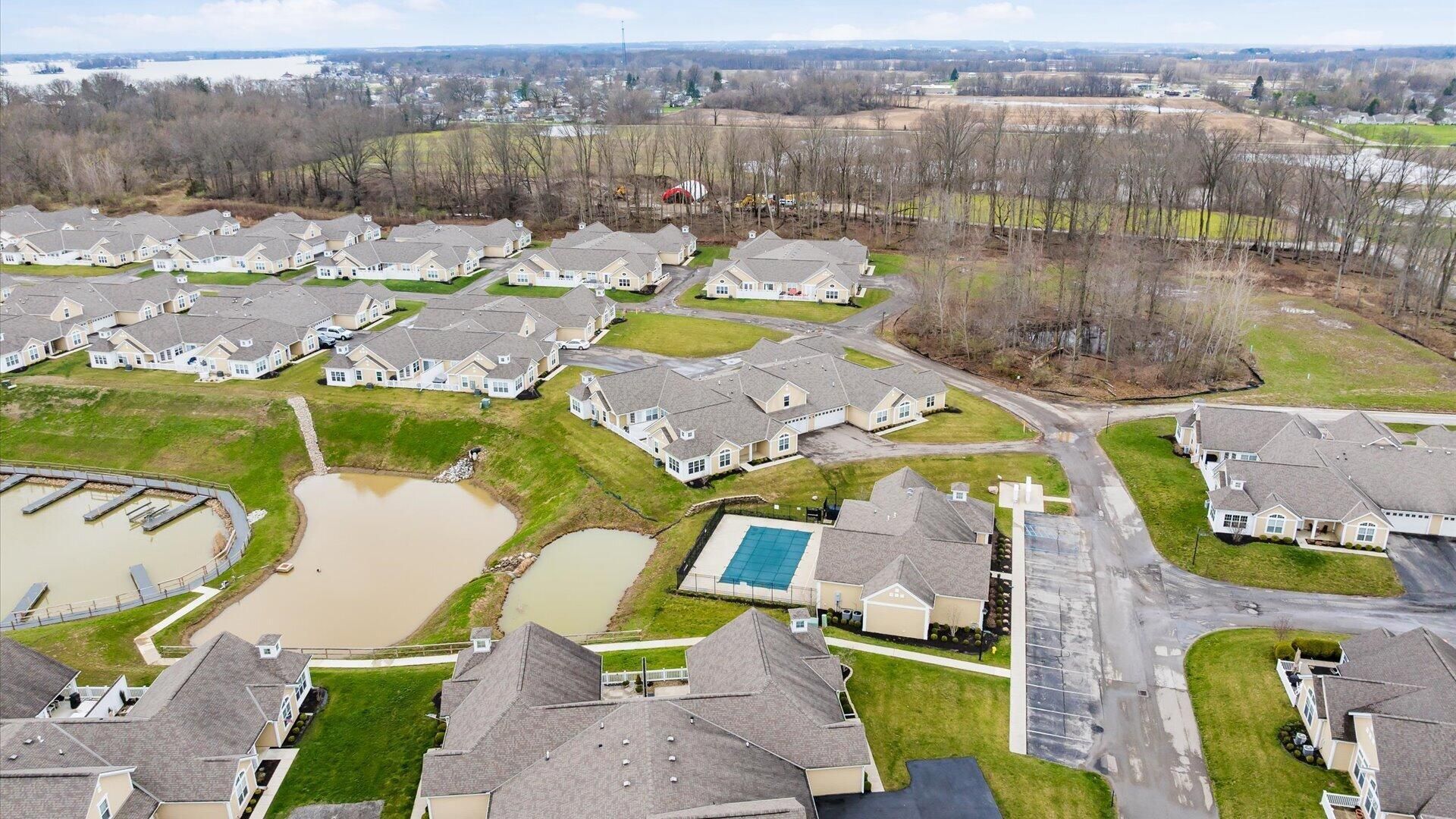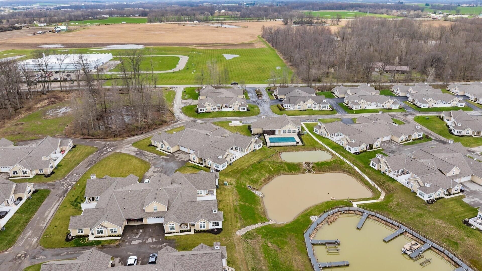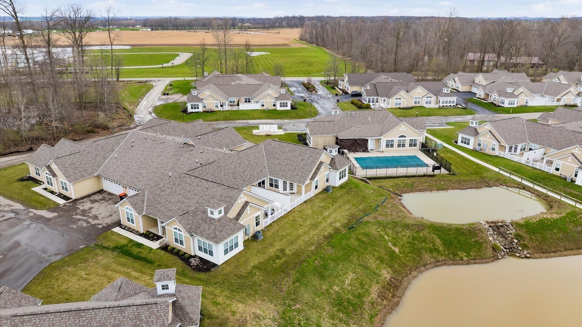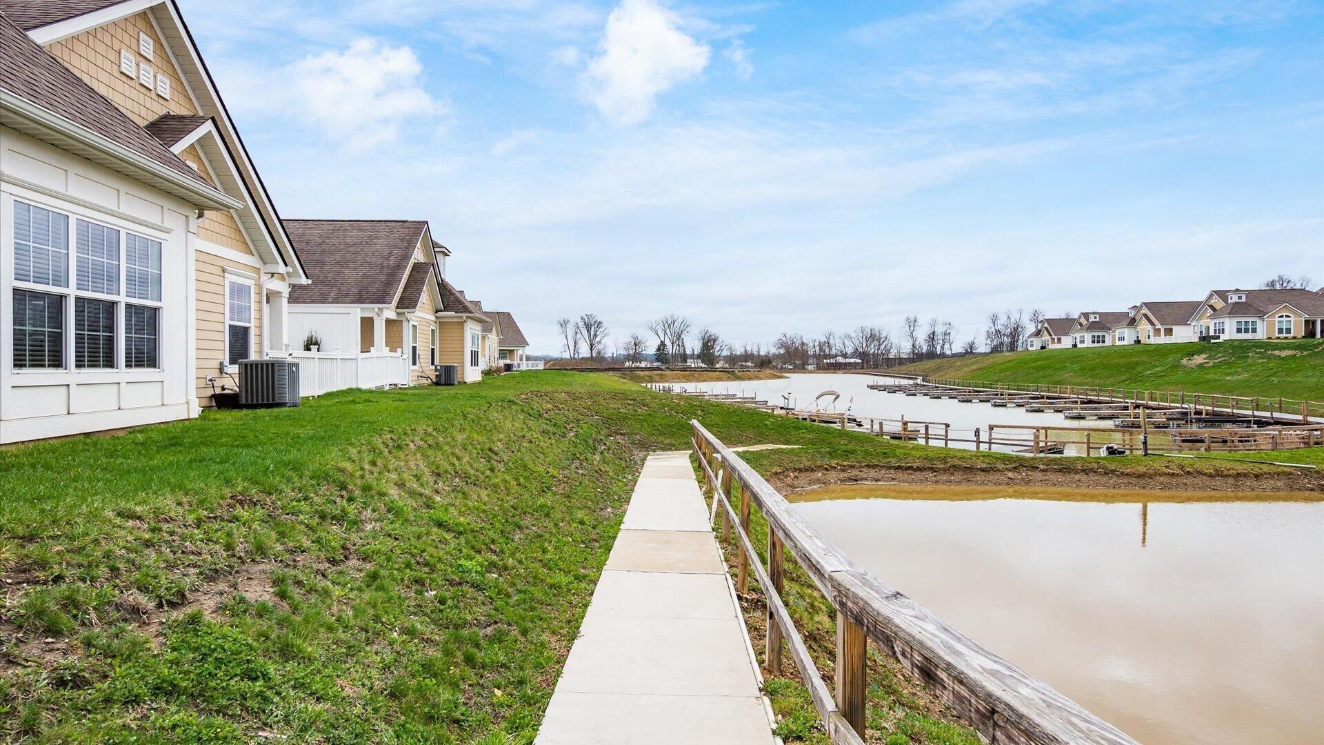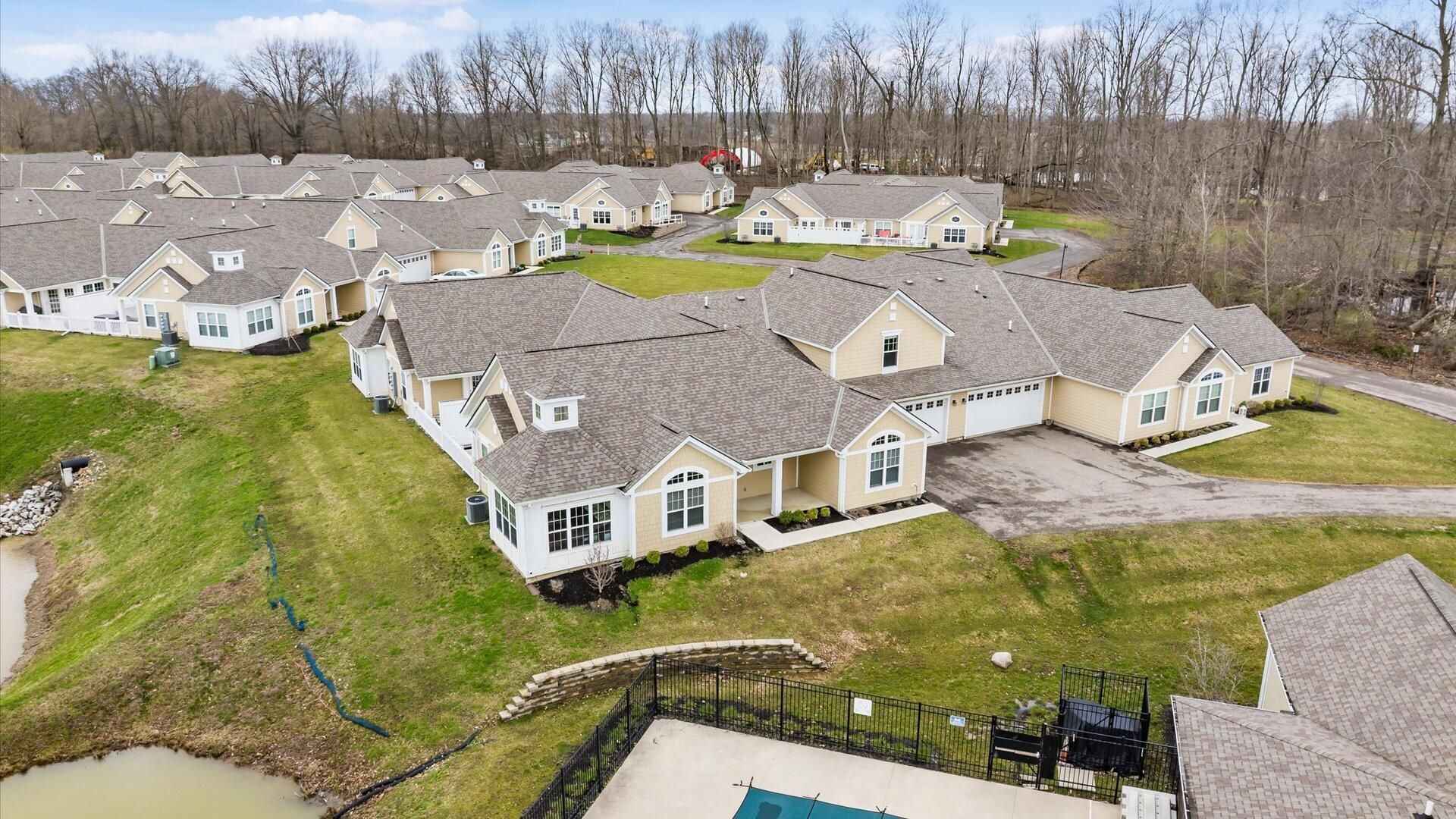 Live where every day feels like a getaway at Buckeye Lake This condo is ideal for full-time living or the perfect weekend retreat. Built in 2021 as a former model home, this thoughtfully designed residence offers 2,643 square feet, 3 bedrooms, and 3 full baths, with a flexible layout that fits a variety of lifestyles. The main level features two bedrooms and two full baths, including a spacious primary suite designed for comfort and ease. Upstairs, a private third bedroom with its own full bath and walk-in closet creates the perfect guest retreat or bonus living space. A main-floor den offers additional flexibility and could easily serve as a fourth bedroom, office, or cozy sitting room. Vaulted ceilings and an open-concept design fill the home with natural light, seamlessly connecting the living, dining, and kitchen areas. The kitchen is both stylish and functional, featuring stainless steel appliances, granite countertops, a tile backsplash, and an oversized island ideal for gathering and entertaining. A bright four-season sunroom extends your living space year-round. Relax by the gas fireplace or step outside to your private outdoor living area with peaceful water views. The oversized 2.5-car garage provides ample space for vehicles, golf carts, bikes, and all your lake-day essentials. Located just steps from the clubhouse and pool, this home also includes direct access to a dedicated boat slip, making lake days effortless. Enjoy low-maintenance living with no exterior upkeep, giving you more time to be on the water. Community amenities elevate the lifestyle even further, featuring a grand clubhouse, fully equipped fitness center, heated inground pool, and a beautiful 5 acre harbor setting. Set on the north side of the lake with convenient access to Routes 70 and 79, this friendly, welcoming community offers the ease of condo living with the feel of a single-family home, where every day feels like a vacation.