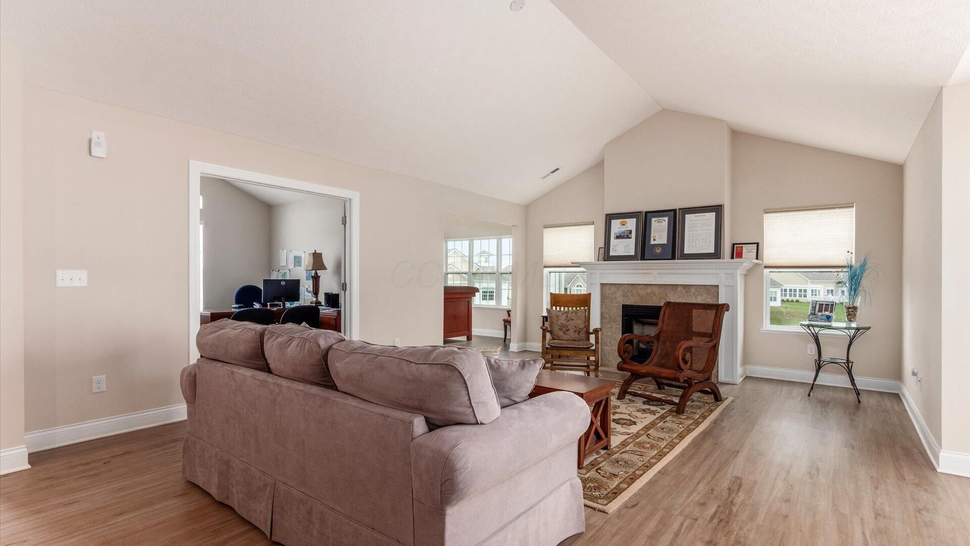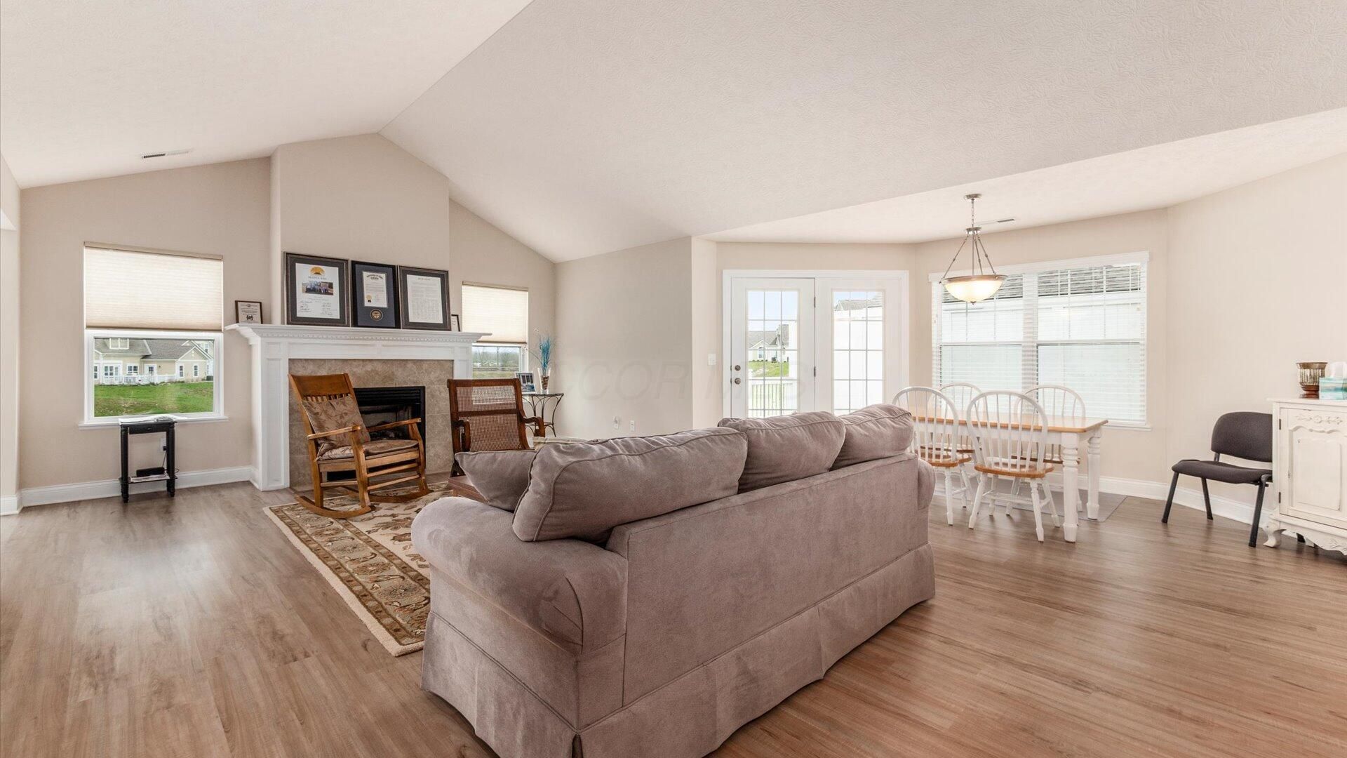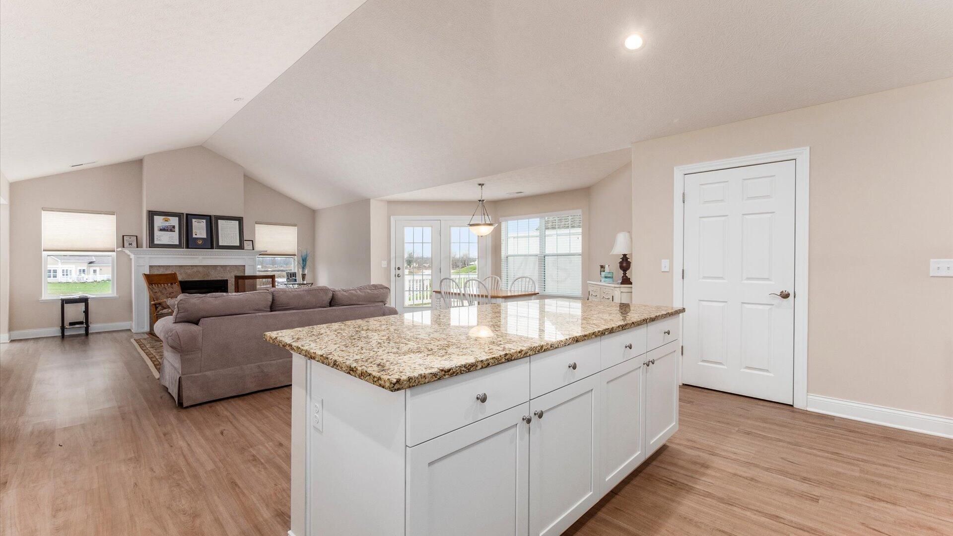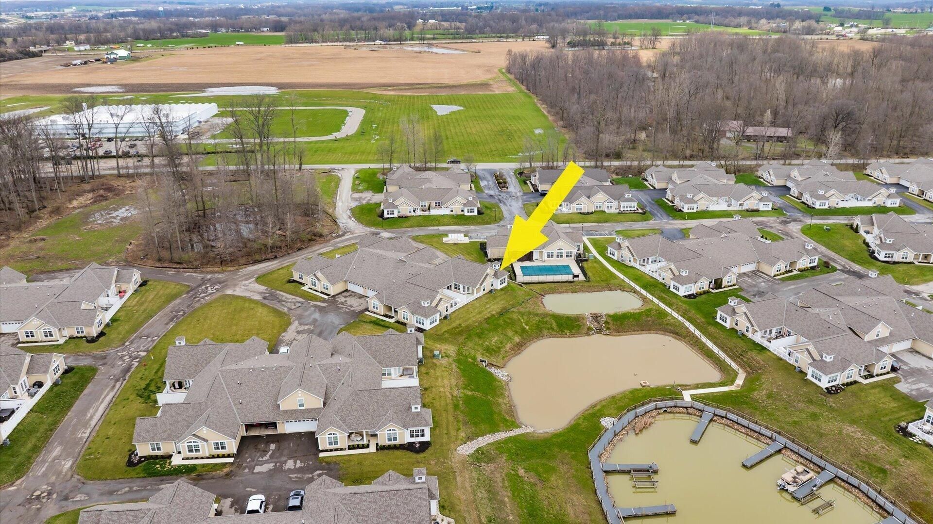 Live where every day feels like a getaway at Buckeye Lake This condo is ideal for full-time living or the perfect weekend retreat. Built in 2021 as a former model home, this thoughtfully designed residence offers 2,643 square feet, 3 bedrooms, and 3 full baths, with a flexible layout that fits a variety of lifestyles. The main level features two bedrooms and two full baths, including a spacious primary suite designed for comfort and ease. Upstairs, a private third bedroom with its own full bath and walk-in closet creates the perfect guest retreat or bonus living space. A main-floor den offers additional flexibility and could easily serve as a fourth bedroom, office, or cozy sitting room. Vaulted ceilings and an open-concept design fill the home with natural light, seamlessly connecting the living, dining, and kitchen areas. The kitchen is both stylish and functional, featuring stainless steel appliances, granite countertops, a tile backsplash, and an oversized island ideal for gathering and entertaining. A bright four-season sunroom extends your living space year-round. Relax by the gas fireplace or step outside to your private outdoor living area with peaceful water views. The oversized 2.5-car garage provides ample space for vehicles, golf carts, bikes, and all your lake-day essentials. Located just steps from the clubhouse and pool, this home also includes direct access to a dedicated boat slip, making lake days effortless. Enjoy low-maintenance living with no exterior upkeep, giving you more time to be on the water. Community amenities elevate the lifestyle even further, featuring a grand clubhouse, fully equipped fitness center, heated inground pool, and a beautiful 5 acre harbor setting. Set on the north side of the lake with convenient access to Routes 70 and 79, this friendly, welcoming community offers the ease of condo living with the feel of a single-family home, where every day feels like a vacation.