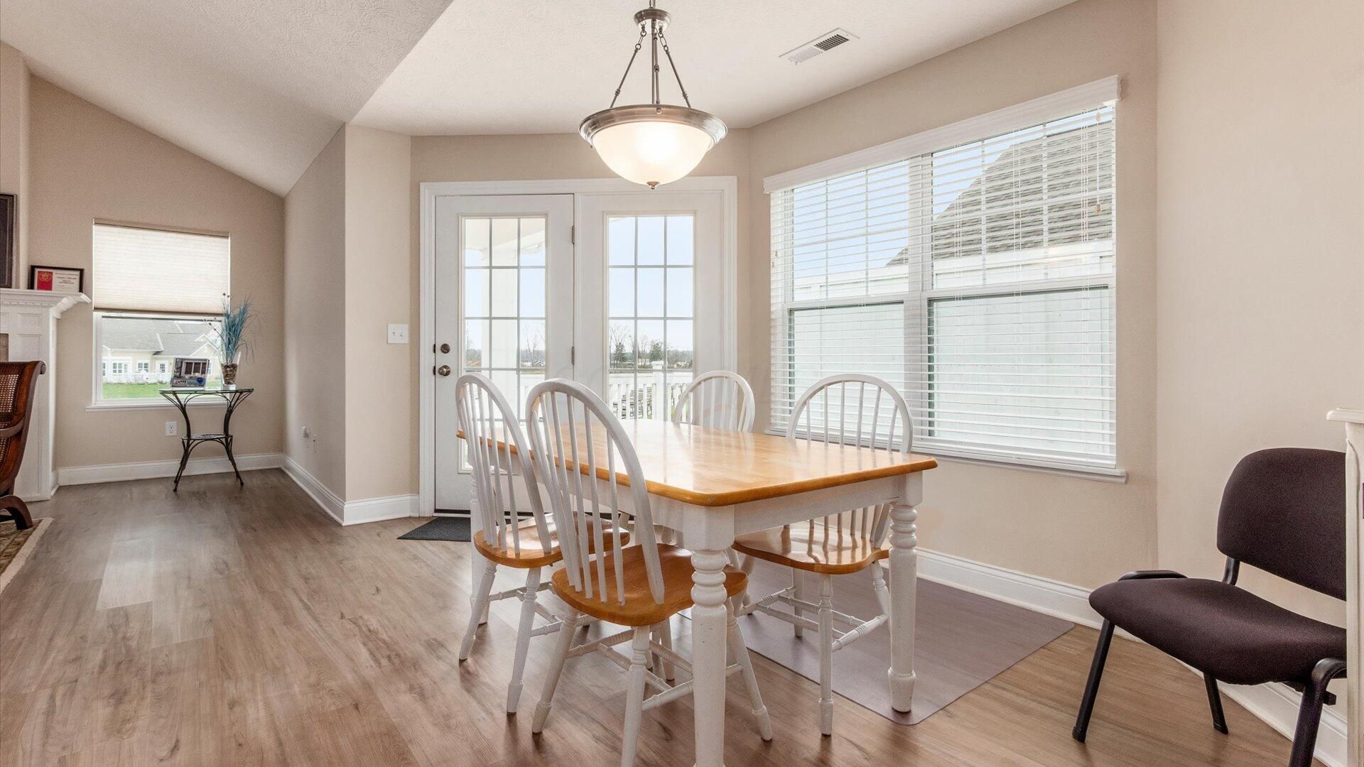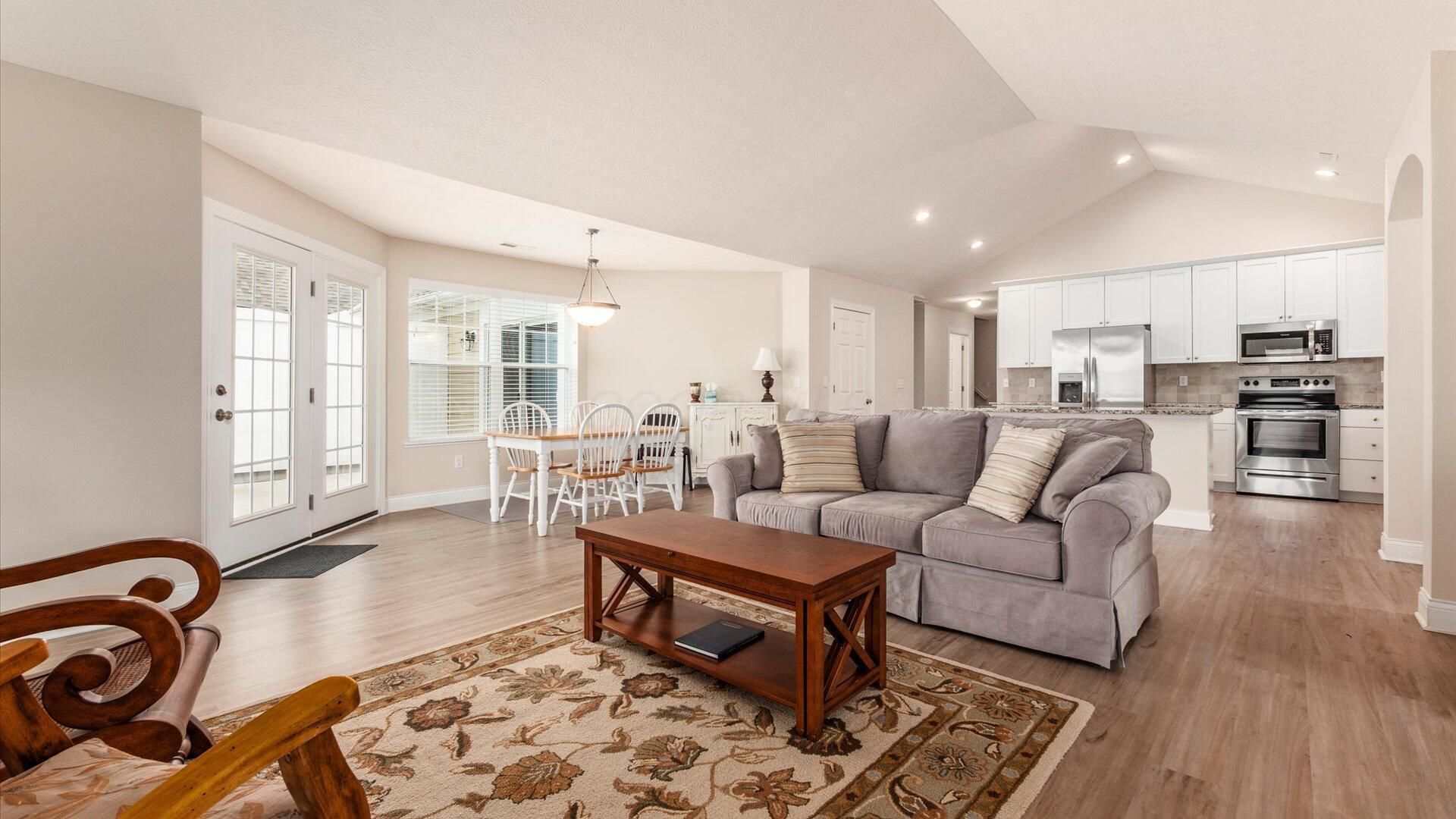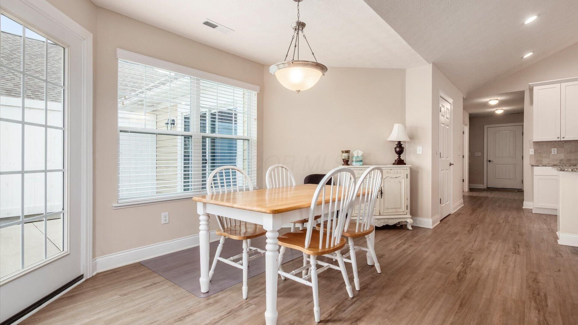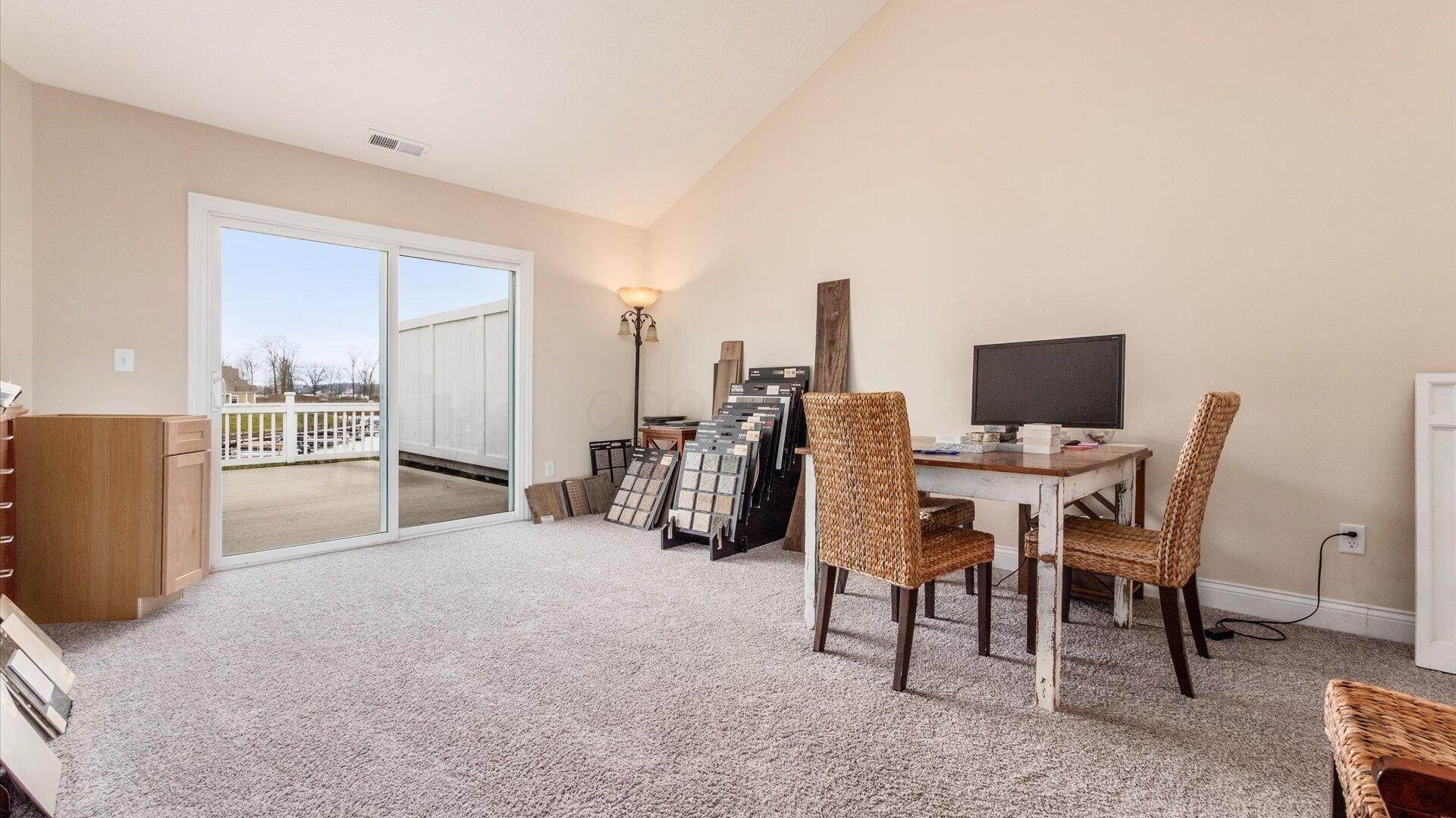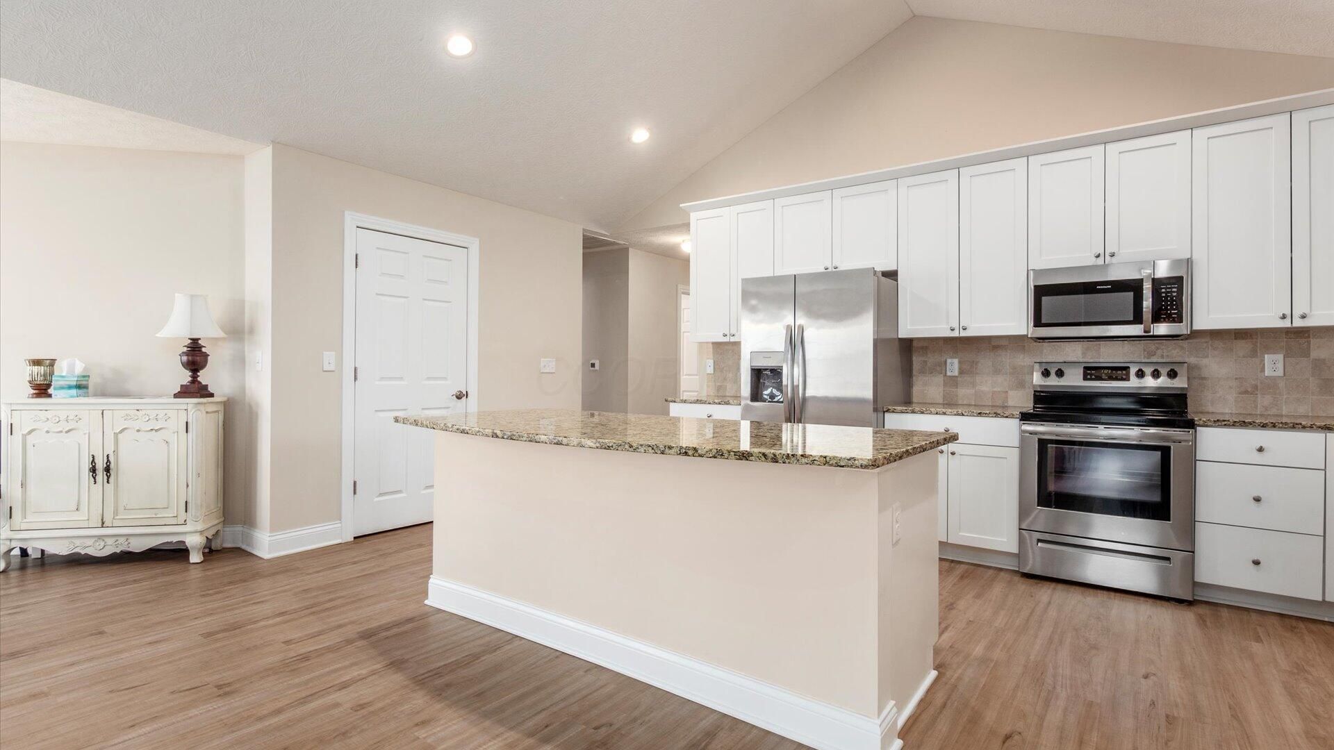 Live where every day feels like a getaway at Buckeye Lake This condo is ideal for full-time living or the perfect weekend retreat. Built in 2021 as a former model home, this thoughtfully designed residence offers 2,643 square feet, 3 bedrooms, and 3 full baths, with a flexible layout that fits a variety of lifestyles. The main level features two bedrooms and two full baths, including a spacious primary suite designed for comfort and ease. Upstairs, a private third bedroom with its own full bath and walk-in closet creates the perfect guest retreat or bonus living space. A main-floor den offers additional flexibility and could easily serve as a fourth bedroom, office, or cozy sitting room. Vaulted ceilings and an open-concept design fill the home with natural light, seamlessly connecting the living, dining, and kitchen areas. The kitchen is both stylish and functional, featuring stainless steel appliances, granite countertops, a tile backsplash, and an oversized island ideal for gathering and entertaining. A bright four-season sunroom extends your living space year-round. Relax by the gas fireplace or step outside to your private outdoor living area with peaceful water views. The oversized 2.5-car garage provides ample space for vehicles, golf carts, bikes, and all your lake-day essentials. Located just steps from the clubhouse and pool, this home also includes direct access to a dedicated boat slip, making lake days effortless. Enjoy low-maintenance living with no exterior upkeep, giving you more time to be on the water. Community amenities elevate the lifestyle even further, featuring a grand clubhouse, fully equipped fitness center, heated inground pool, and a beautiful 5 acre harbor setting. Set on the north side of the lake with convenient access to Routes 70 and 79, this friendly, welcoming community offers the ease of condo living with the feel of a single-family home, where every day feels like a vacation.