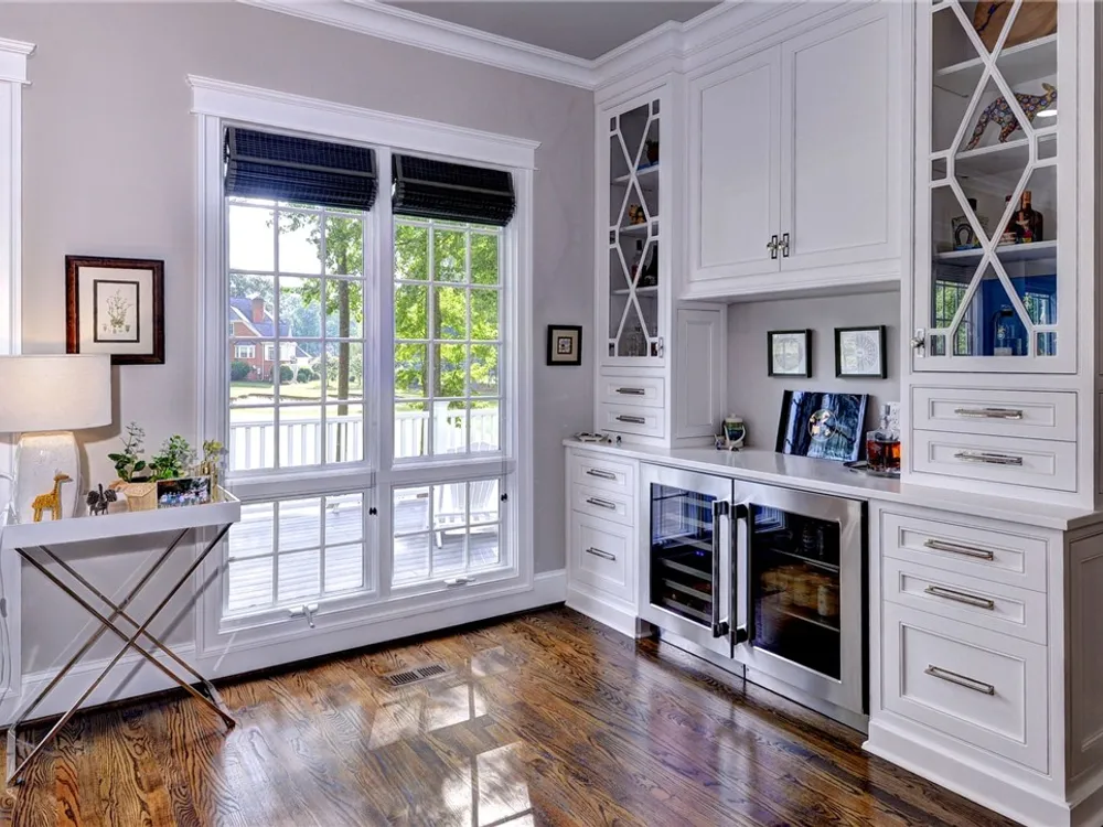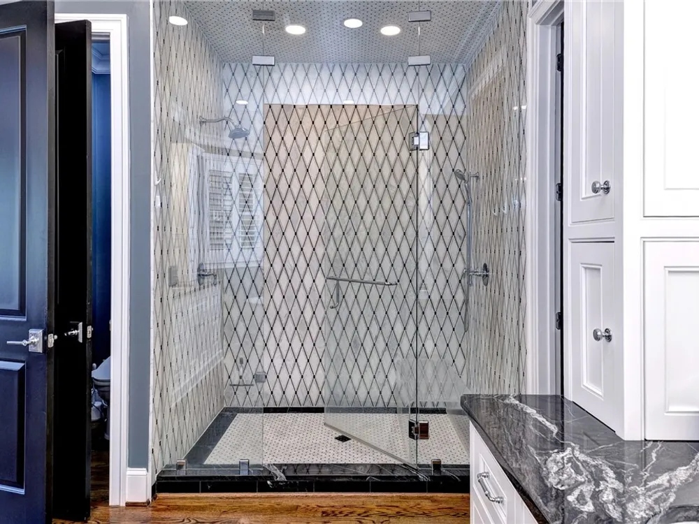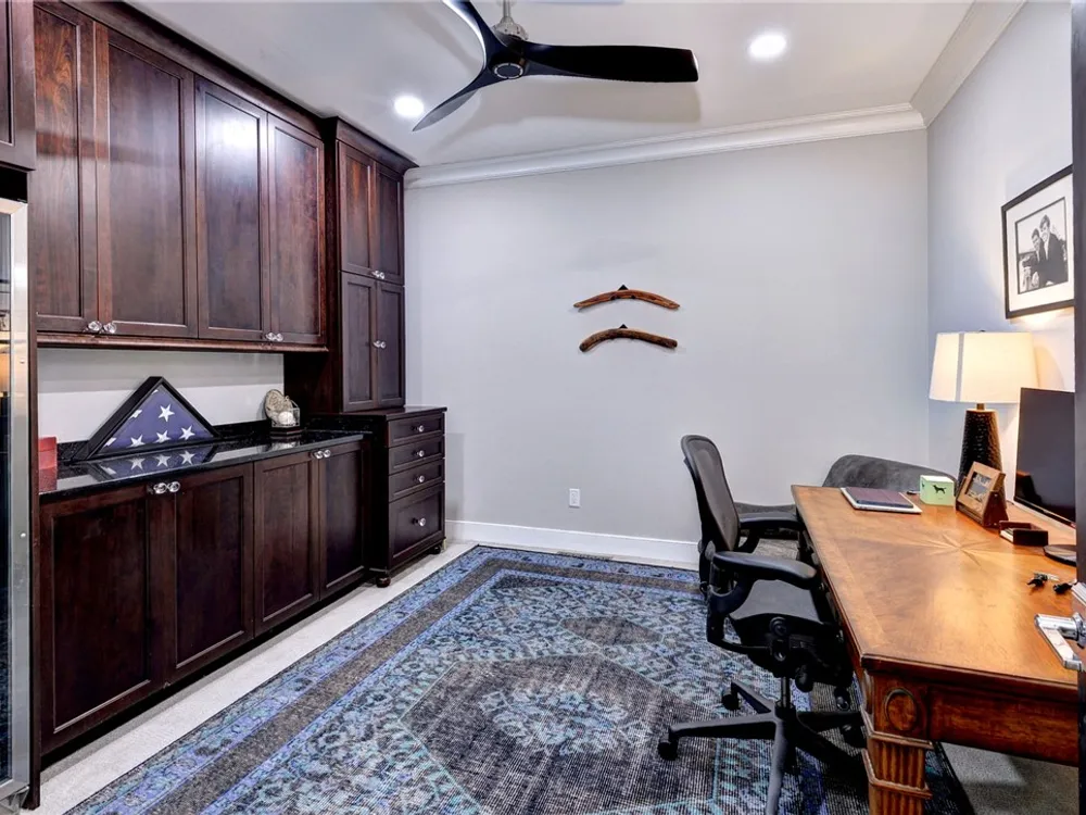 - Attic Access, Wet Bar, Bookcases, Built-in Features, Butler Pantry, Tray Ceiling(s), Ceiling Fan(s), Dining Area, Double Vanity, Eat-in Kitchen, Granite Counters, Garden Tub/Roman Tub, High Ceilings, In-Law Floorplan, Kitchen Island, Pantry, Pull Down Attic Stairs, Recessed Lighting, Solid Surface Counters, Steam Shower, Walk-In Closet(s)