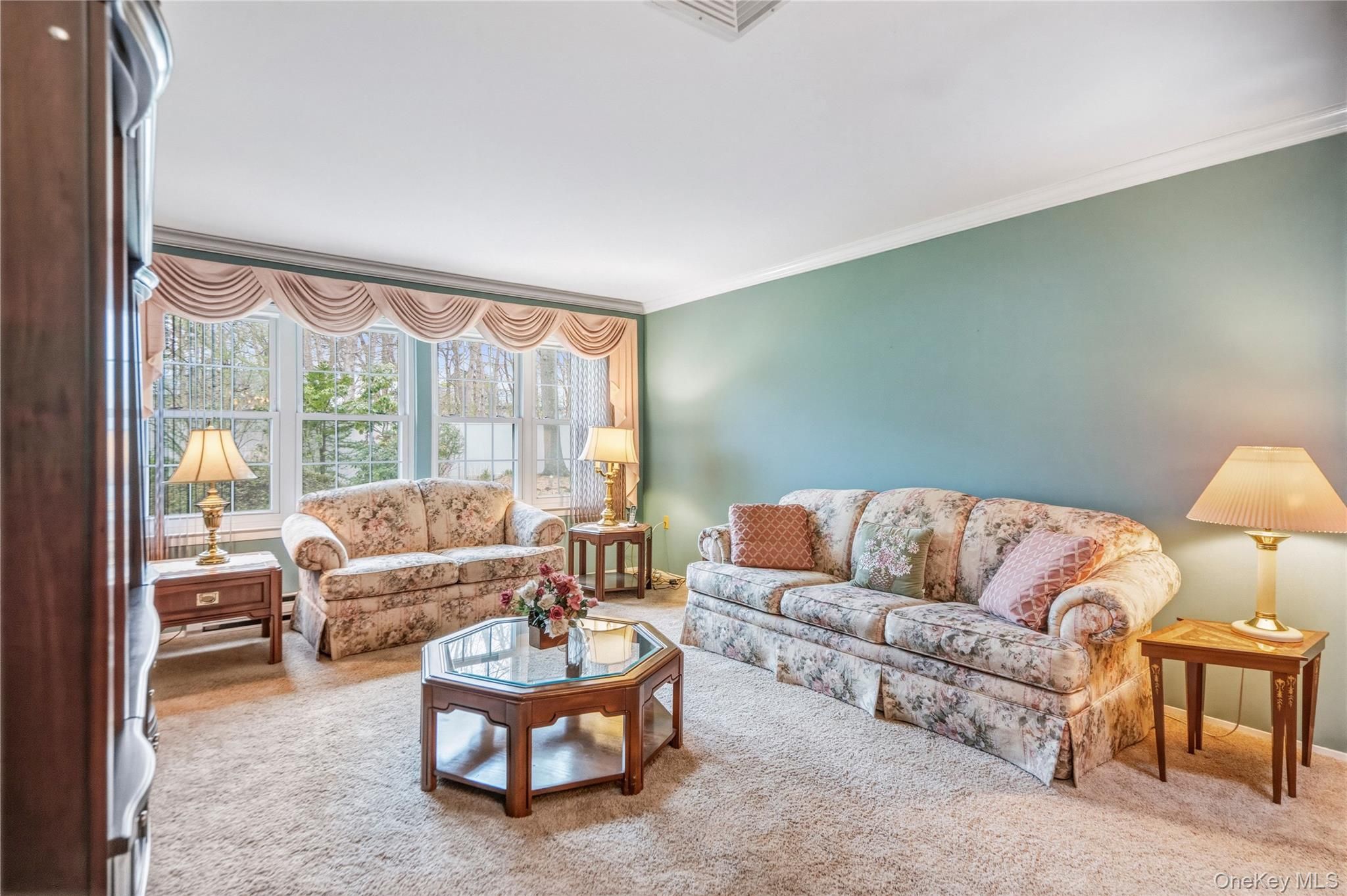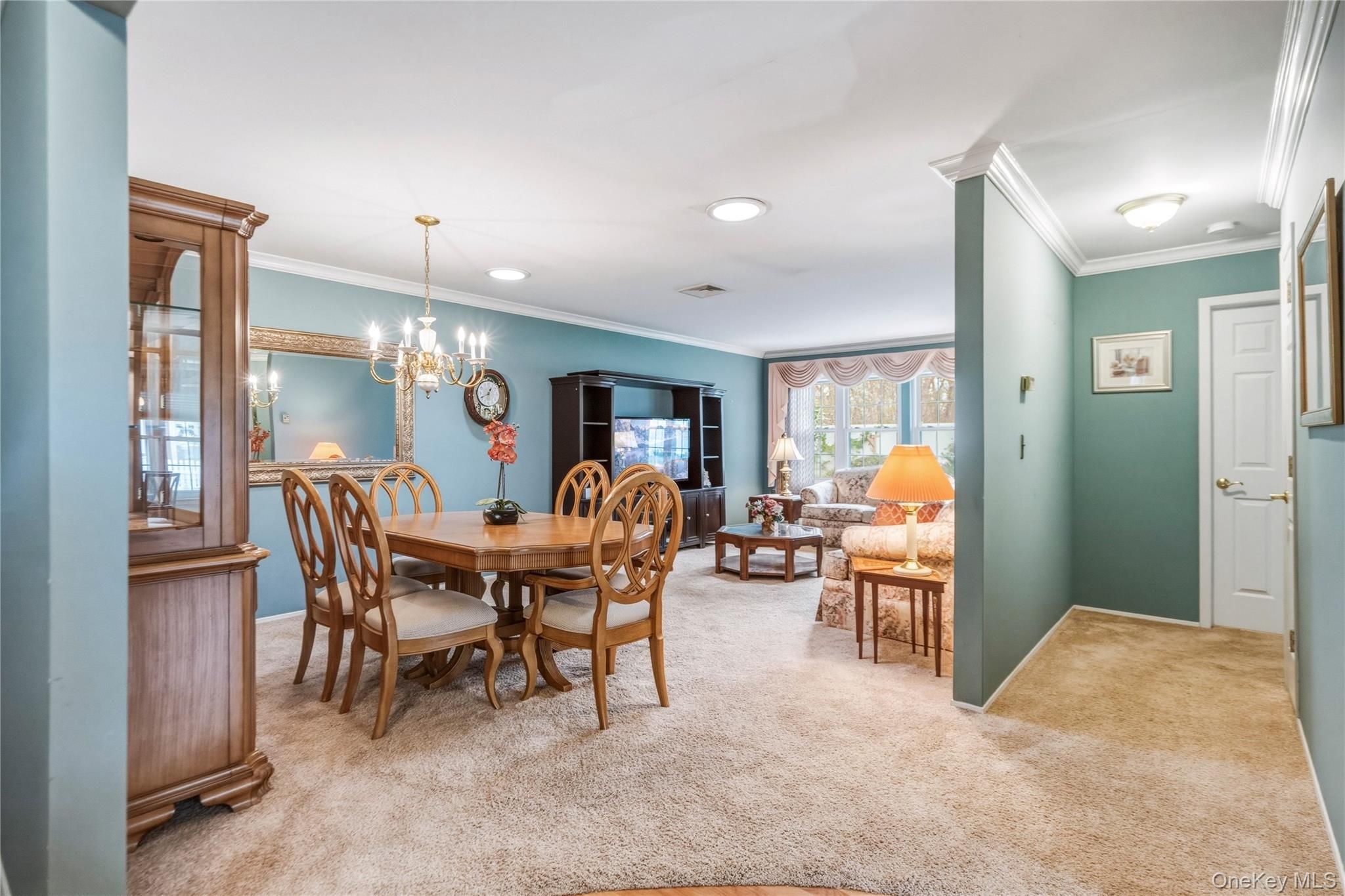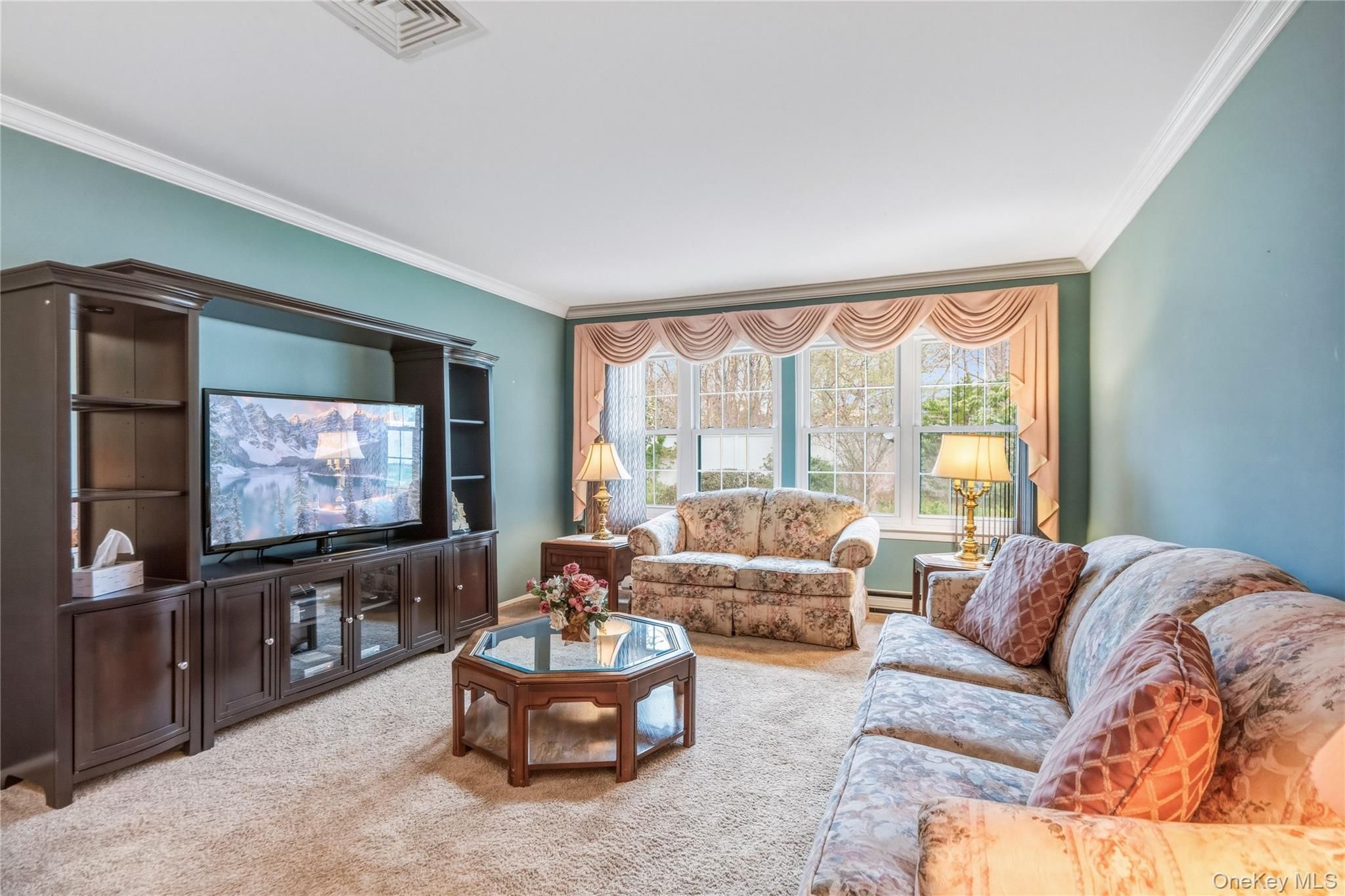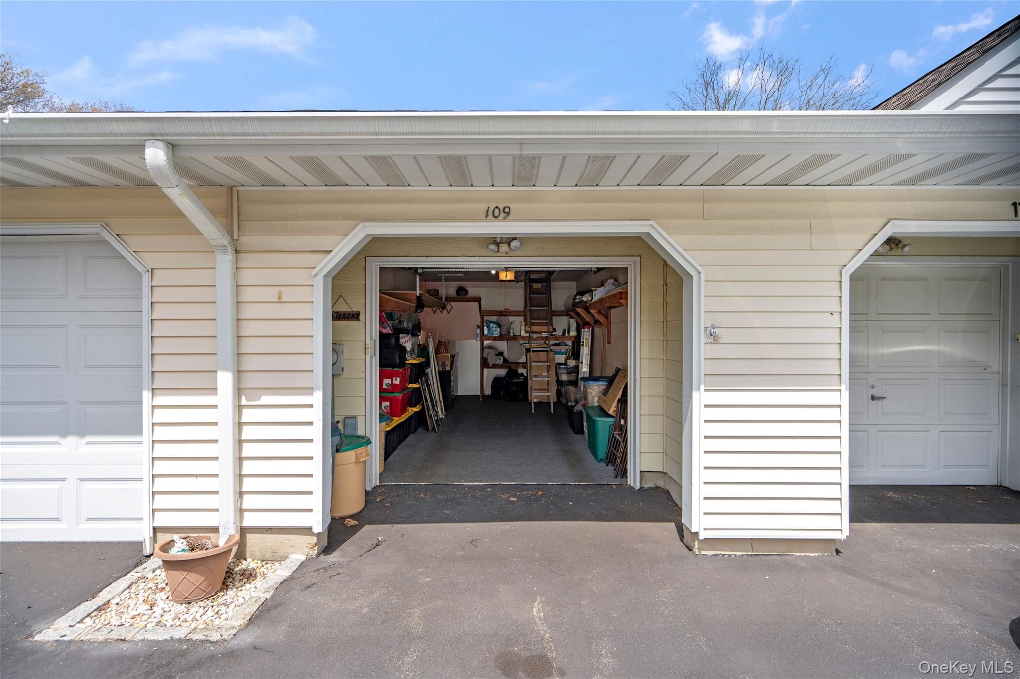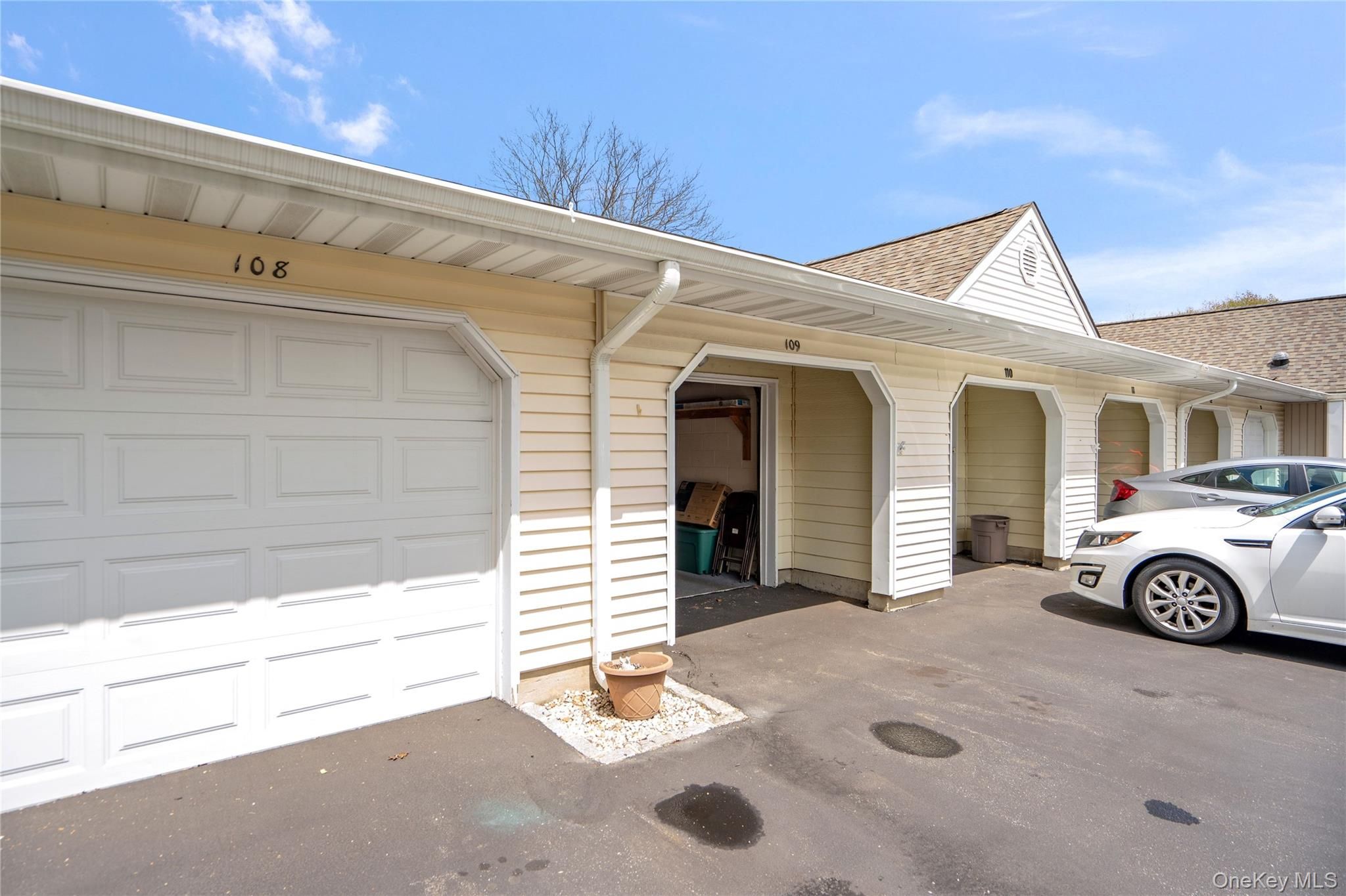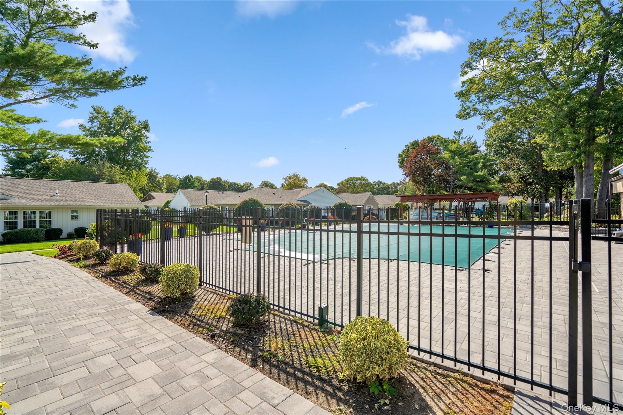 Welcome to 109 Revere Drive, a 2-Bed, 2 Bath, ranch style home in Sayville's desirable SUNRISE VILLAGE...a 55+, Gated Community! This end unit, Dartmouth model, offering approx 1,273 sqft of living space, provides an updated kitchen, dining room, living room, two bedrooms, two full bathrooms, a large laundry/storage room and a 1-car garage with an electric garage door opener and pull down stairs to the attic for additional storage. A paver stone patio with a vinyl fence and gate, welcomes you home to this great unit. The patio is large enough for outdoor dining, entertaining or just relaxing in the outdoors. Enter in off the patio to a long entry foyer with vinyl, wood laminate flooring and a coat closet. Off the foyer is the dining room and living room, both carpeted and featuring crown moldings, two solar tubes and an oversized window for lots of natural light. The laminate flooring & crown moldings continue into the Eat-In Kitchen, which has updated cabinetry and granite counter tops with a tiled backsplash. The kitchen's dining area is cornered between the front & side wall windows for great natural light. Down the carpeted hall from the kitchen is a linen closet and a full bathroom with an updated granite topped vanity and glass sliding doors to the tub/shower. The second bedroom/home office provides a carpeted floor, crown moldings, a double closet, a built-in desk & storage center and a pull down Murphy Bed to provide maximum floor space when the bed is not needed. On the opposite side of the home and off the end of the entry foyer, is the hallway to the primary bedroom and ensuite. This bedroom, which is also carpeted and adorned by the crown moldings, is large enough to accommodate a king sized bed and provides a linen closet, walk-in closet and it's own full bath with a walk-in stalled shower and solar tube for ample lighting in the daytime. In the hallway beyond the primary bedroom is the access to the large laundry room, which is complimented with upper and lower cabinetry with a long counter top directly across from the washer & dryer...perfect for folding & sorting clothes and for additional storage. Off the laundry room is a door to the hallway leading to the 1-car garage with the electric garage door opener and pull down attic stairs. Beyond the garage door is a covered extension for the garbage & recycling pails, and the outdoor parking space for this unit. This great home also provides the comfort of Central Air Conditioning, an Electric Hot Water Heater and eight independent electric thermostats so you can comfortably & economically heat each room as desired. Sunrise Village is a Planned Unit Development (PUD) managed by Fairfield Properties, and there is a one-time $1,000 transfer fee paid to Fairfield by the new owner.