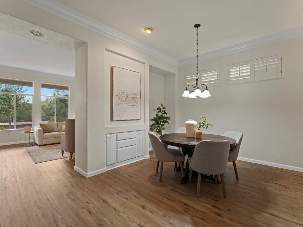 Beautiful Sierra Model in Sun City Roseville! Welcome to this stunning 3-bedroom, 2-bath home offering 2,083 sq. ft. of comfortable living space, perfectly situated on a Cul-de-sac lot that backs to serene open space with scenic views. Step inside to find brand new luxury vinyl plank flooring throughout, fresh interior paint, crown molding, and elegant plantation shutters that enhance the home's bright and airy feel. The spacious floor plan includes a large great room, formal dining area, and a well-appointed kitchenperfect for entertaining or relaxing at home. Enjoy the peace of mind with no Mello Roos and the benefit of Roseville's low-cost utilities. Located in the vibrant 55+ Sun City Roseville community, this home offers access to top-notch amenities including a clubhouse, restaurant, 27-hole golf course, fitness center, tennis & pickleball courts, indoor & outdoor pools, spa, walking trails, and an abundance of social clubs and activities. Don't miss your chance to enjoy resort-style living in one of Roseville's most desirable active adult communities!