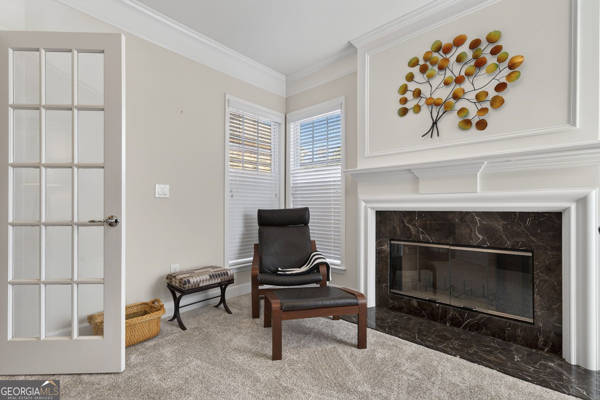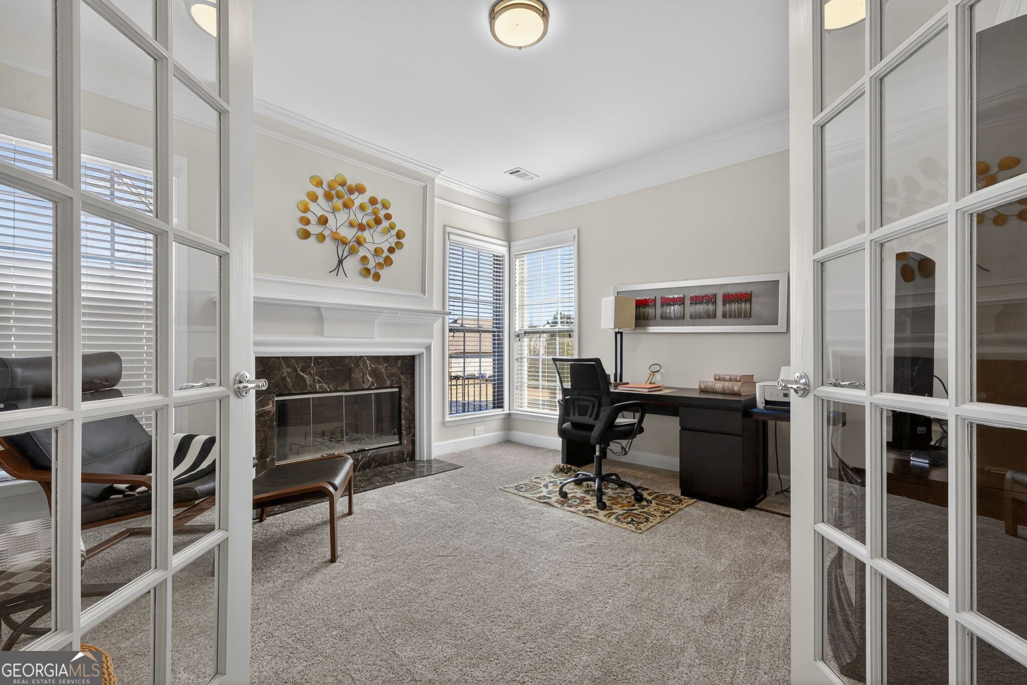 - Double Vanity, High Ceilings, Main Level Primary, Separate Shower, Soaking Tub, Split Bedrooms, Tile Bath, Walk-In Closet(s), Den, Entrance Foyer, Laundry Facility, Library, Home Office