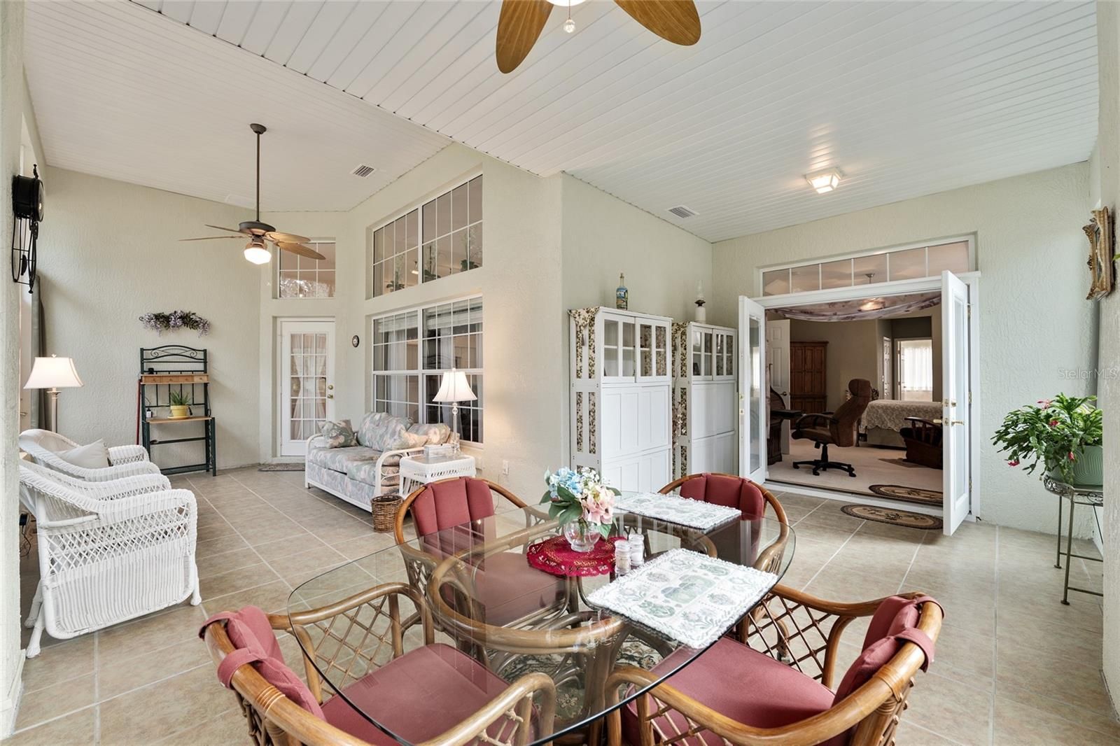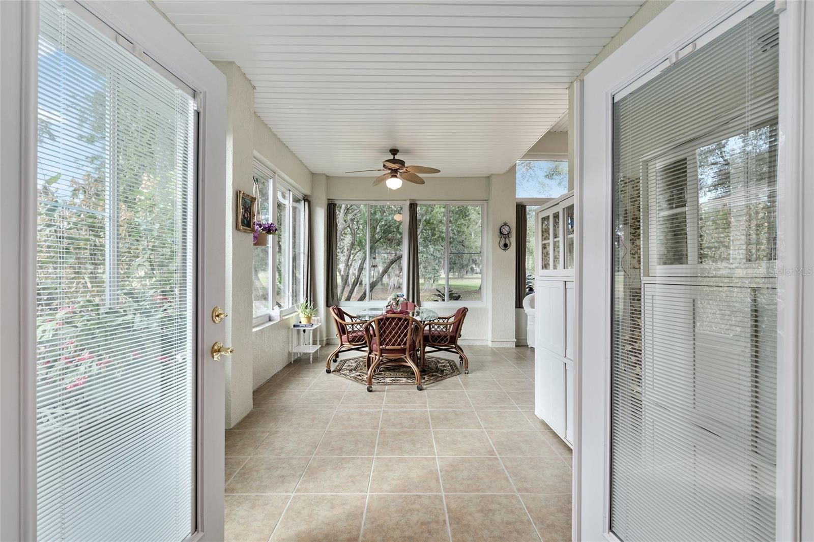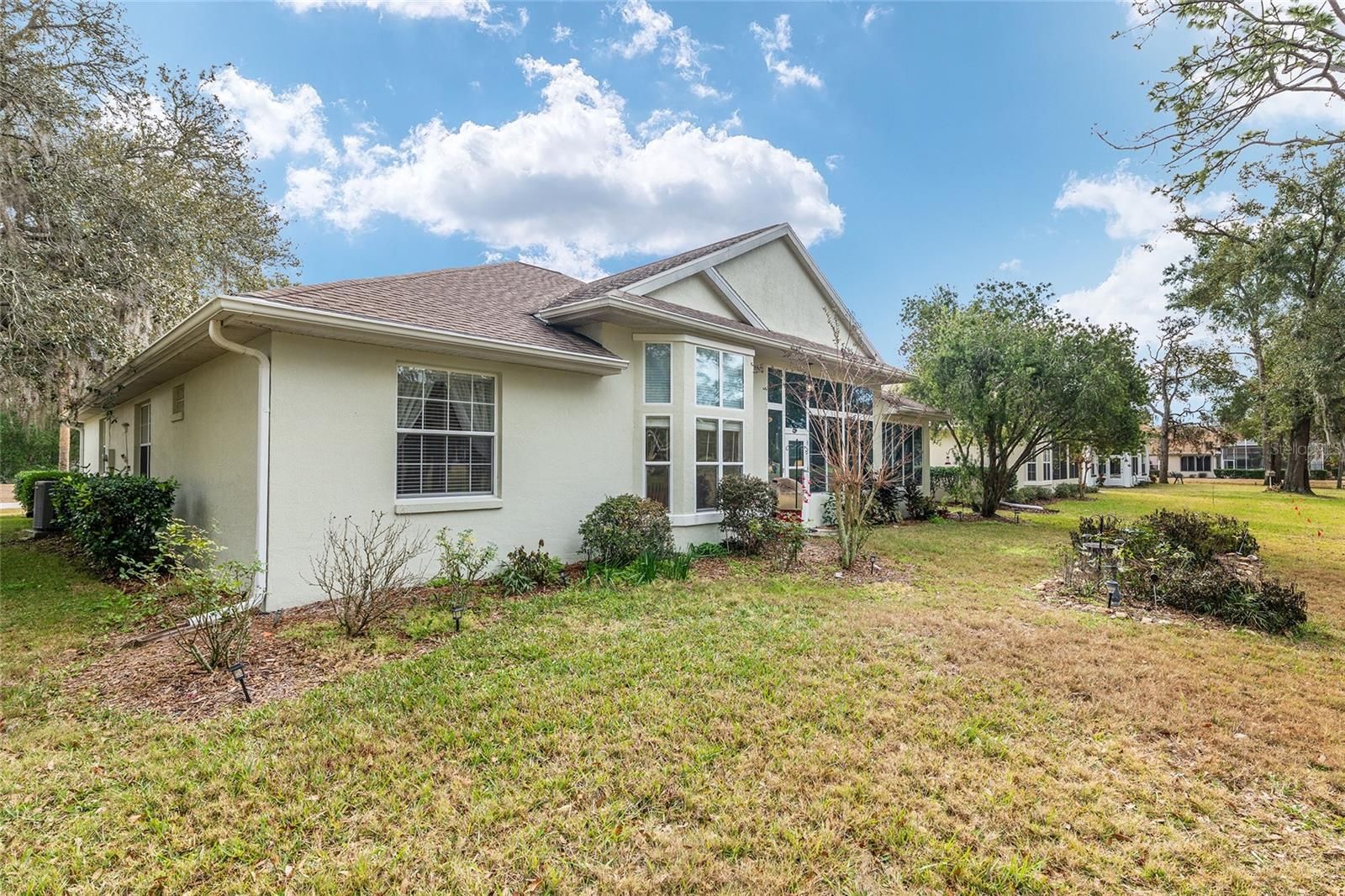 Golf-Front Living with Country Club Lifestyle in Oak Run! Welcome to this move-in ready home in the sought-after Eagles Point section of Oak Run, offering immediate occupancy and beautiful golf course views. Natural light pours in through numerous windows, creating a bright and inviting interior with volume ceilings, tray ceilings, and a desirable split-bedroom floor plan. The spacious living room opens seamlessly to the kitchen—ideal for entertaining and everyday living. The kitchen features solid-surface countertops, tile backsplash, brand-new stainless steel appliances, decorative built-in display cabinetry, a casual dining nook, breakfast bar, and a formal dining area for gatherings. The extended primary suite is a true retreat with a tray ceiling, two walk-in closets, a sitting/relaxation area, and French doors leading to the enclosed lanai. The primary bath offers dual sinks, a soaking tub, and a separate shower. On the opposite side of the home, you’ll find two comfortable guest bedrooms and a full bath—perfect for visitors or hobbies. Indoor laundry with sink for convenience. Relax year-round in the air-conditioned enclosed lanai while enjoying peaceful golf course views. Oak Run’s resort-style amenities include pickleball, tennis, aquatics, fitness, clubs, cards, shuffleboard, bocce ball, and countless social activities for residents to enjoy. A full list of upgrades and extras is available with the listing. Restaurants, medical care, shopping just minutes away