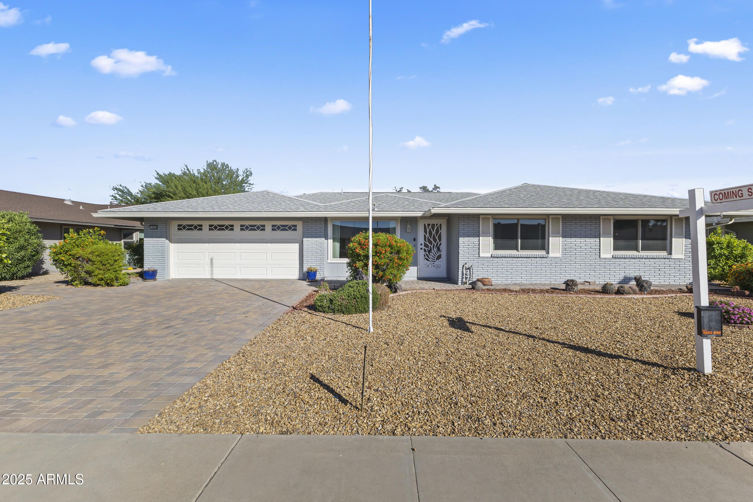 Pride in ownership! This 3 BD 2 BA Sun City home is move-in-ready! Brick pavers installed in the driveway, new dual-pane windows & new roof in 2019! New HVAC in 8/2012! Upon entering, you will find the updated kitchen (2009), equipped with SS appliances, stone-top island and large panty! With an open concept, the kitchen flows into the formal dining room and the expanded living room space. The primary bedroom is spacious, with plenty of closet space, and both bathrooms have been updated granite counter-tops (2009)! Primary bath has a private toilet room along with a step-in shower! The additional bedrooms make space for guests or for an office/ crafting space! Get the benefits of APS owned solar panels! This could be the one!