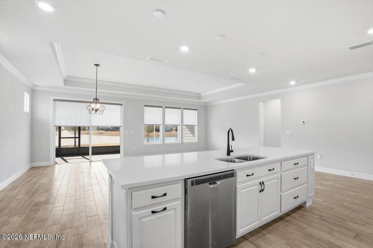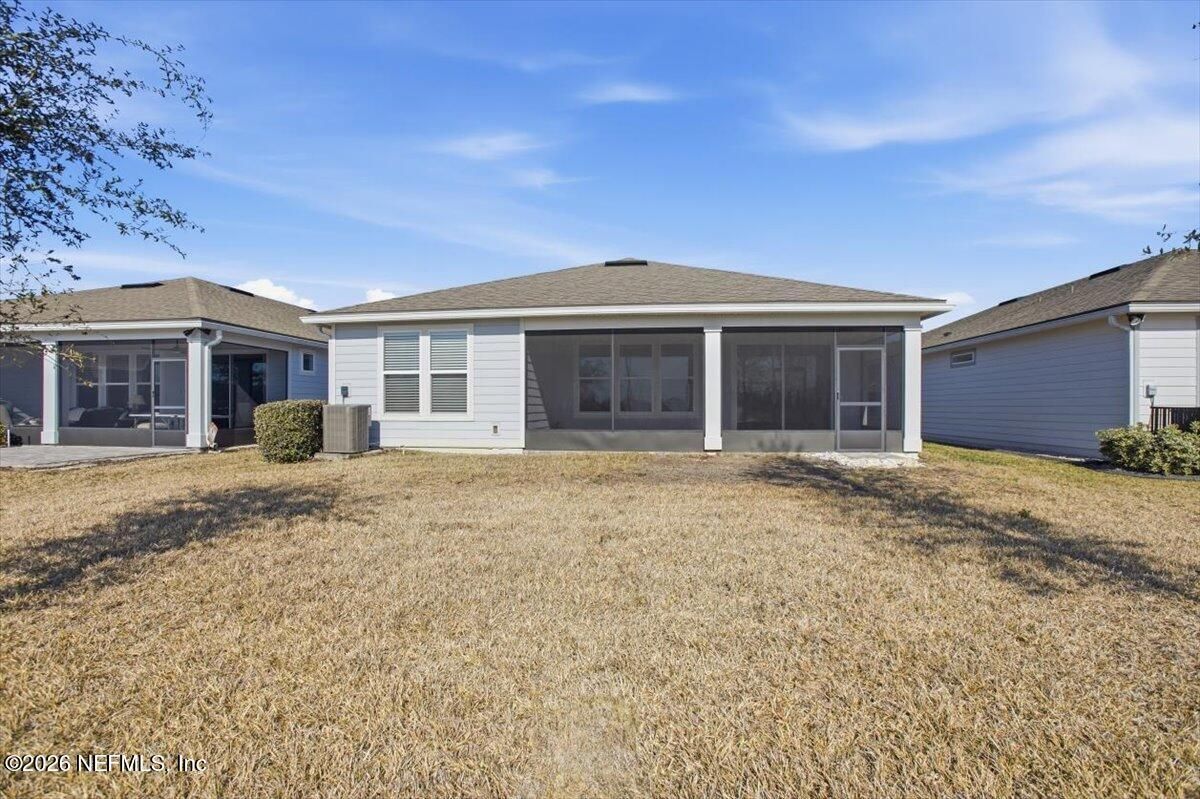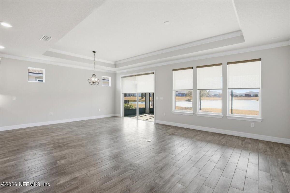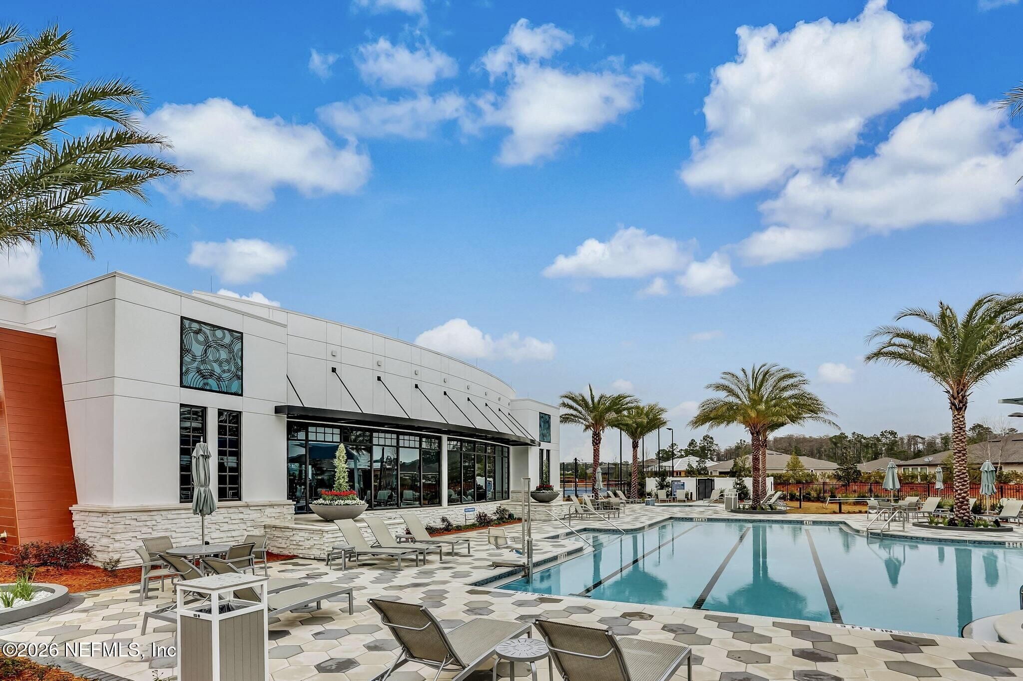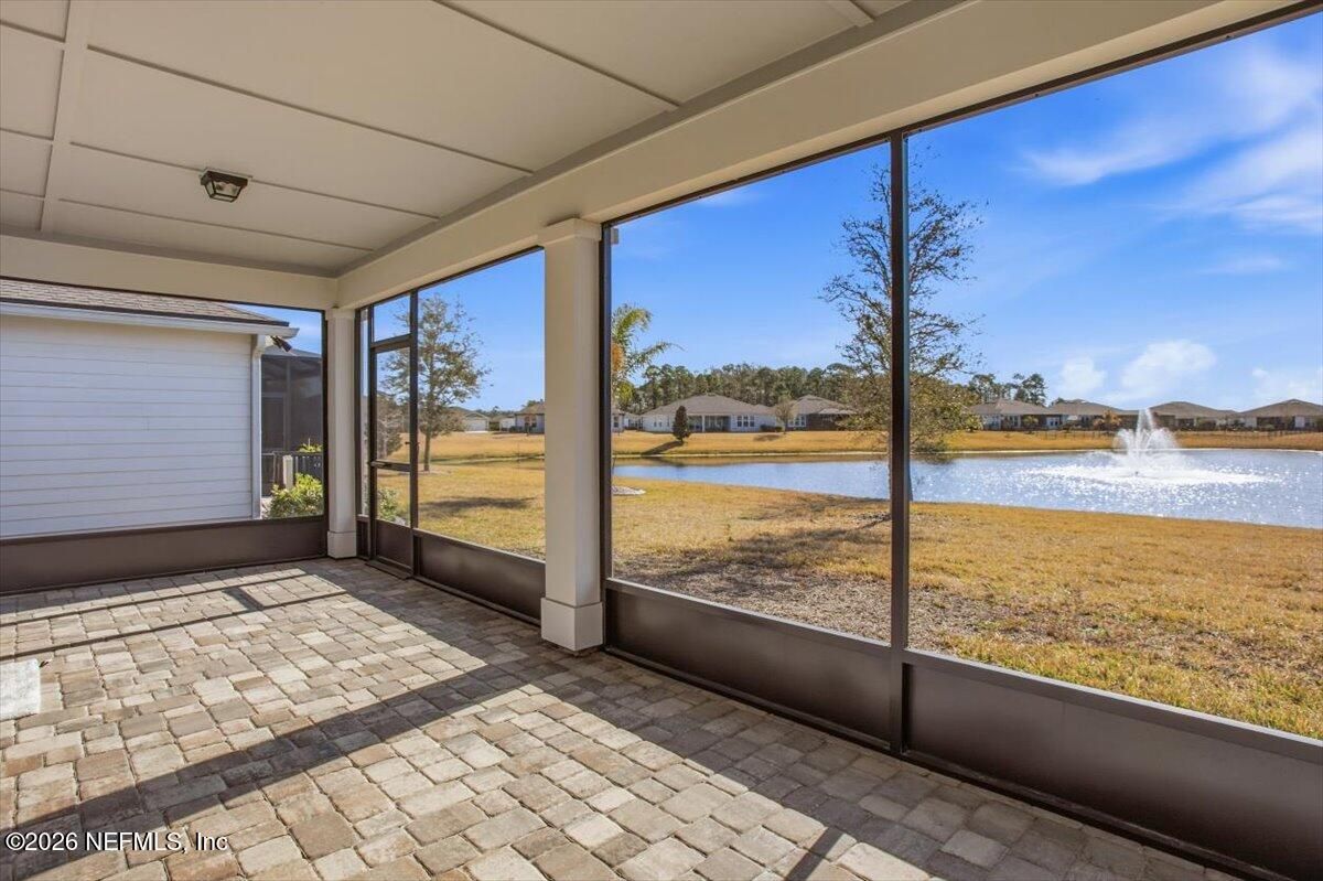 Located in the highly desirable 55+ gated community of Del Webb ETown, this beautifully maintained 2-bedroom, 2-bath home with a dedicated flex space offers comfortable, low-maintenance living with serene water views. Be sure to see the 3d virtual tour! The bright white chef's kitchen features quartz countertops, custom hood & backsplash, stainless steel appliances, and opens to a spacious gathering room complete with electronic roll-down blinds. The open-concept design is ideal for both everyday living & entertaining. The spacious primary suite includes a large custom-tiled walk-in shower with a dual vanity & quartz countertops. A well-sized secondary bedroom, additional full bath, flex space (ideal for home office or hobby room) and interior laundry room complete the home. Enjoy peaceful mornings from the covered and screened paver patio overlooking the water -- the perfect setting for relaxing or hosting guests. Residents enjoy access to a resort-style amenity center featuring a pool, pickleball courts, fitness center, meeting and social spaces, reading rooms, & concierge services. Conveniently located near the I-295 corridor, shopping and dining, including St. Johns Town Center, with easy access to beaches and downtown Jacksonville.