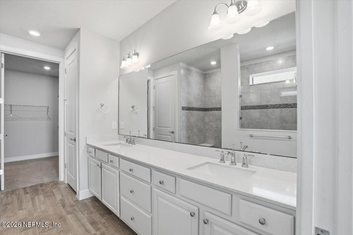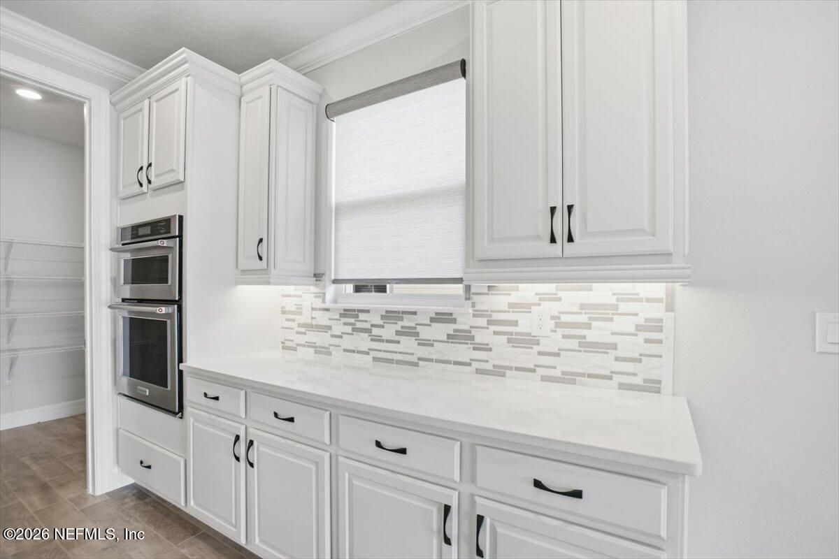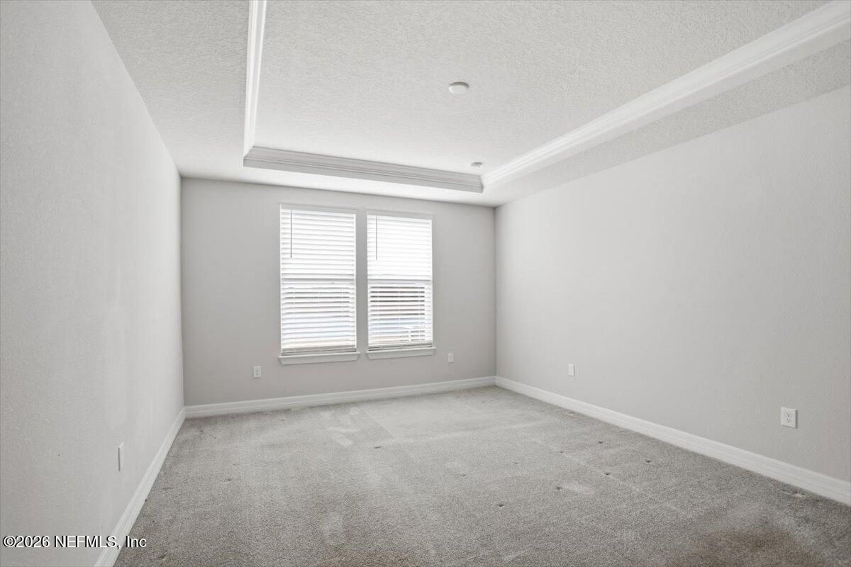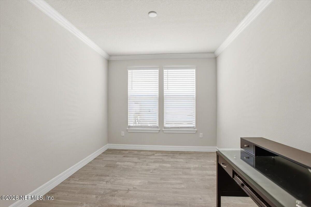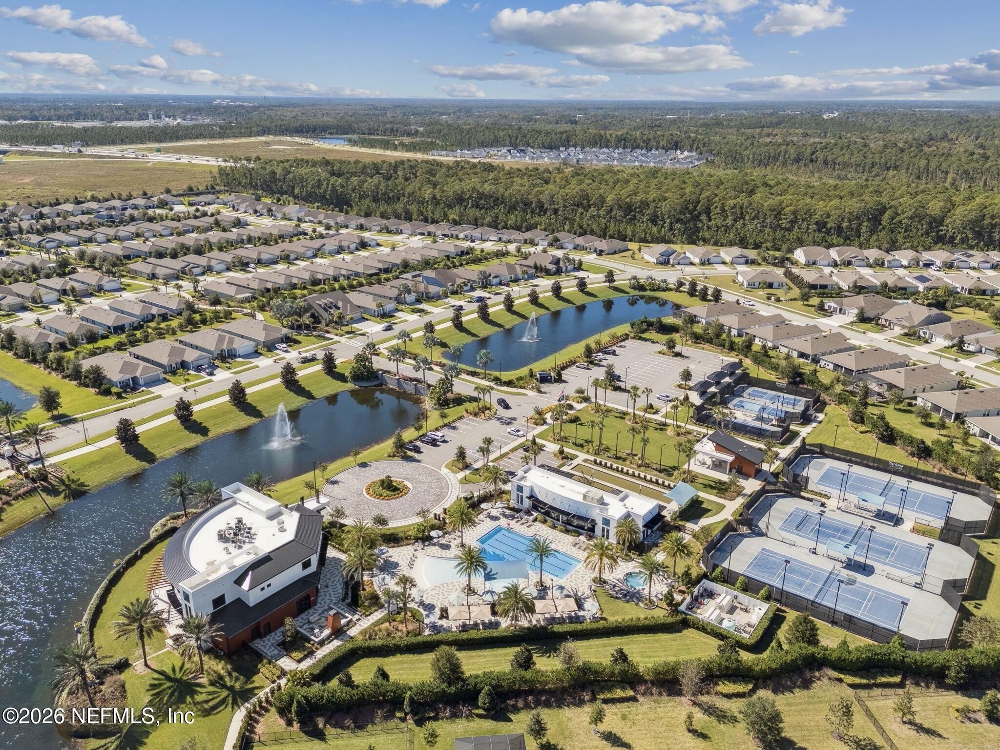 Located in the highly desirable 55+ gated community of Del Webb ETown, this beautifully maintained 2-bedroom, 2-bath home with a dedicated flex space offers comfortable, low-maintenance living with serene water views. Be sure to see the 3d virtual tour! The bright white chef's kitchen features quartz countertops, custom hood & backsplash, stainless steel appliances, and opens to a spacious gathering room complete with electronic roll-down blinds. The open-concept design is ideal for both everyday living & entertaining. The spacious primary suite includes a large custom-tiled walk-in shower with a dual vanity & quartz countertops. A well-sized secondary bedroom, additional full bath, flex space (ideal for home office or hobby room) and interior laundry room complete the home. Enjoy peaceful mornings from the covered and screened paver patio overlooking the water -- the perfect setting for relaxing or hosting guests. Residents enjoy access to a resort-style amenity center featuring a pool, pickleball courts, fitness center, meeting and social spaces, reading rooms, & concierge services. Conveniently located near the I-295 corridor, shopping and dining, including St. Johns Town Center, with easy access to beaches and downtown Jacksonville.