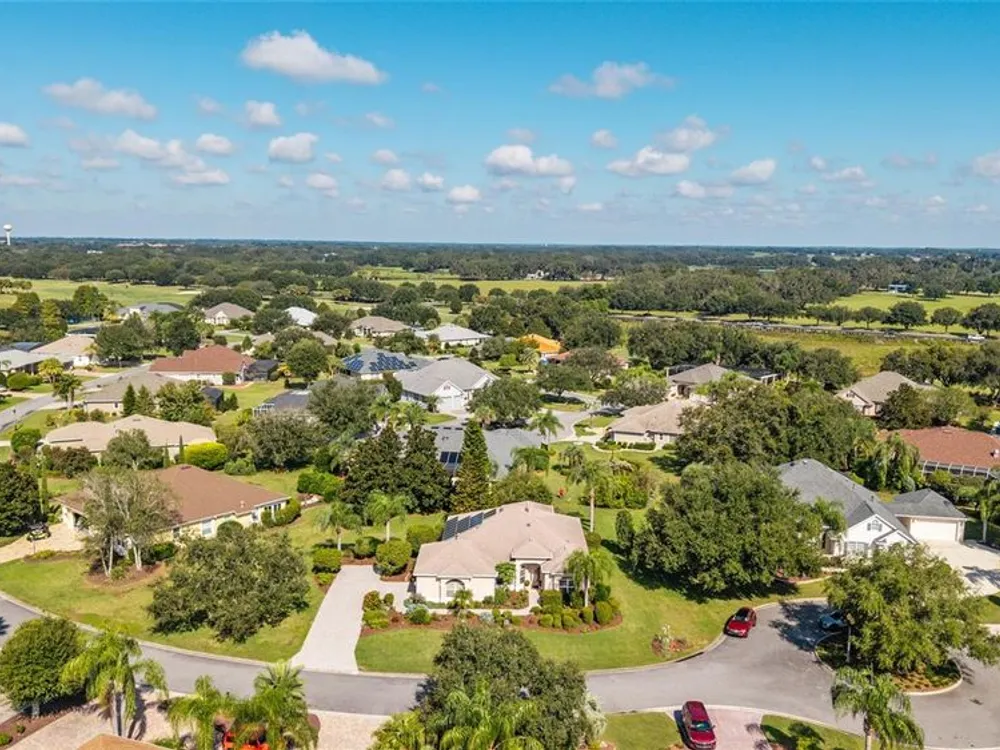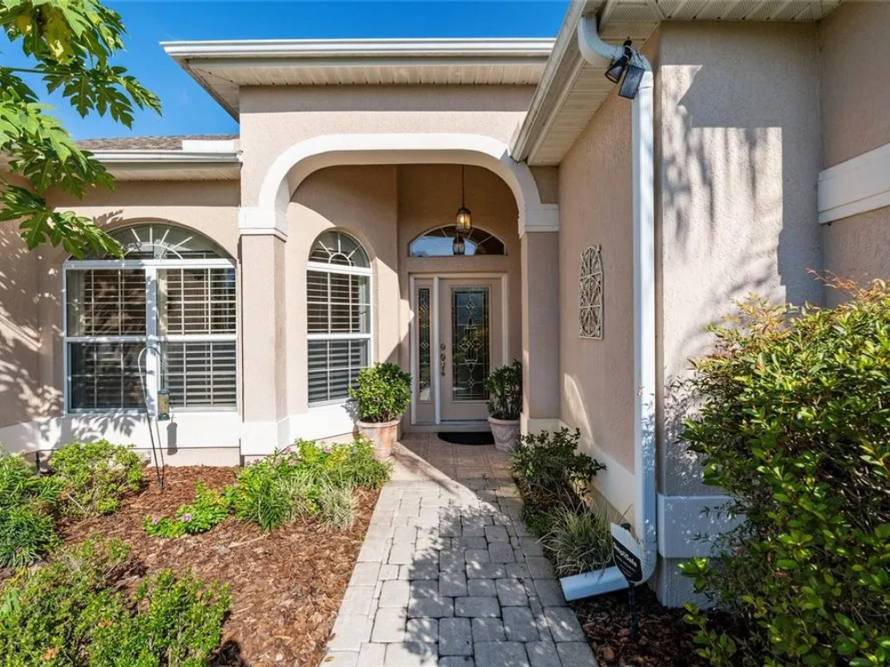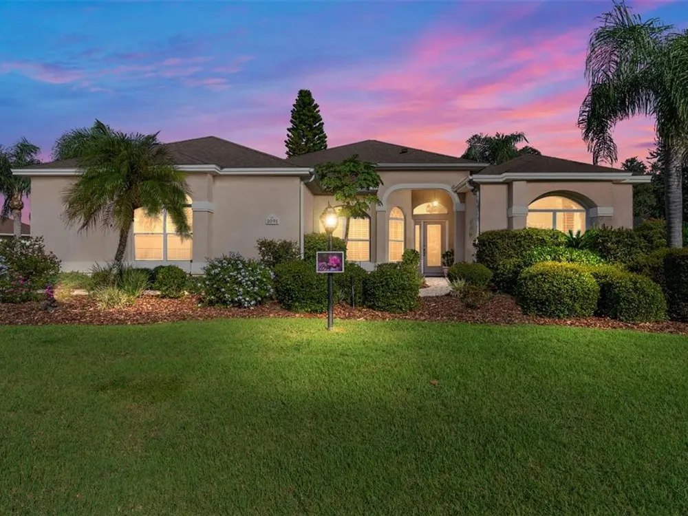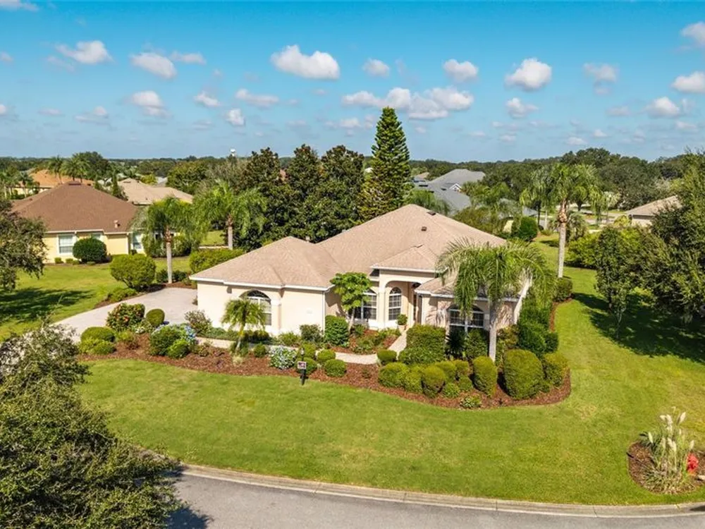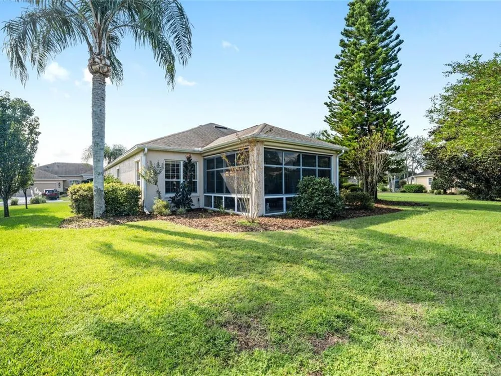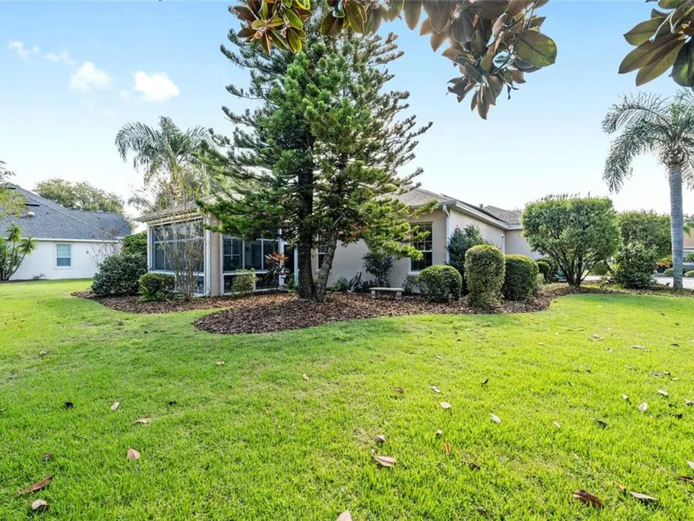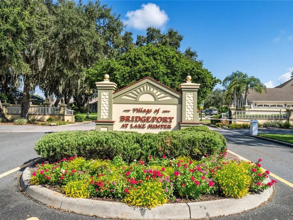 The first time offered for sale since new, this Natchez model home with 3 bedrooms, 2 baths is located in the extremely convenient location of Bridgeport at Lake Sumter, an all-premier single home village just north of the town of Lake Sumter Landing. This particular home sits on an almost one-half acre on a cul-de-sac street of impressive homes, and it has plenty of room for a future pool if desired. The neighbors benefit from the three productive Meyer lemon trees and the papaya tree on this property. This premier model block and stucco home is architecturally pleasing at first glance with its large arched front windows, side load garage and bricked drive and walkway. Looking inside the home, the tall ceilings throughout the home give a spacious feeling, and the engineered hickory flooring in the main living area and primary bedroom add interest and warmth. The crown molding in all the rooms and the shutters on all the home’s windows give this home a finished look. The generous kitchen has numerous fruitwood cabinets, granite counters, newer stainless appliances and a center island. For casual dining there is barstool seating at the counter and a separate spacious kitchen eating area. The great room incorporates both the larger dining area and living area of the home and features a tray ceiling. Continuing through the home, the primary bedroom is a generous sized room both gracious and relaxing with a tray ceiling and engineered wood flooring. The primary bath with its double sinks and granite counters is notable for its Jacuzzi brand, 1 person sauna which the owner attests greatly has contributed to his longevity. Two guest bedrooms, both with closets, and a guest bathroom are positioned on the opposite side of the home for privacy. A separate laundry room is conveniently located near both the kitchen and the garage. The enclosed lanai, 18 x16, offers a private retreat and a great view of nature. New roof-2020, new gas water heater-2016, new HVAC-2023. The BOND PAID. One year Broward Home Warranty is included. This home, priced to sell, allows a new owner to enjoy the friendly neighbors on this cul-de-sac street and to live in this very convenient active village at a truly reasonable price. Please stop by soon to decide if you could be the new owner of this premier Villages home!