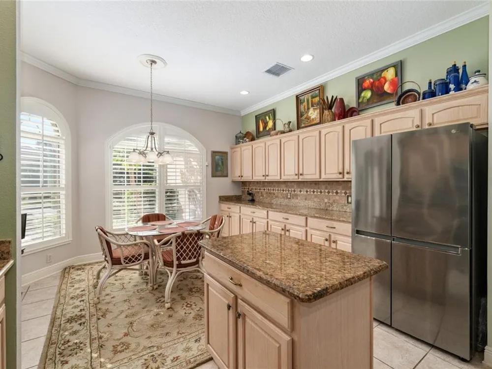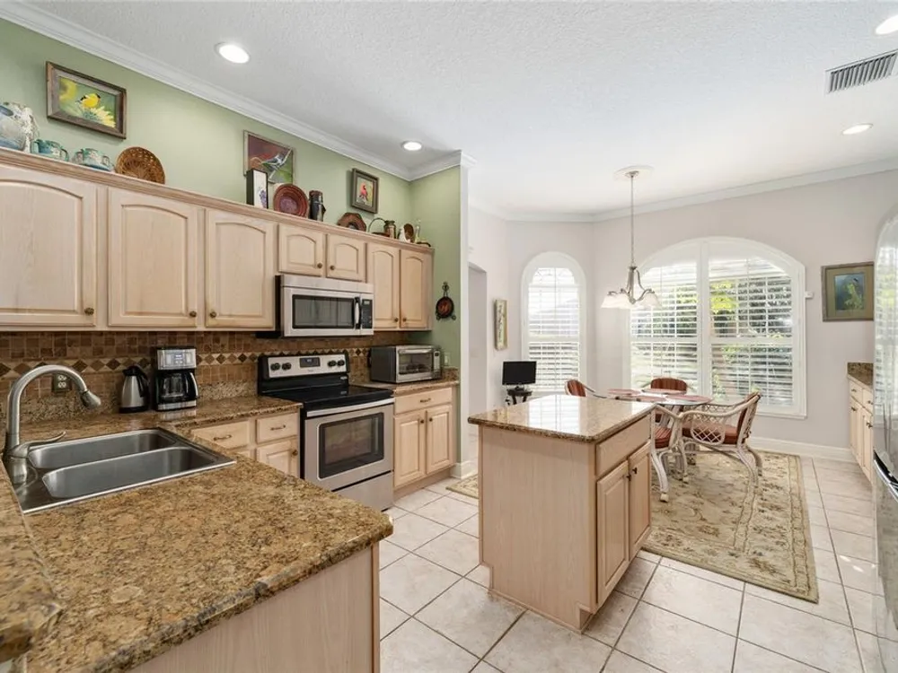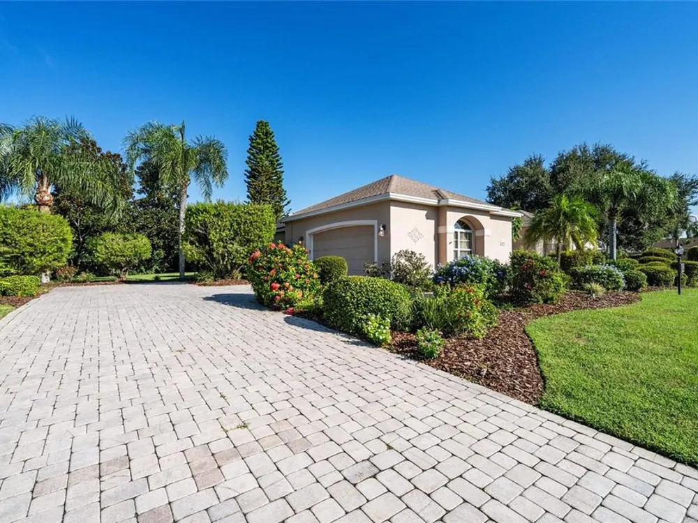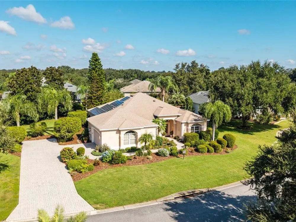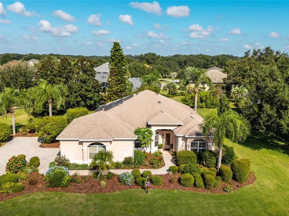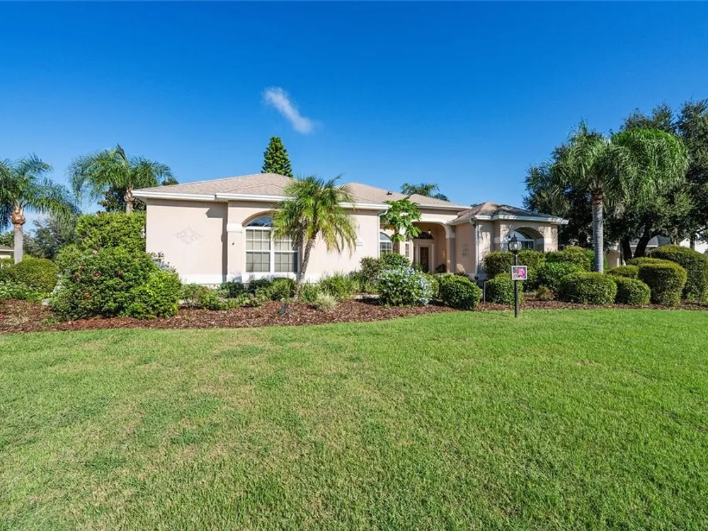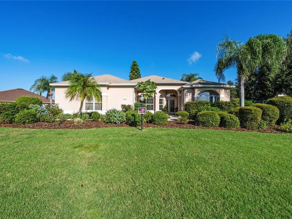 The first time offered for sale since new, this Natchez model home with 3 bedrooms, 2 baths is located in the extremely convenient location of Bridgeport at Lake Sumter, an all-premier single home village just north of the town of Lake Sumter Landing. This particular home sits on an almost one-half acre on a cul-de-sac street of impressive homes, and it has plenty of room for a future pool if desired. The neighbors benefit from the three productive Meyer lemon trees and the papaya tree on this property. This premier model block and stucco home is architecturally pleasing at first glance with its large arched front windows, side load garage and bricked drive and walkway. Looking inside the home, the tall ceilings throughout the home give a spacious feeling, and the engineered hickory flooring in the main living area and primary bedroom add interest and warmth. The crown molding in all the rooms and the shutters on all the home’s windows give this home a finished look. The generous kitchen has numerous fruitwood cabinets, granite counters, newer stainless appliances and a center island. For casual dining there is barstool seating at the counter and a separate spacious kitchen eating area. The great room incorporates both the larger dining area and living area of the home and features a tray ceiling. Continuing through the home, the primary bedroom is a generous sized room both gracious and relaxing with a tray ceiling and engineered wood flooring. The primary bath with its double sinks and granite counters is notable for its Jacuzzi brand, 1 person sauna which the owner attests greatly has contributed to his longevity. Two guest bedrooms, both with closets, and a guest bathroom are positioned on the opposite side of the home for privacy. A separate laundry room is conveniently located near both the kitchen and the garage. The enclosed lanai, 18 x16, offers a private retreat and a great view of nature. New roof-2020, new gas water heater-2016, new HVAC-2023. The BOND PAID. One year Broward Home Warranty is included. This home, priced to sell, allows a new owner to enjoy the friendly neighbors on this cul-de-sac street and to live in this very convenient active village at a truly reasonable price. Please stop by soon to decide if you could be the new owner of this premier Villages home!