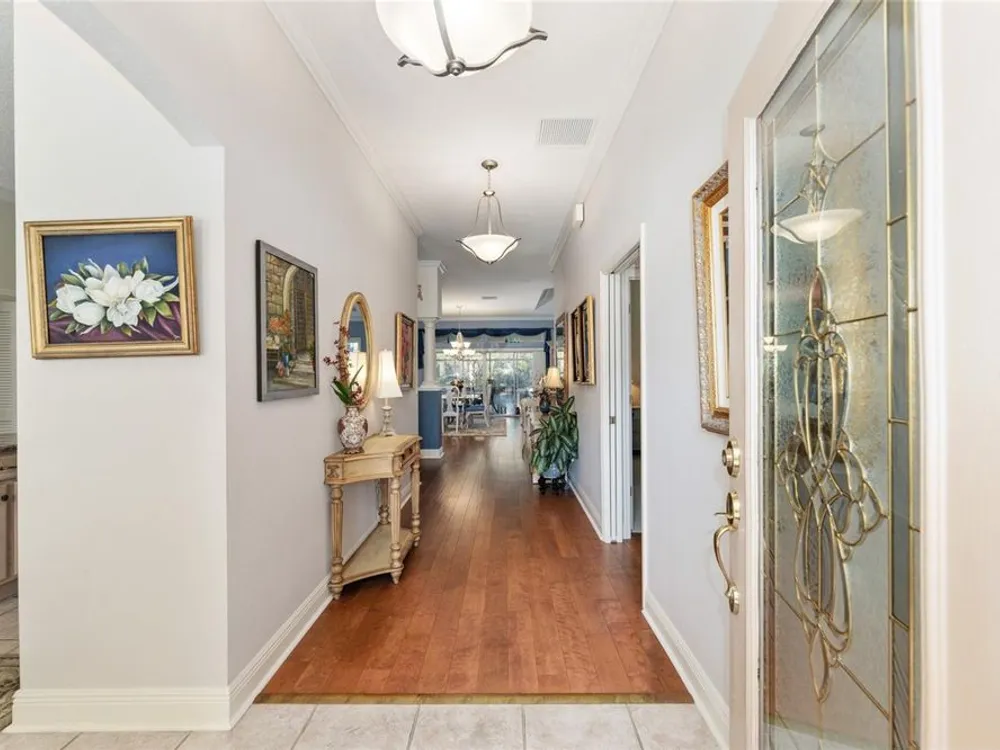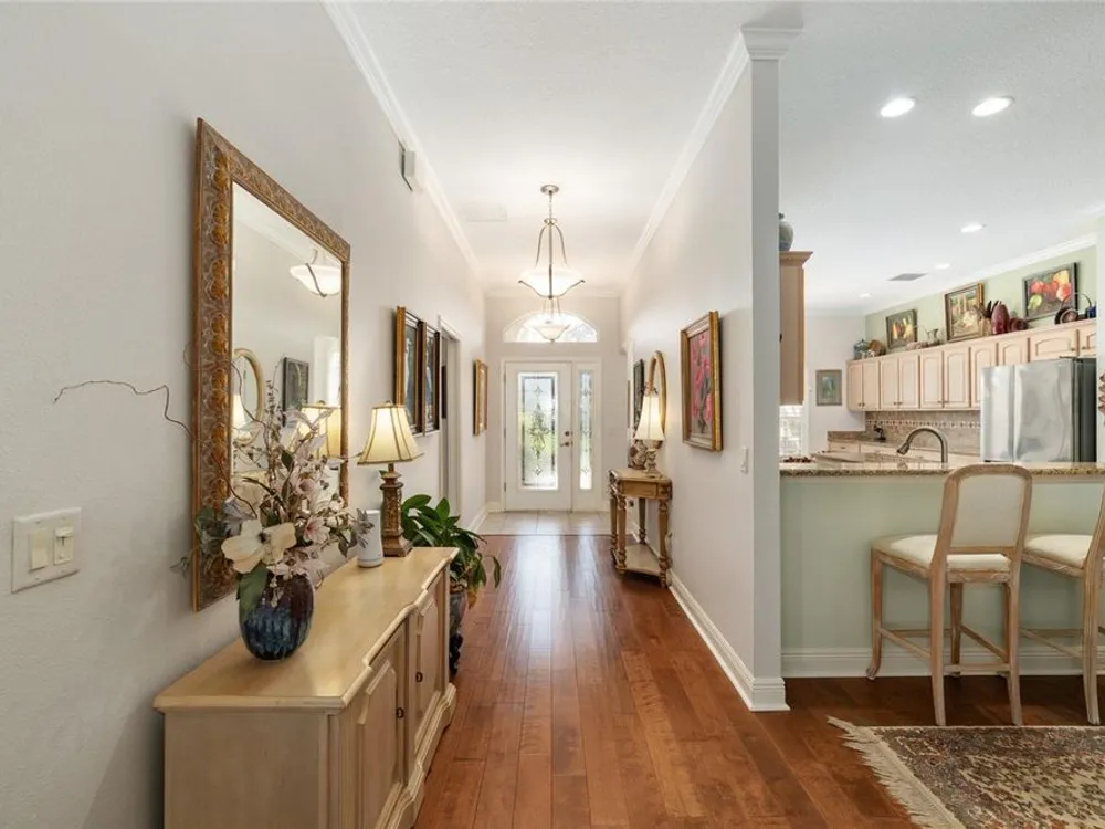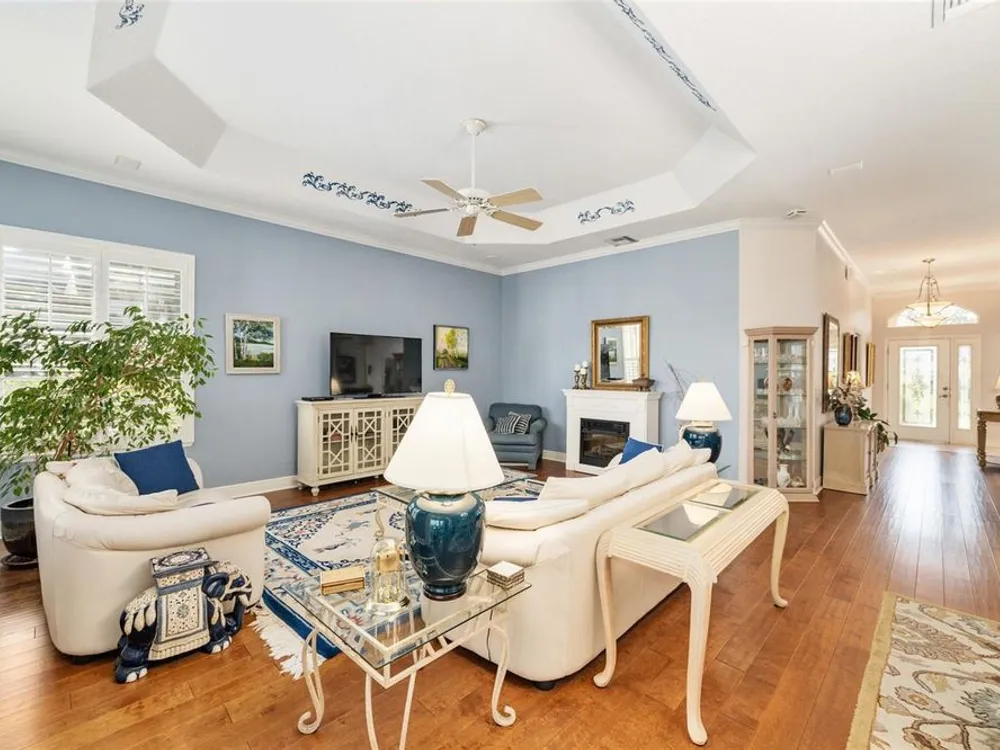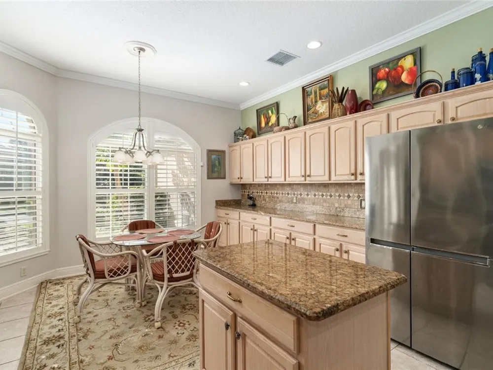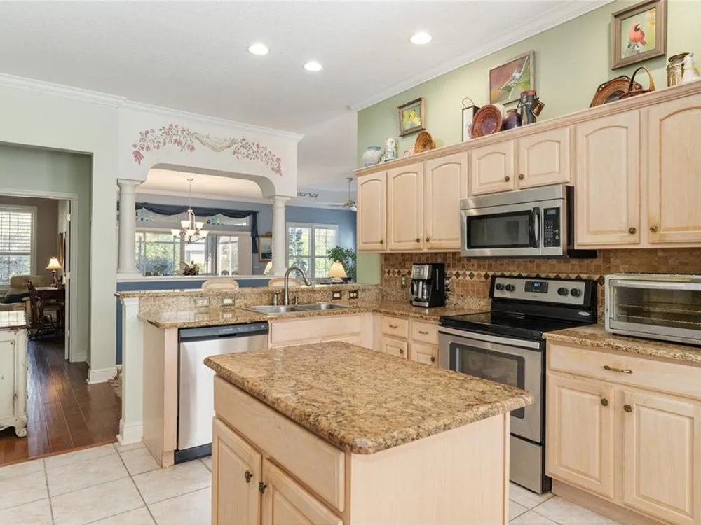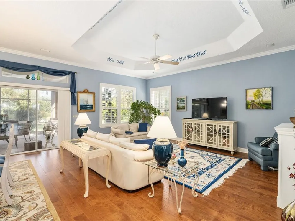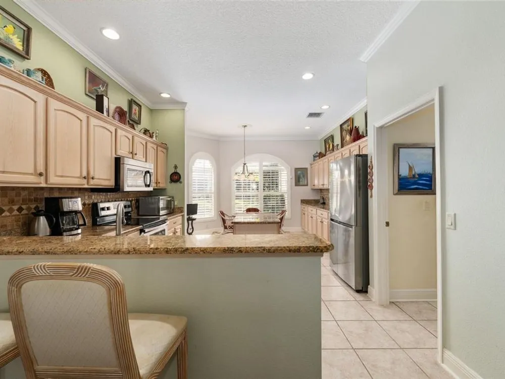 The first time offered for sale since new, this Natchez model home with 3 bedrooms, 2 baths is located in the extremely convenient location of Bridgeport at Lake Sumter, an all-premier single home village just north of the town of Lake Sumter Landing. This particular home sits on an almost one-half acre on a cul-de-sac street of impressive homes, and it has plenty of room for a future pool if desired. The neighbors benefit from the three productive Meyer lemon trees and the papaya tree on this property. This premier model block and stucco home is architecturally pleasing at first glance with its large arched front windows, side load garage and bricked drive and walkway. Looking inside the home, the tall ceilings throughout the home give a spacious feeling, and the engineered hickory flooring in the main living area and primary bedroom add interest and warmth. The crown molding in all the rooms and the shutters on all the home’s windows give this home a finished look. The generous kitchen has numerous fruitwood cabinets, granite counters, newer stainless appliances and a center island. For casual dining there is barstool seating at the counter and a separate spacious kitchen eating area. The great room incorporates both the larger dining area and living area of the home and features a tray ceiling. Continuing through the home, the primary bedroom is a generous sized room both gracious and relaxing with a tray ceiling and engineered wood flooring. The primary bath with its double sinks and granite counters is notable for its Jacuzzi brand, 1 person sauna which the owner attests greatly has contributed to his longevity. Two guest bedrooms, both with closets, and a guest bathroom are positioned on the opposite side of the home for privacy. A separate laundry room is conveniently located near both the kitchen and the garage. The enclosed lanai, 18 x16, offers a private retreat and a great view of nature. New roof-2020, new gas water heater-2016, new HVAC-2023. The BOND PAID. One year Broward Home Warranty is included. This home, priced to sell, allows a new owner to enjoy the friendly neighbors on this cul-de-sac street and to live in this very convenient active village at a truly reasonable price. Please stop by soon to decide if you could be the new owner of this premier Villages home!