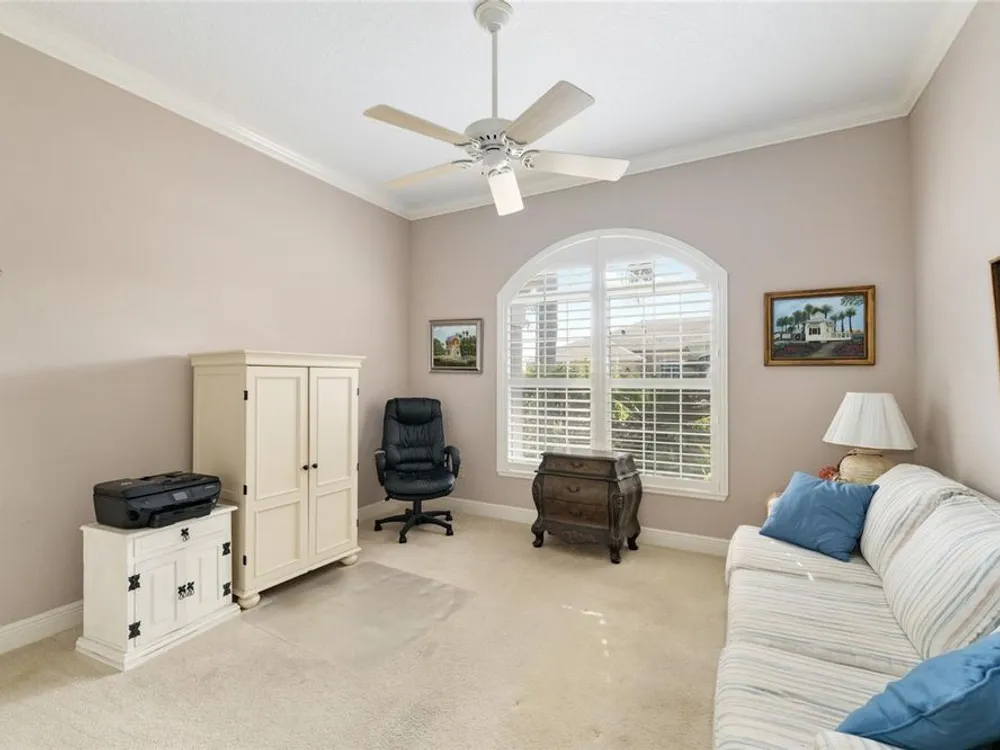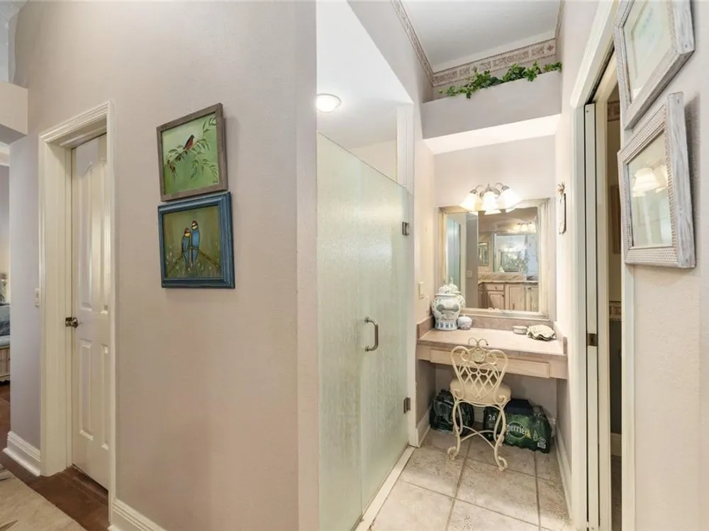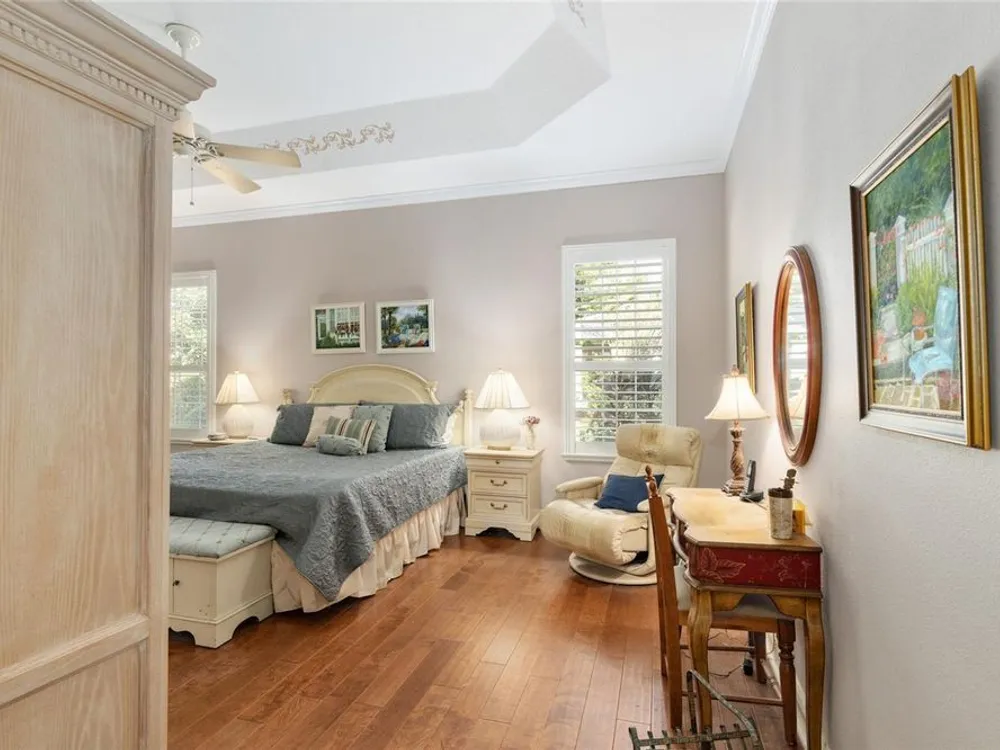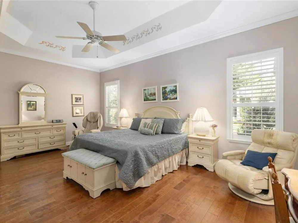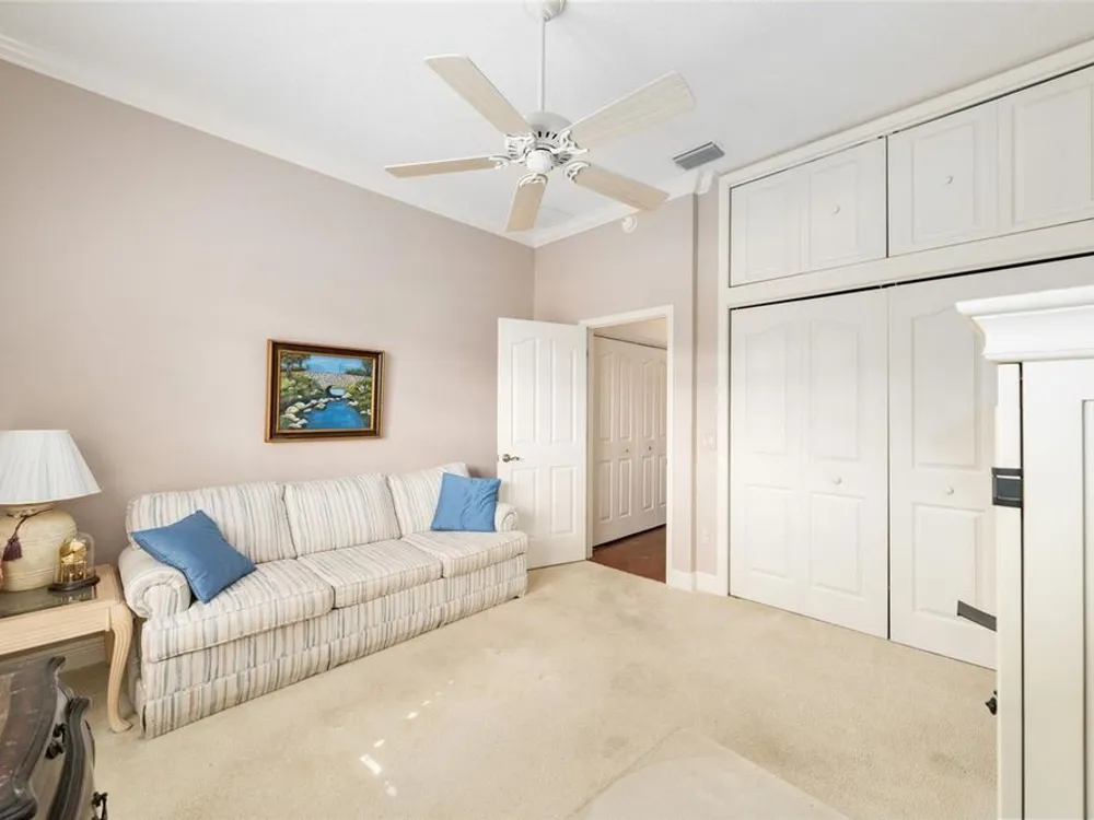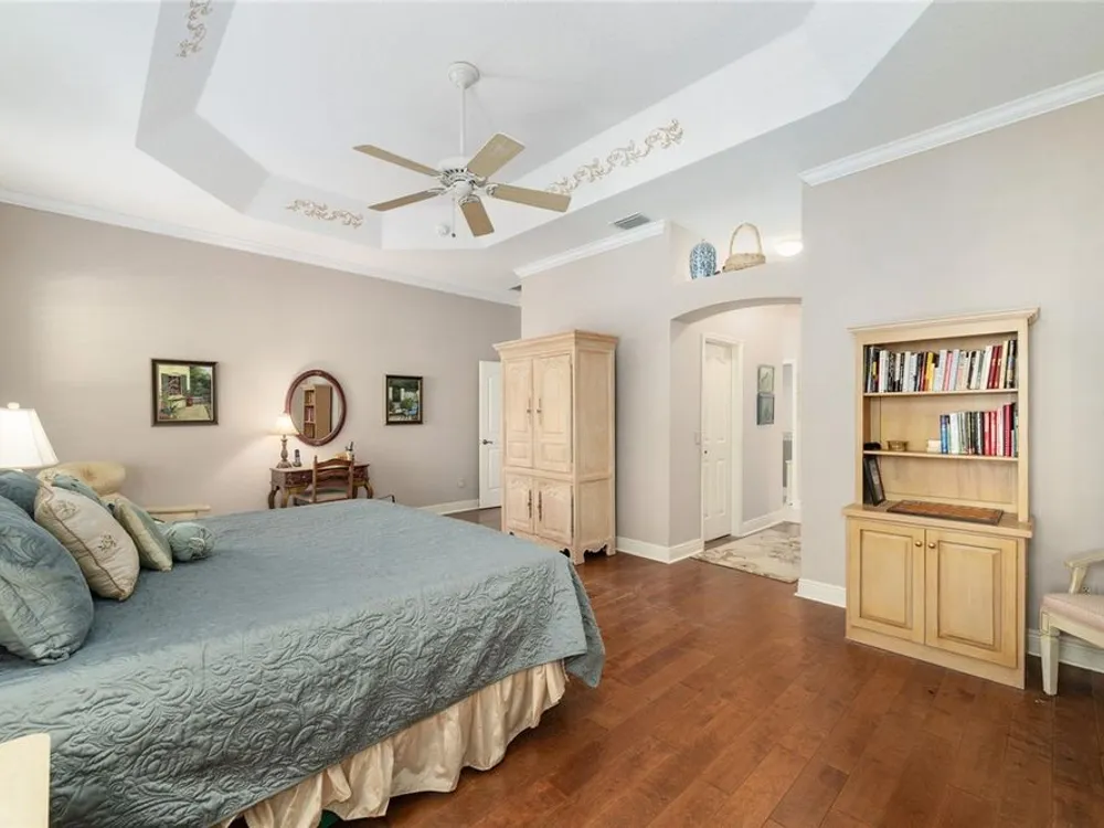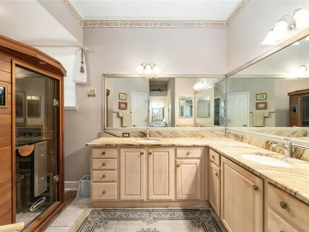 - Ceiling Fan(s), Crown Molding, Eat-in Kitchen, High Ceilings, Sauna, Solid-Wood Cabinets, Split Bedrooms, Stone Counters, Walk-In Closet(s)