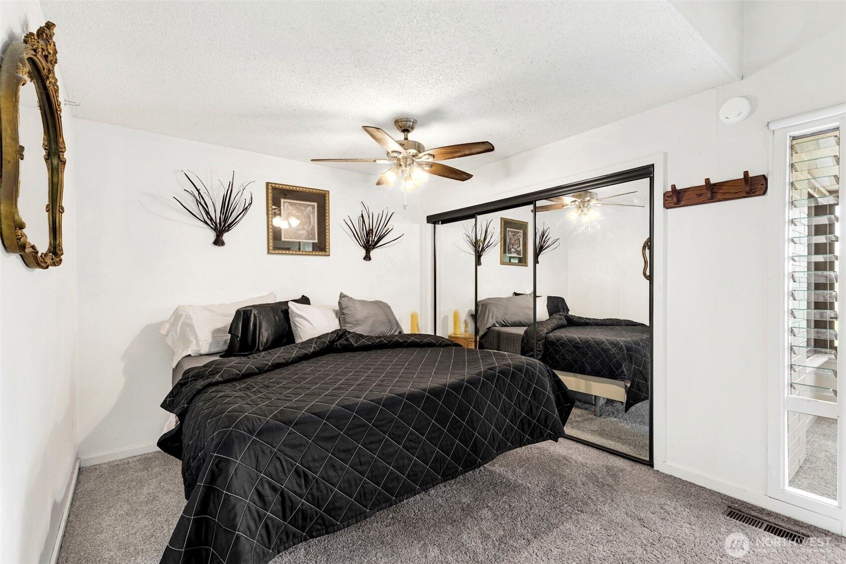 This top floor 2 bedroom unit in this 55+ community in a park-like setting has arguably the best view of all 225 units in this complex with downtown, Mt Baker, and the golf course to enjoy. Ownership includes memberships to the Glen Acres Golf Club so play a round of golf any time you wish and hang out at the pool or Club’s restaurant or bar with great views of their own. This top floor unit within this gated community includes vaulted ceilings with clearstory windows and much more closet space than you’ll typically find. Amenities include the golf course, additional parking for more than one car, your RV, golf carts, trailers, additional storage if needed, a shared shop, outdoor pool, exercise area, and multiple organized activities.