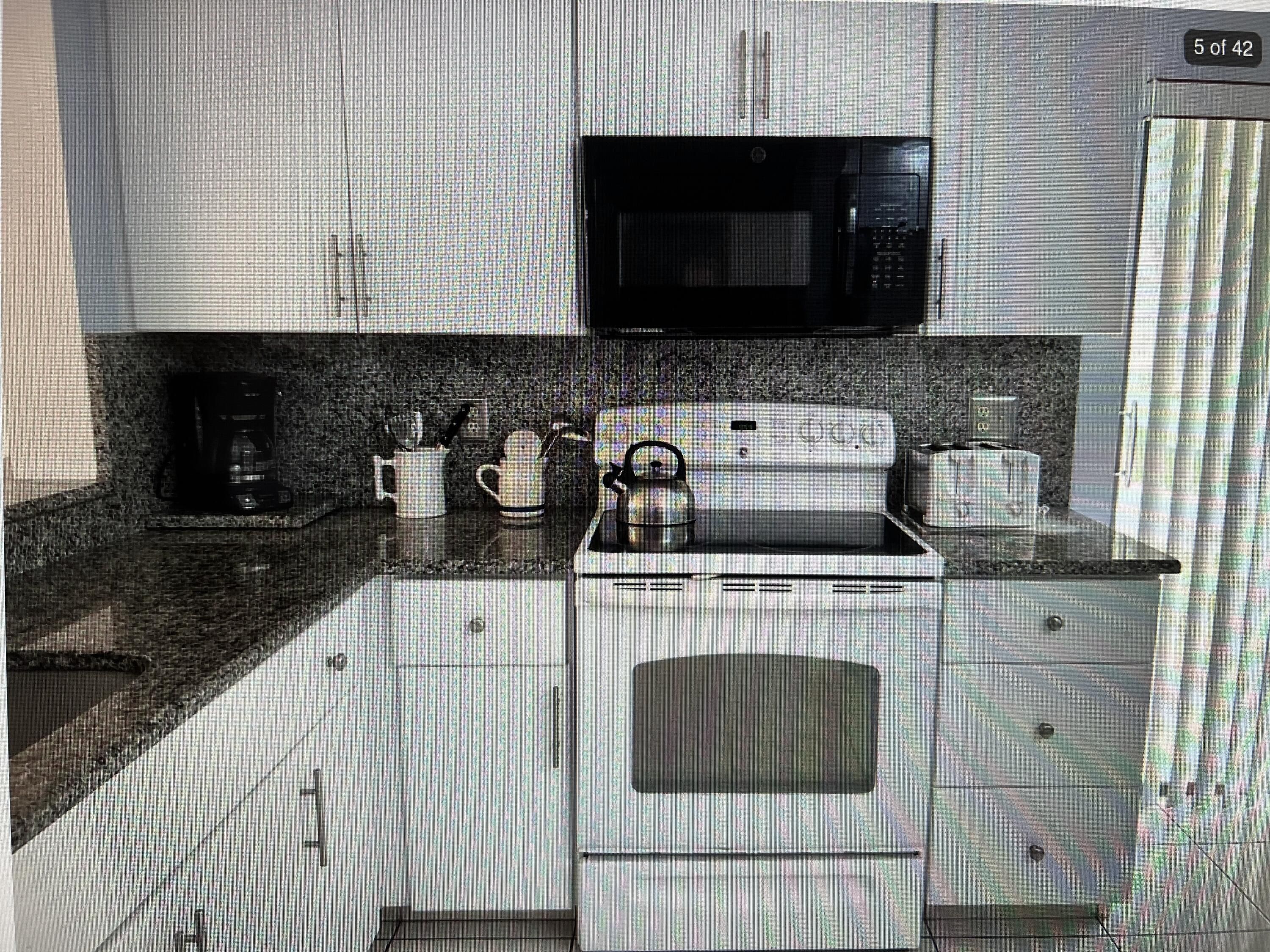 MOTIVATED SELLER / EASY SHOW!!!Home sits on the lake w/east exposure & beautiful updated white kitchen w/granite w/ private BBQ patio off kitchen. Updates to master & guest bath, updated electric panel & lush landscape. 2/2 w/open den area, 245 sf screened patio w/ accordions, large shed, gated front patio entrance. Pristine condition! Laminate flooring in bedrooms & tile thru-out rest of home. Clbs has heated saltwater pool, live shows, gym, sauna, games rooms, har-tru cts., pickleball, etc. Location is close to interstates, downtown Delray, airports & our beautiful beaches. Most of the furniture is staying for seller conv. and not reflected in any asking price.