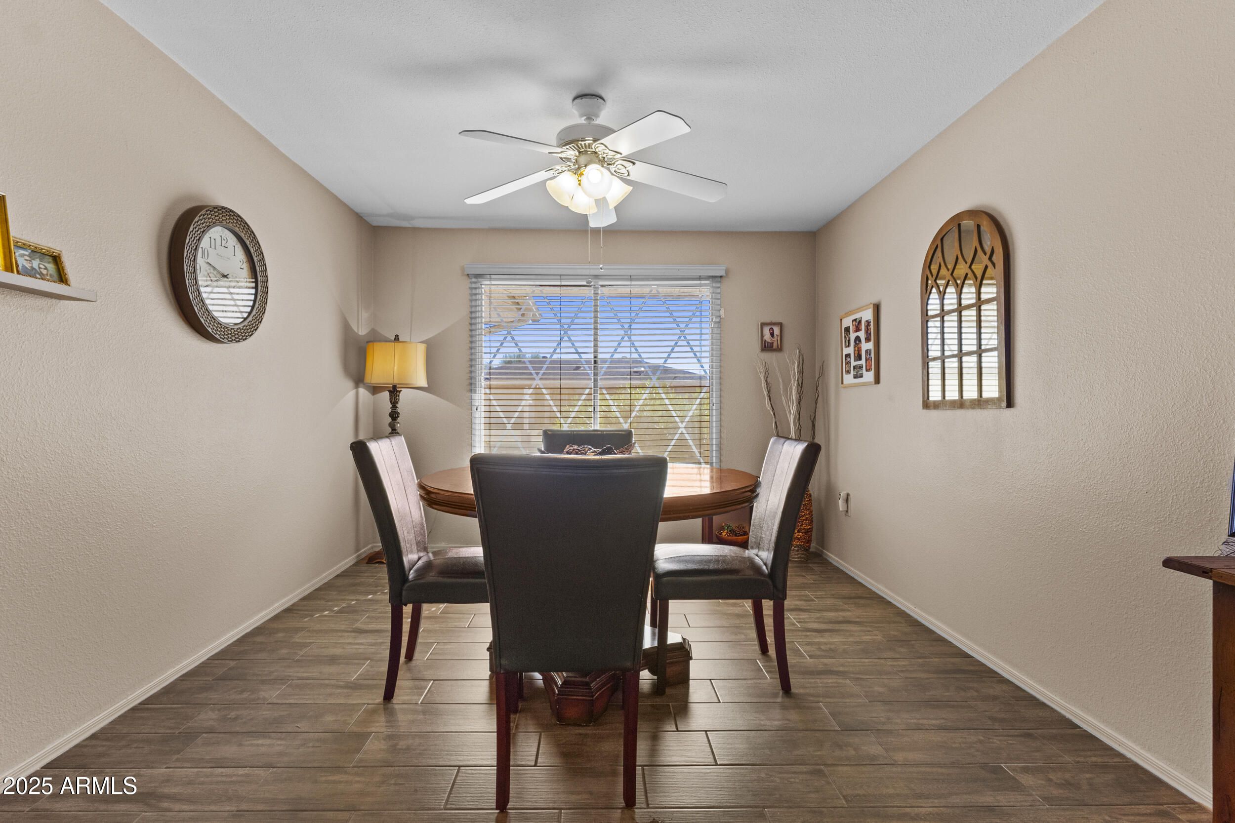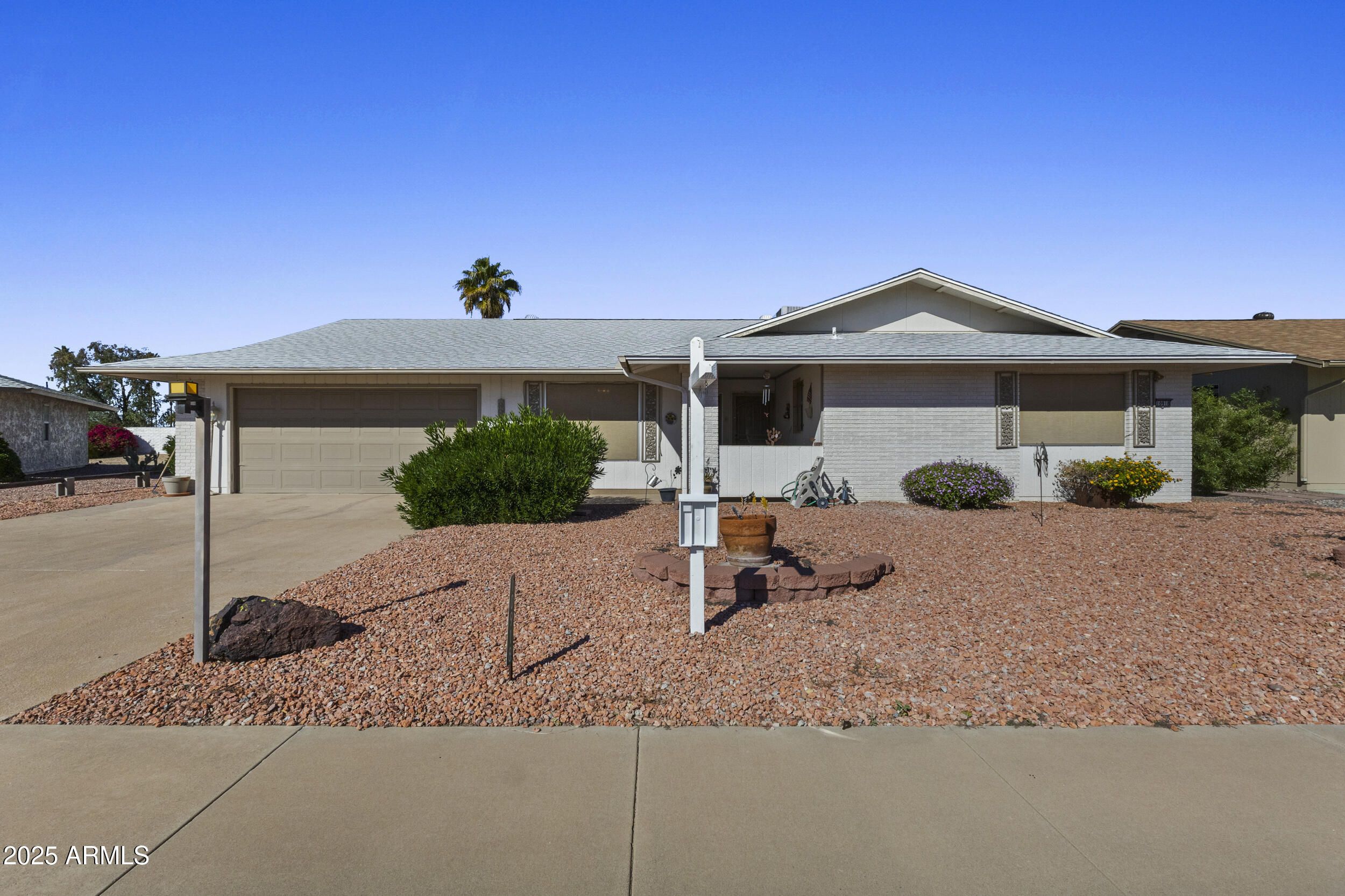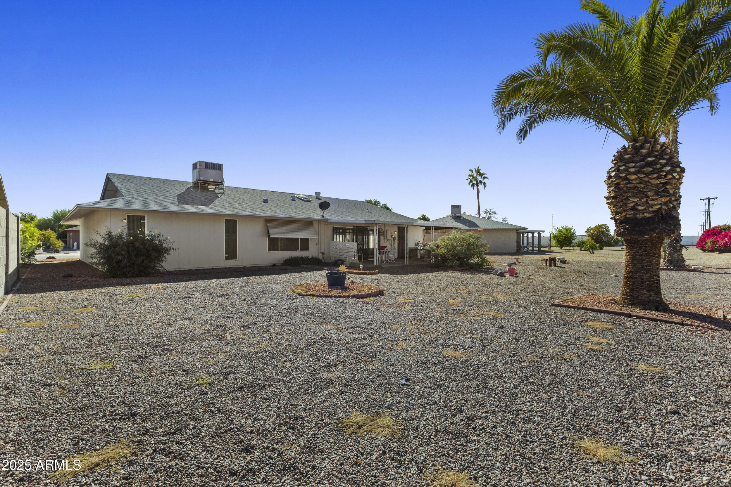 This FANTASTIC and FUNCTIONAL floorplan has a LARGE GREAT ROOM as you enter, a FLEX ROOM, currently used as a dining room, an EXTENSION at the ENCLOSED PORCH area, and a BONUS ROOM/DEN with ENCLOSED LAUNDRY ROOM*Your KITCHEN has UPDATED COUNTERS, white appliances, and a PANTRY*OWNER SUITE has vanity, WALK-IN CLOSET, and SHOWER at bath*Secondary bedroom has LARGE WALK-IN closet*You have flooring of WOOD-LIKE TILE and carpet*NEWER ROOF*Enclosed TWO-CAR GARAGE*EXTERIOR has EXTENDED COVERED BACK PATIO and EASY CARE DESERT LANDSCAPE at the expansive yard*COME BY and see why YOU WILL WANT TO CALL THIS PLACE YOUR ''HOME''